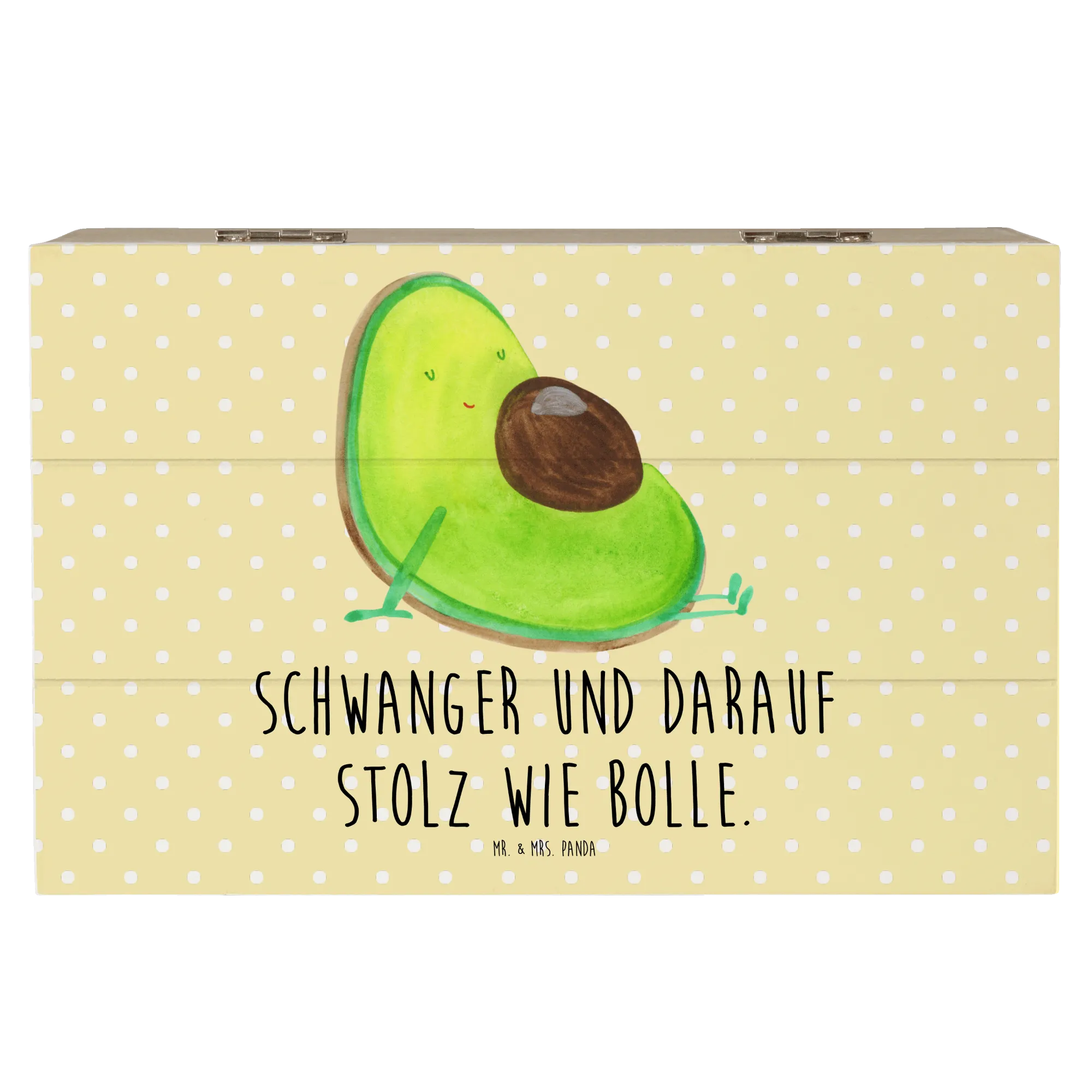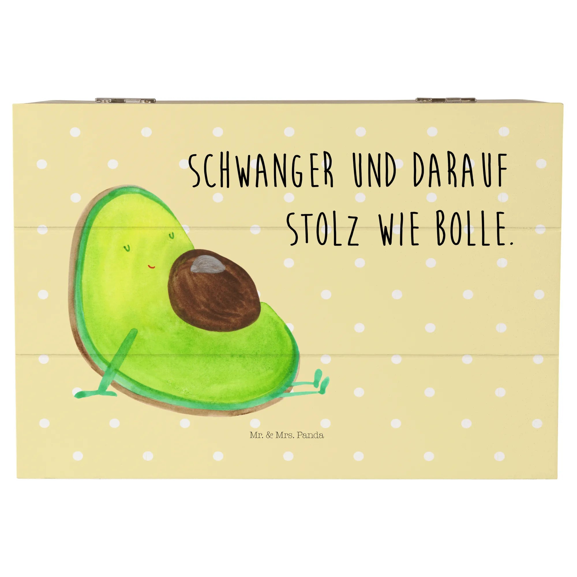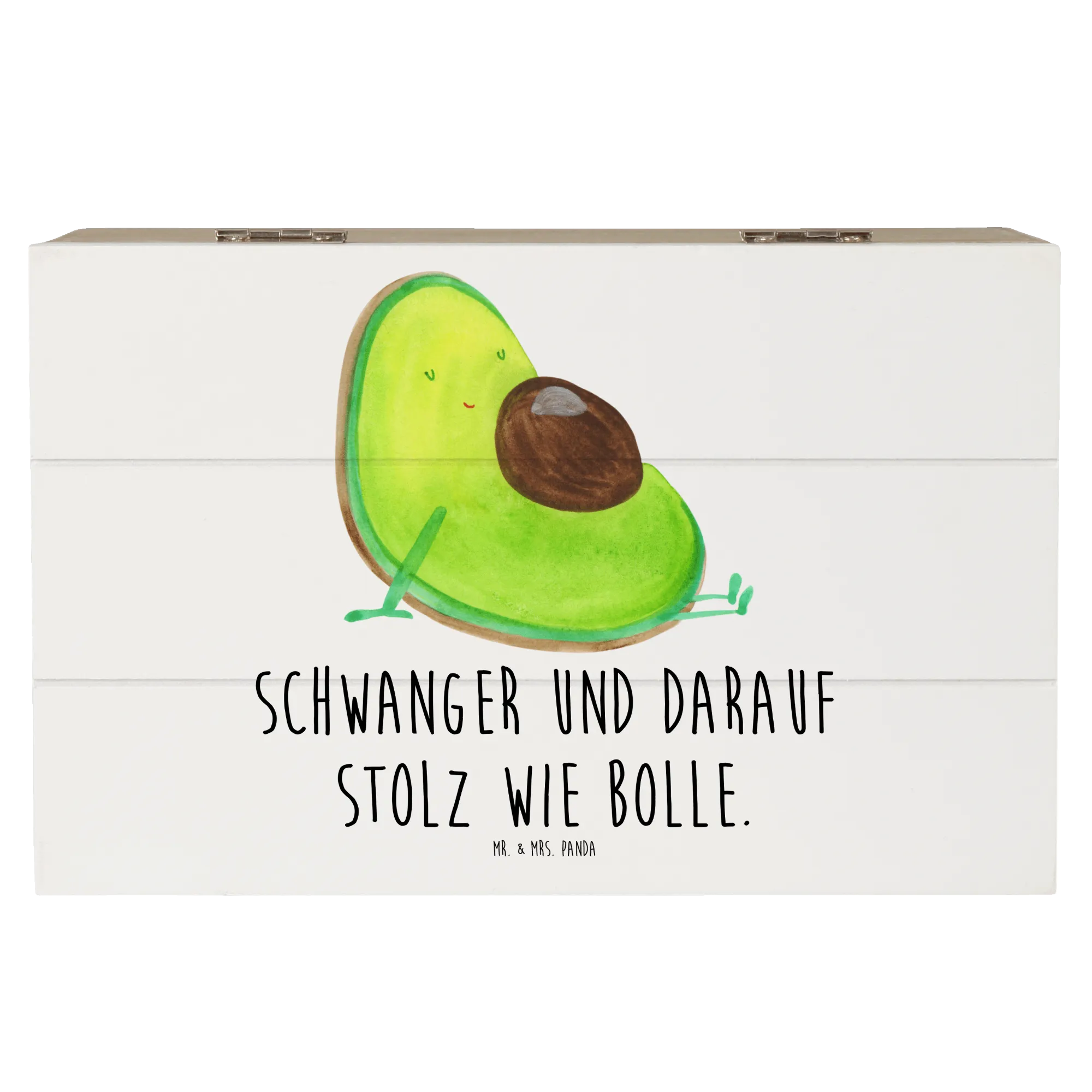Schenke Liebe und Freude mit der Holzkiste "Avocado schwanger" von Mr. & Mrs. Panda – denn sie ist nicht nur eine künstlerische Aufbewahrung, sondern ein Stück Zuhause voller Erinnerungen.