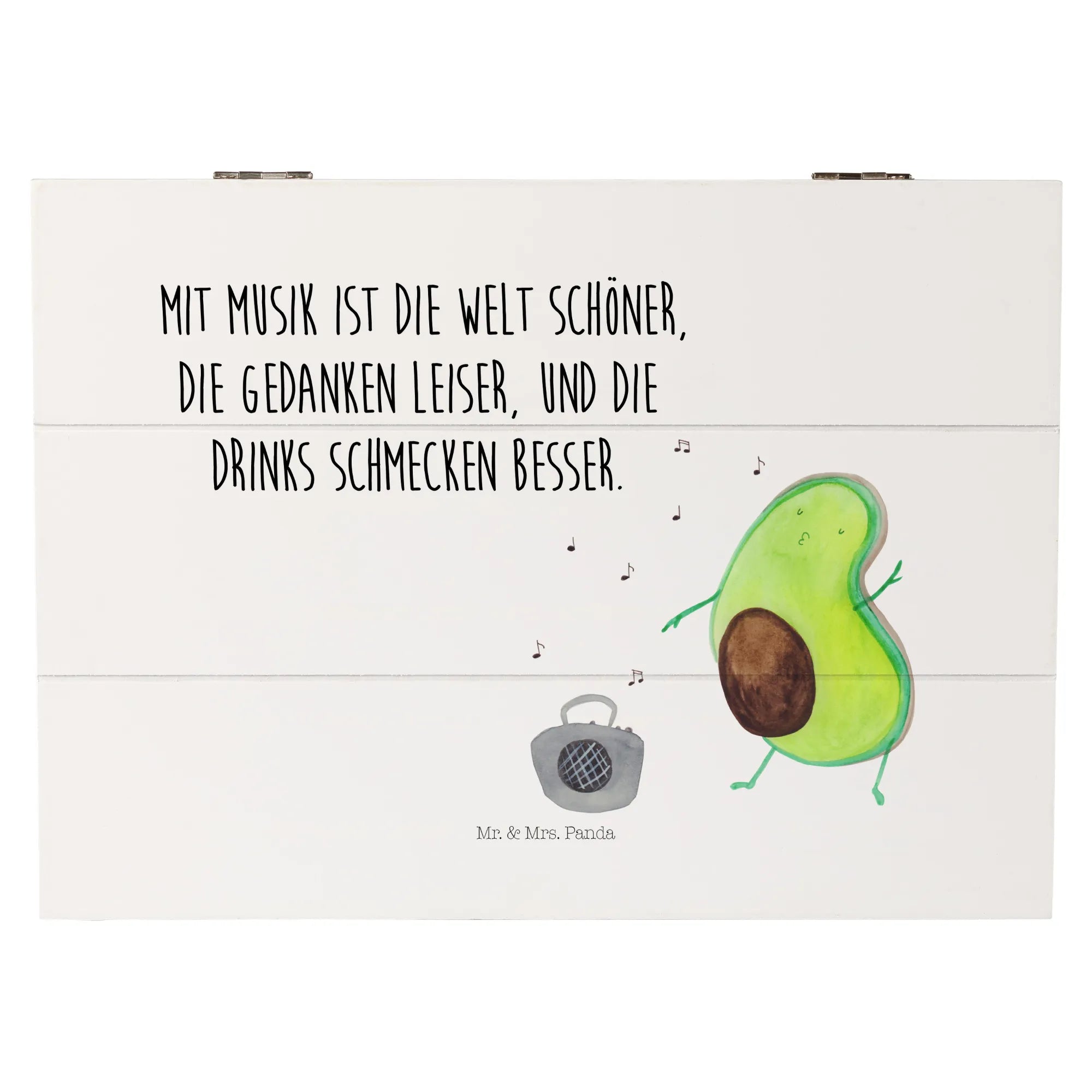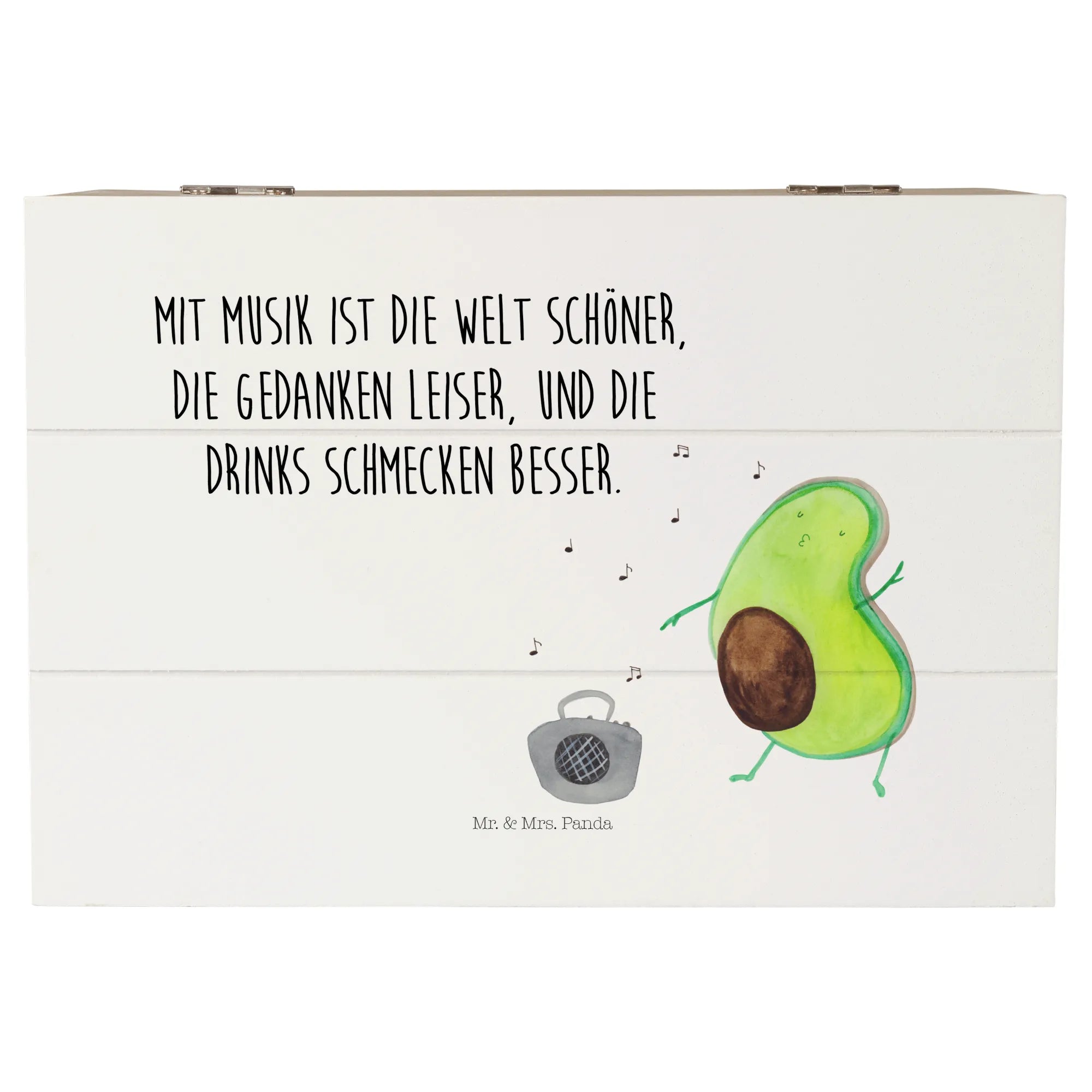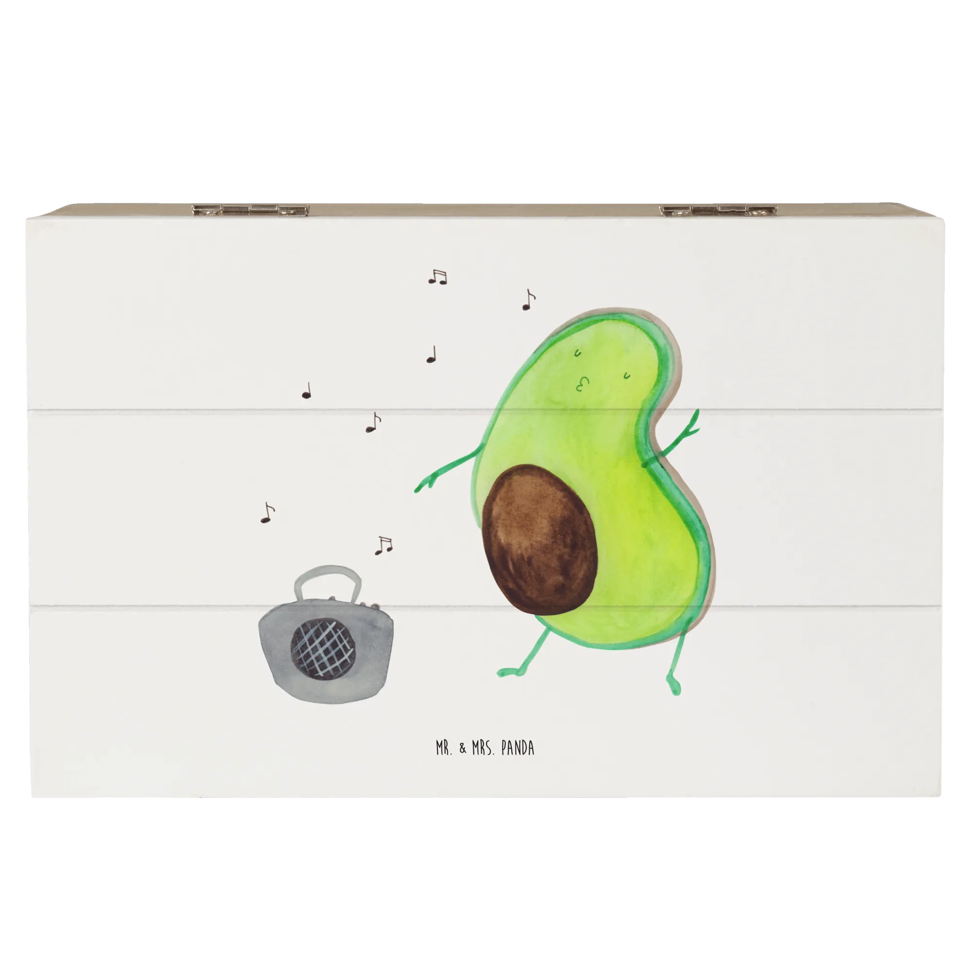 Entdecke die bezaubernde Holzkiste "Avocado tanzt" von Mr. & Mrs. Panda! Diese besondere Kiste ist nicht nur ein Blickfang, sondern auch ideal als Aufbewahrungsort für deine wertvollsten Schätze. Mit einem fröhlichen Avocado-Motiv, das diese charmante Frucht zeigt, wie sie vor einem Ghettoblaster tanzt, bringt sie gute Laune in dein Zuhause.