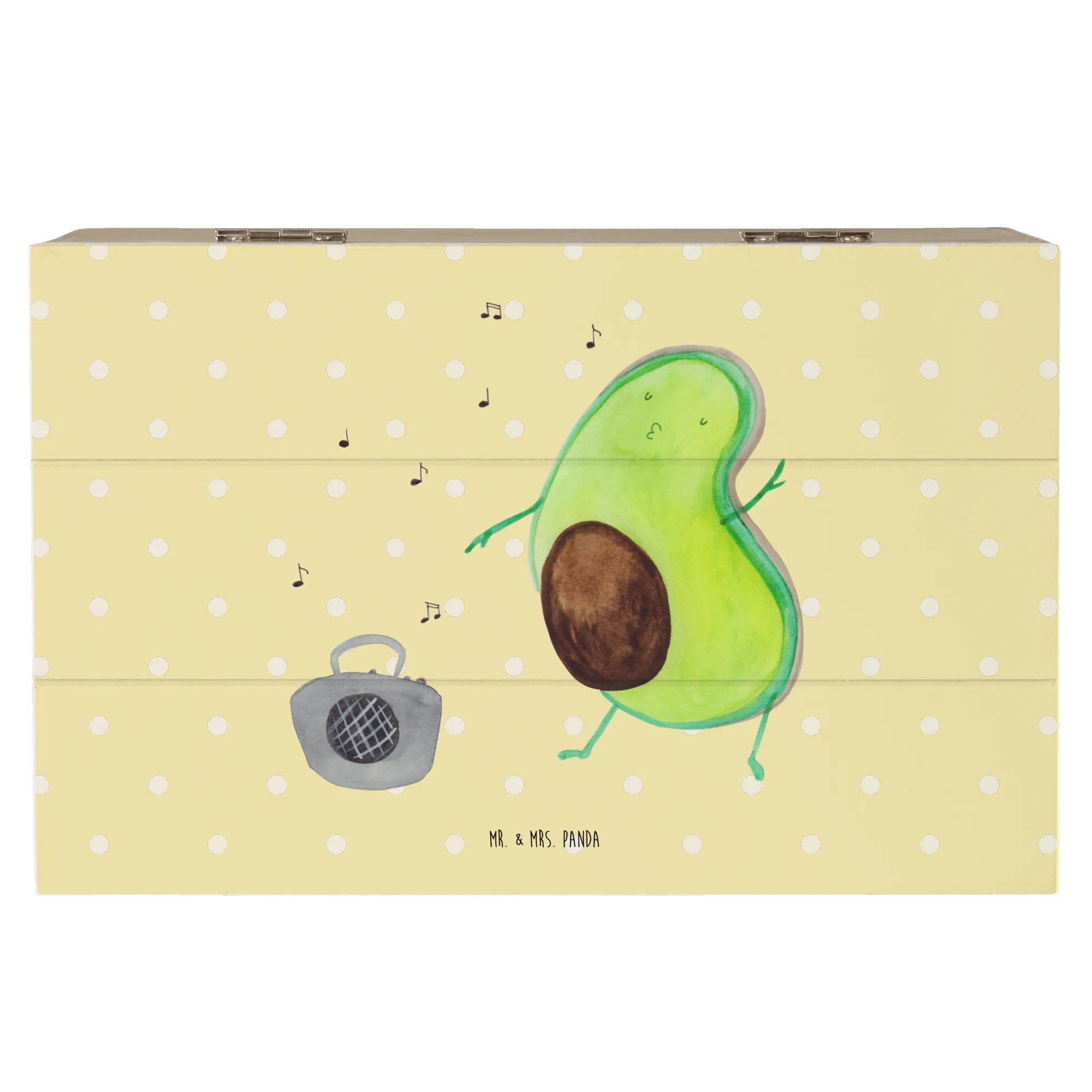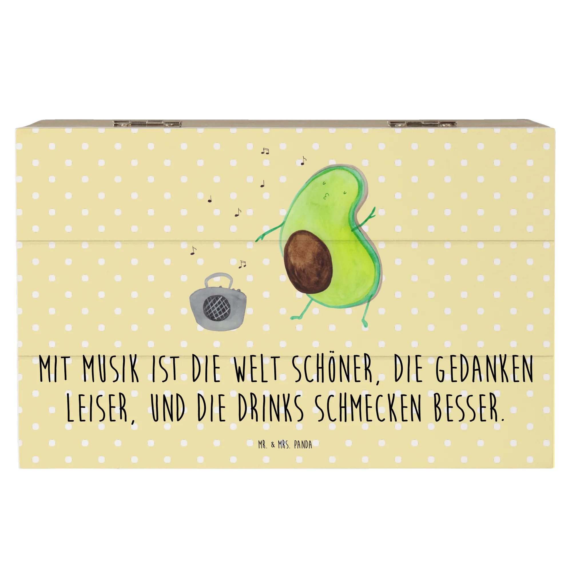 Wenn du auf der Suche nach einem ganz besonderen Geschenk bist, dann ist die Holzkiste "Avocado tanzt" aus der beliebten Avocado Kollektion von Mr. & Mrs. Panda genau das Richtige für dich!