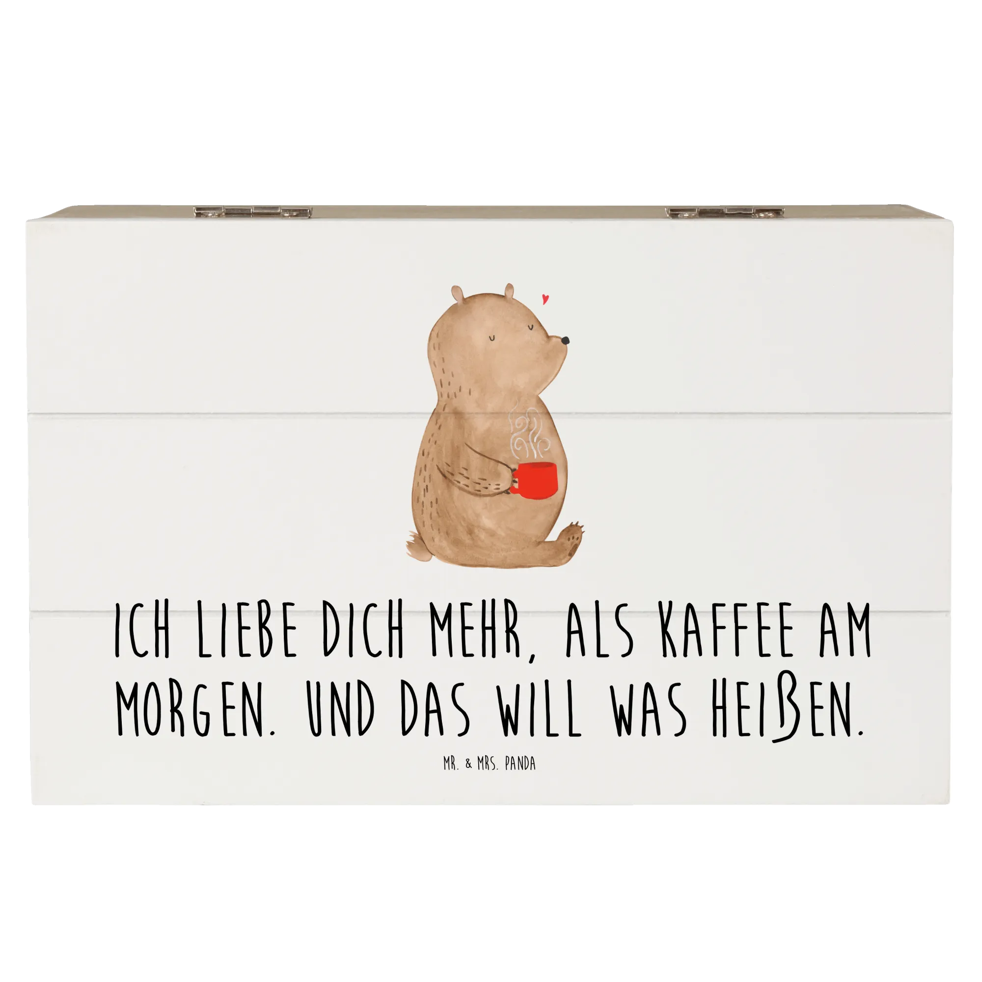 Du suchst das perfekte Geschenk für deine Liebsten? Die wunderschöne Holzkiste Bär Morgenkaffee von Mr. & Mrs. Panda ist genau das Richtige! Mit ihrem charmanten Design und dem liebevollen Slogan "Ich liebe dich mehr, als Kaffee am Morgen. Und das will was heißen!" ist sie das ideale Liebesgeschenk für jeden Anlass. Egal ob zum Valentinstag, Jahrestag oder einfach nur als kleine Aufmerksamkeit – diese Erinnerungskiste sorgt für strahlende Augen!