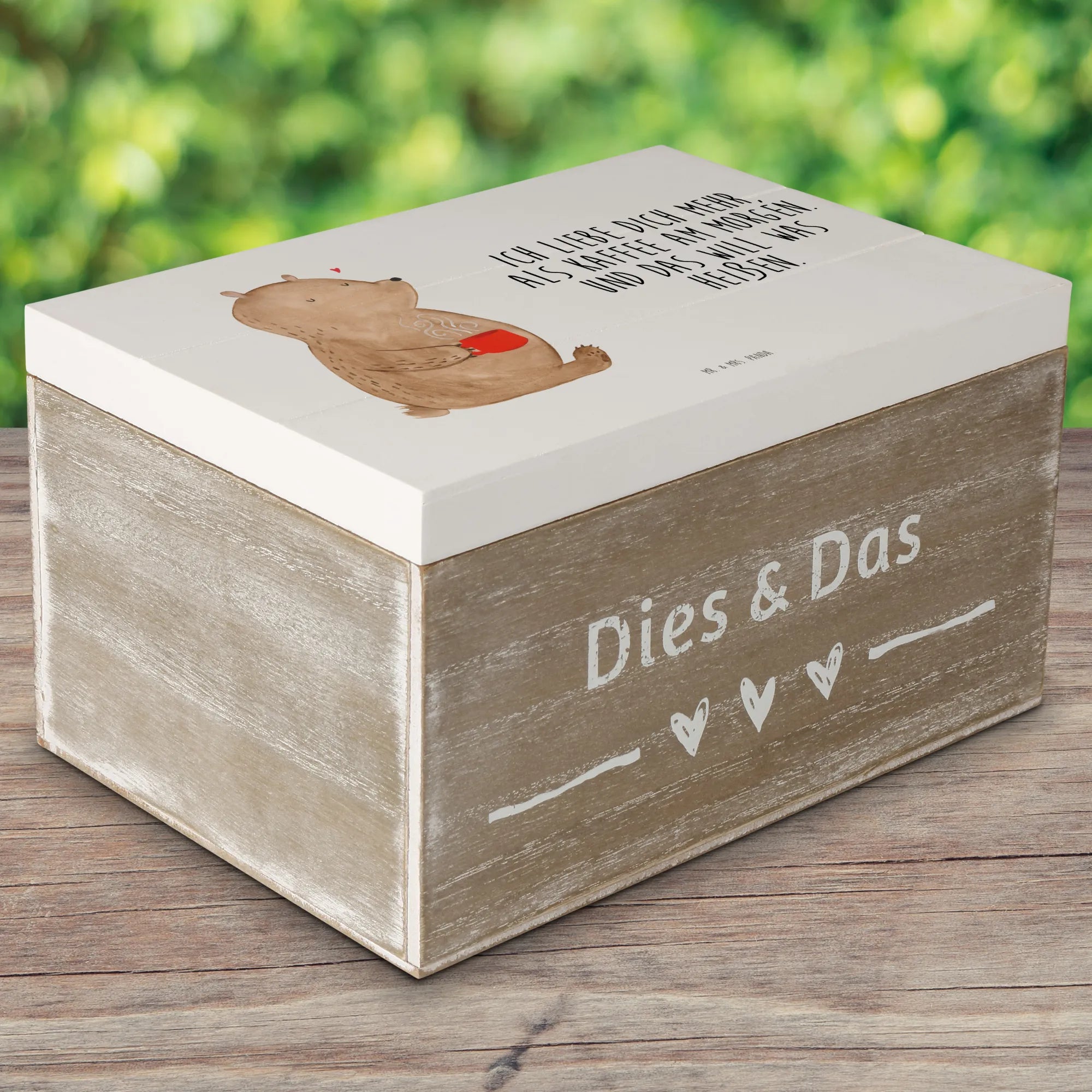 Suchst du nach dem perfekten Geschenk für deine Liebsten? Dann ist die Holzkiste "Bär Morgenkaffee" von Mr. & Mrs. Panda genau das Richtige für dich! Diese wunderschöne Schatzkiste ist nicht nur praktisch, sondern auch ein echter Hingucker.