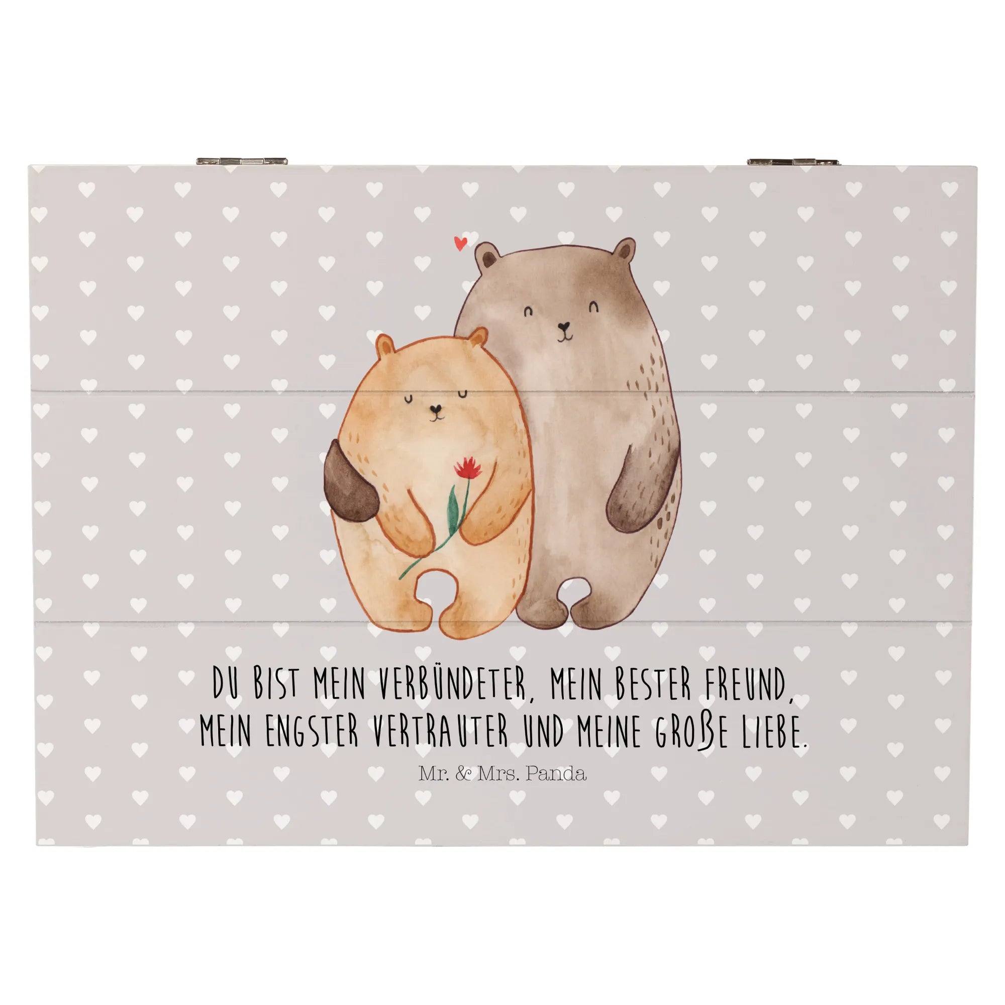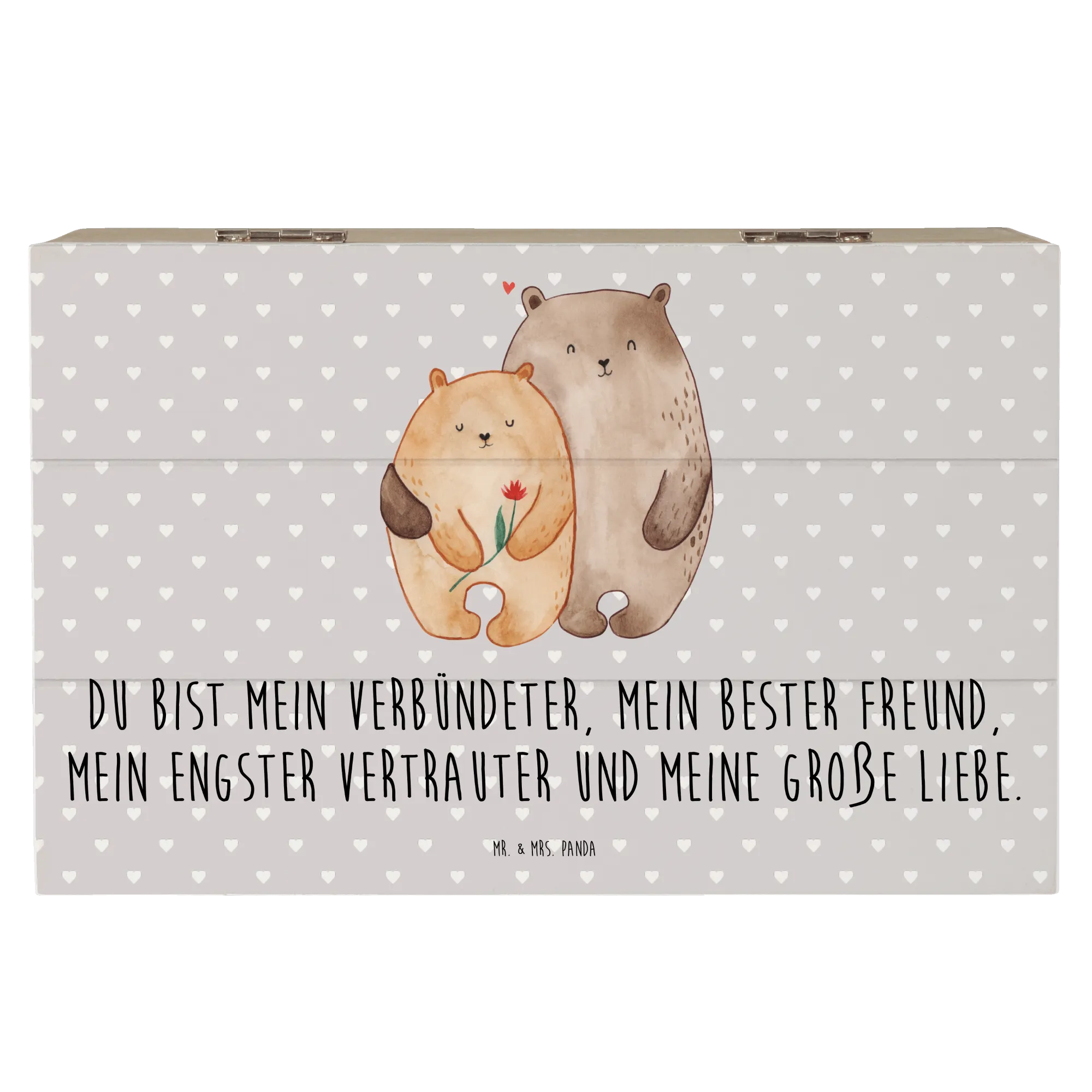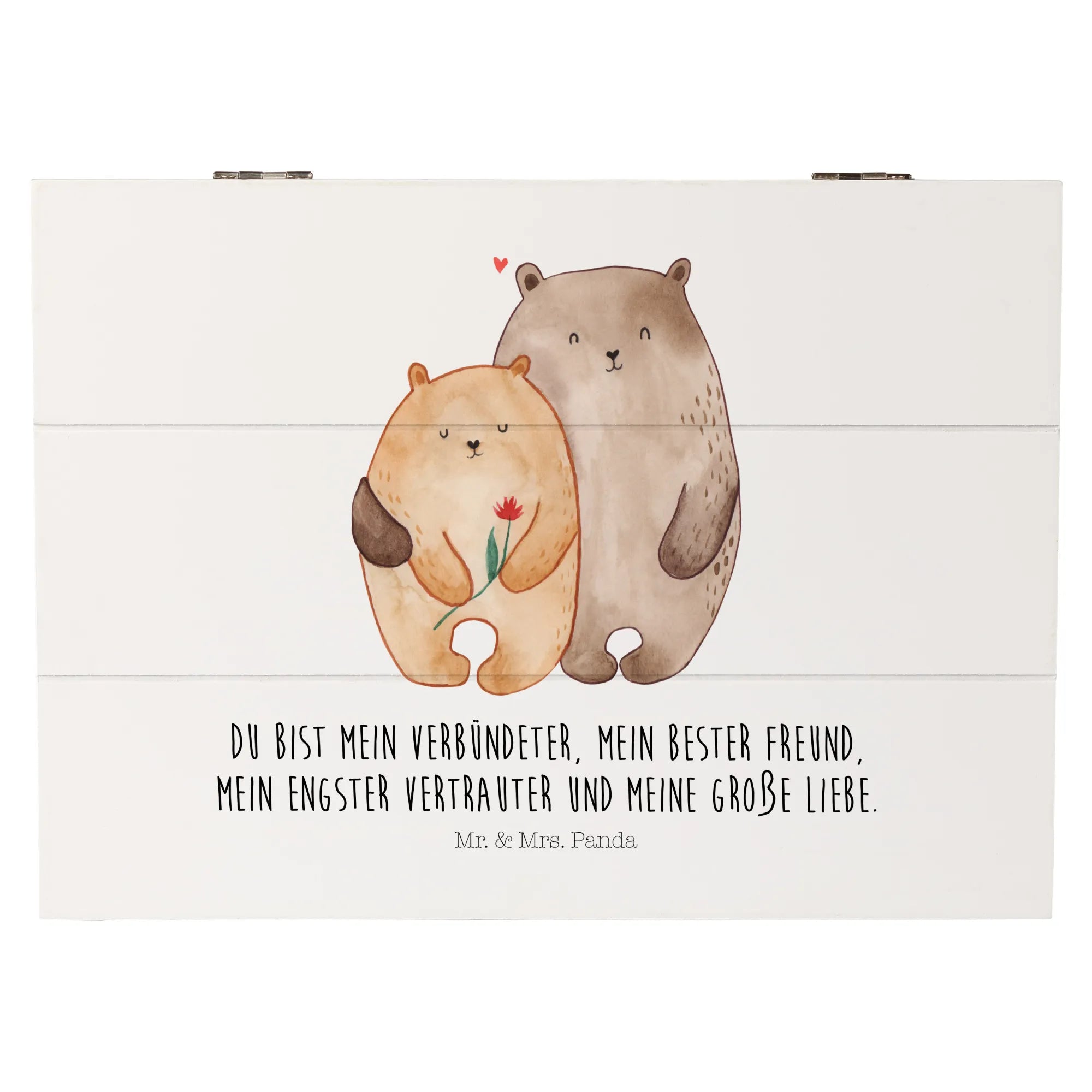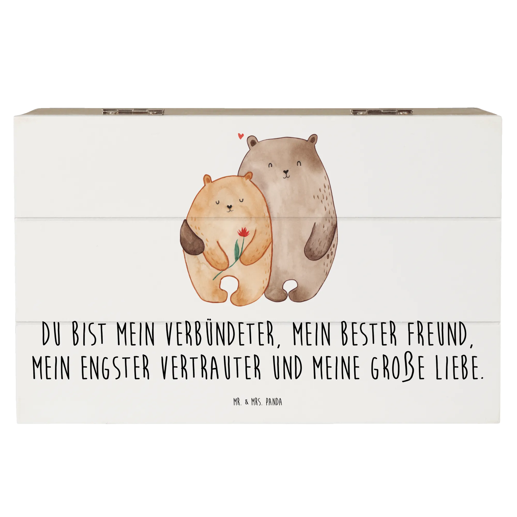 Die wunderschöne Holzkiste "Bären Liebe" von Mr. & Mrs. Panda ist das perfekte Geschenk für alle, die ihren Liebsten eine besondere Freude bereiten wollen. ❤️ Mit ihrem reizenden Motiv, das zwei verliebte Bären zeigt, die liebevoll ein Herz bilden, strahlt diese Kiste Liebe und Zuneigung aus. Ob für den Jahrestag, den Hochzeitstag oder einfach als Liebesbeweis – diese Erinnerungskiste ist ideal, um besondere Momente und Schätze aufzubewahren.