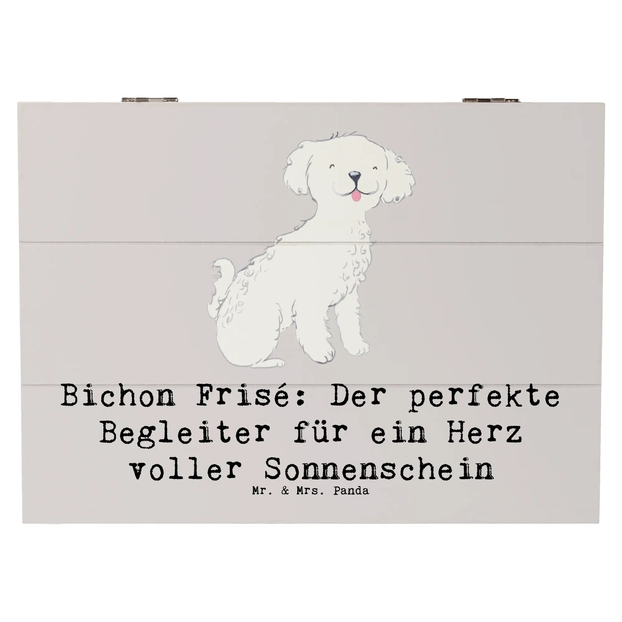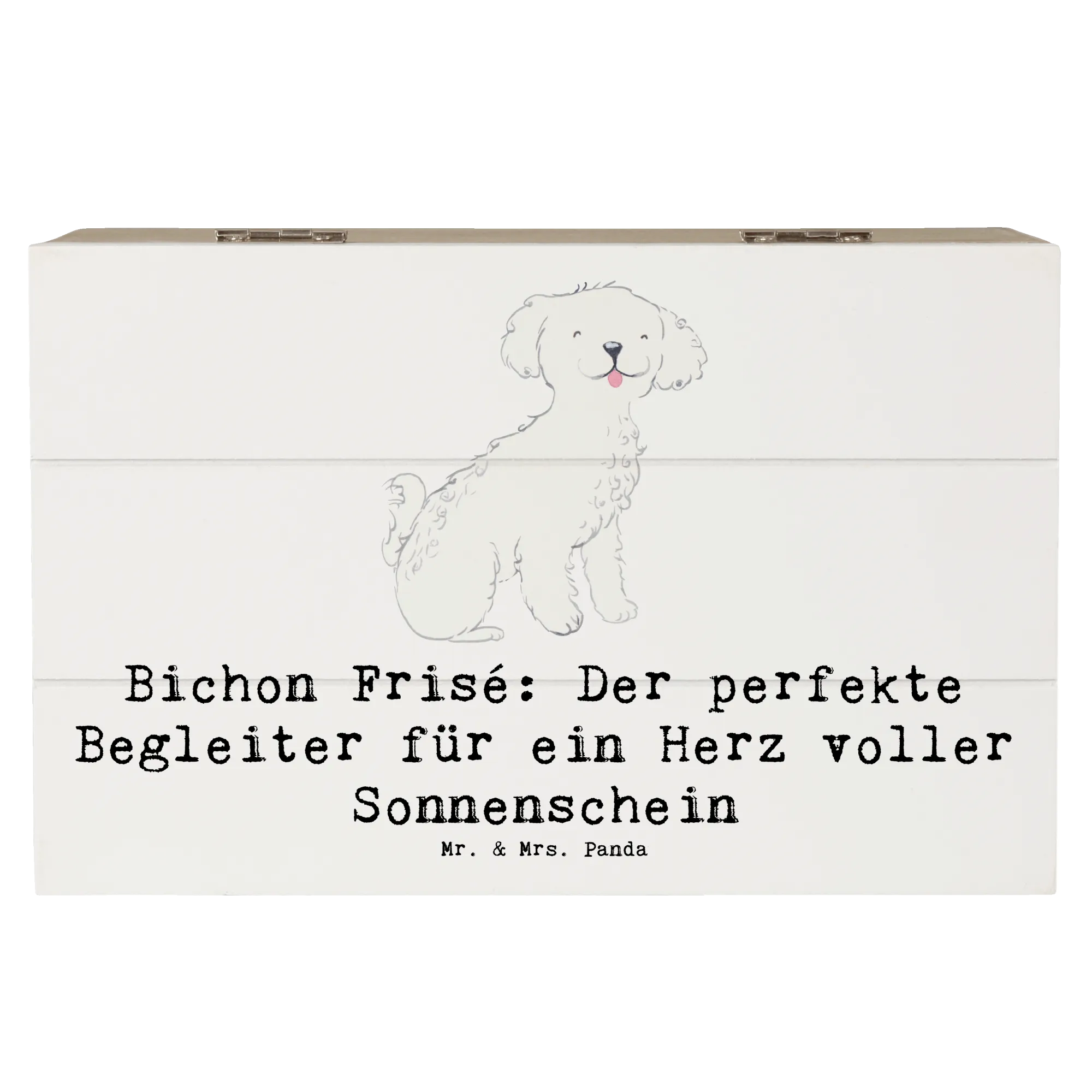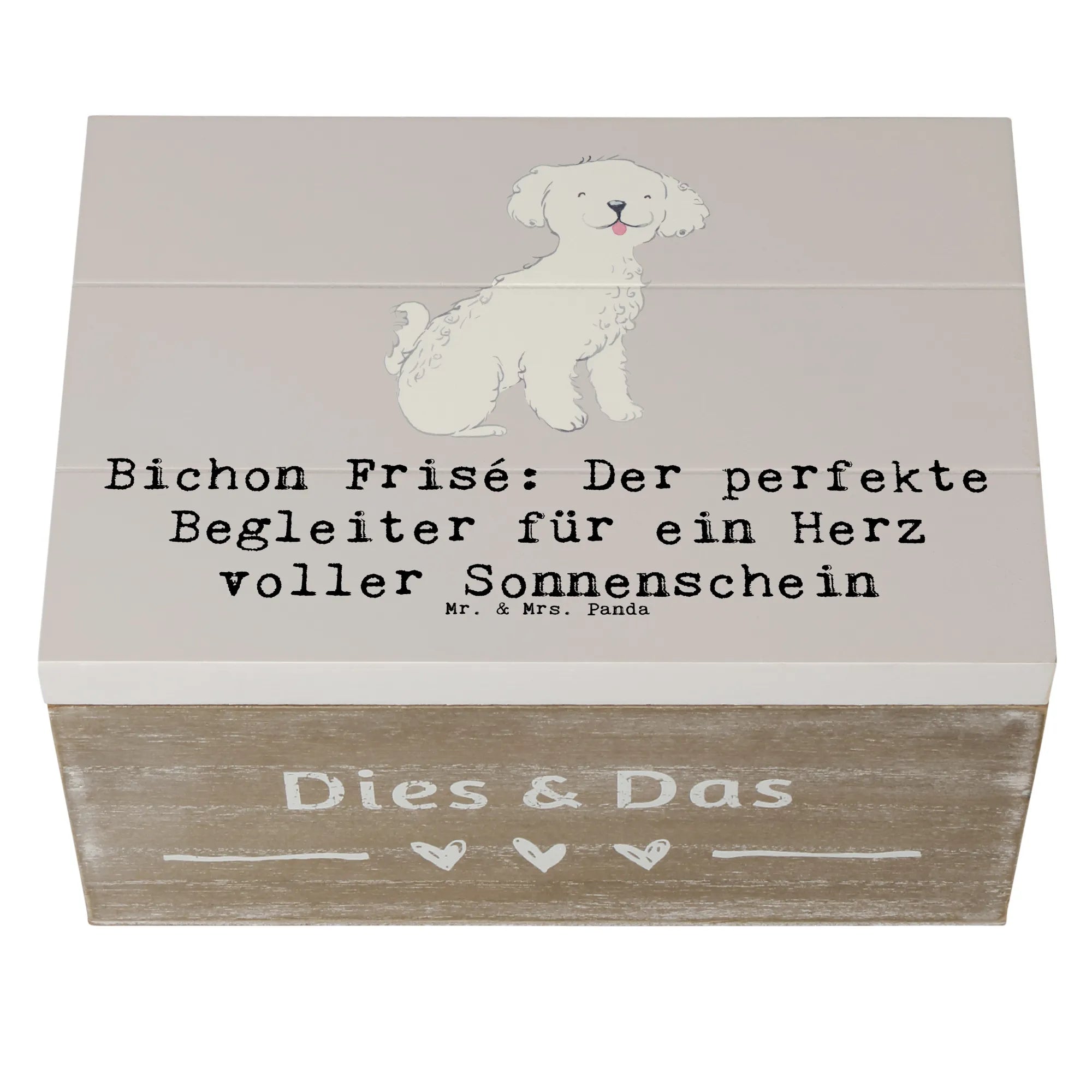 Die wunderschöne Holzkiste mit dem niedlichen Motiv "Bichon Frisé: Der perfekte Begleiter für ein Herz voller Sonnenschein" von Mr. & Mrs. Panda ist mehr als nur eine Kiste. Sie ist ein wahres Schatzkästchen für Hundefans! 🌟