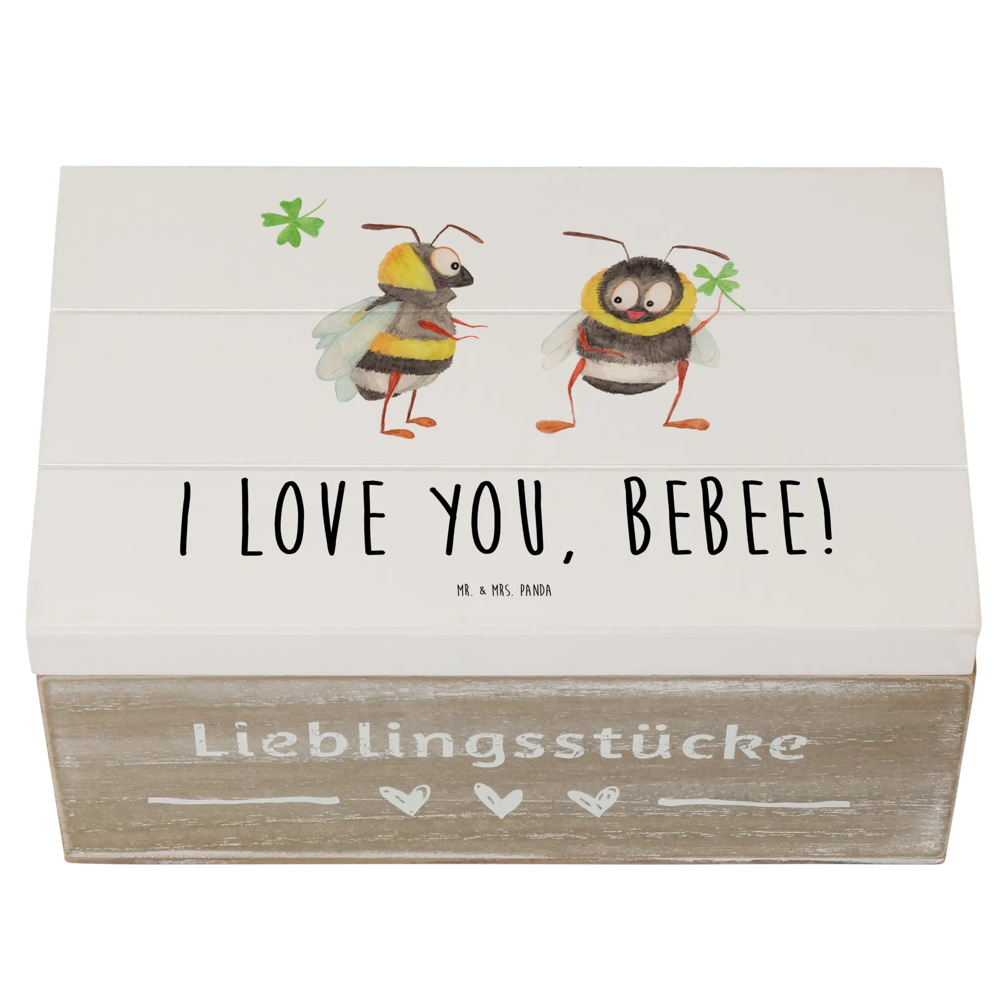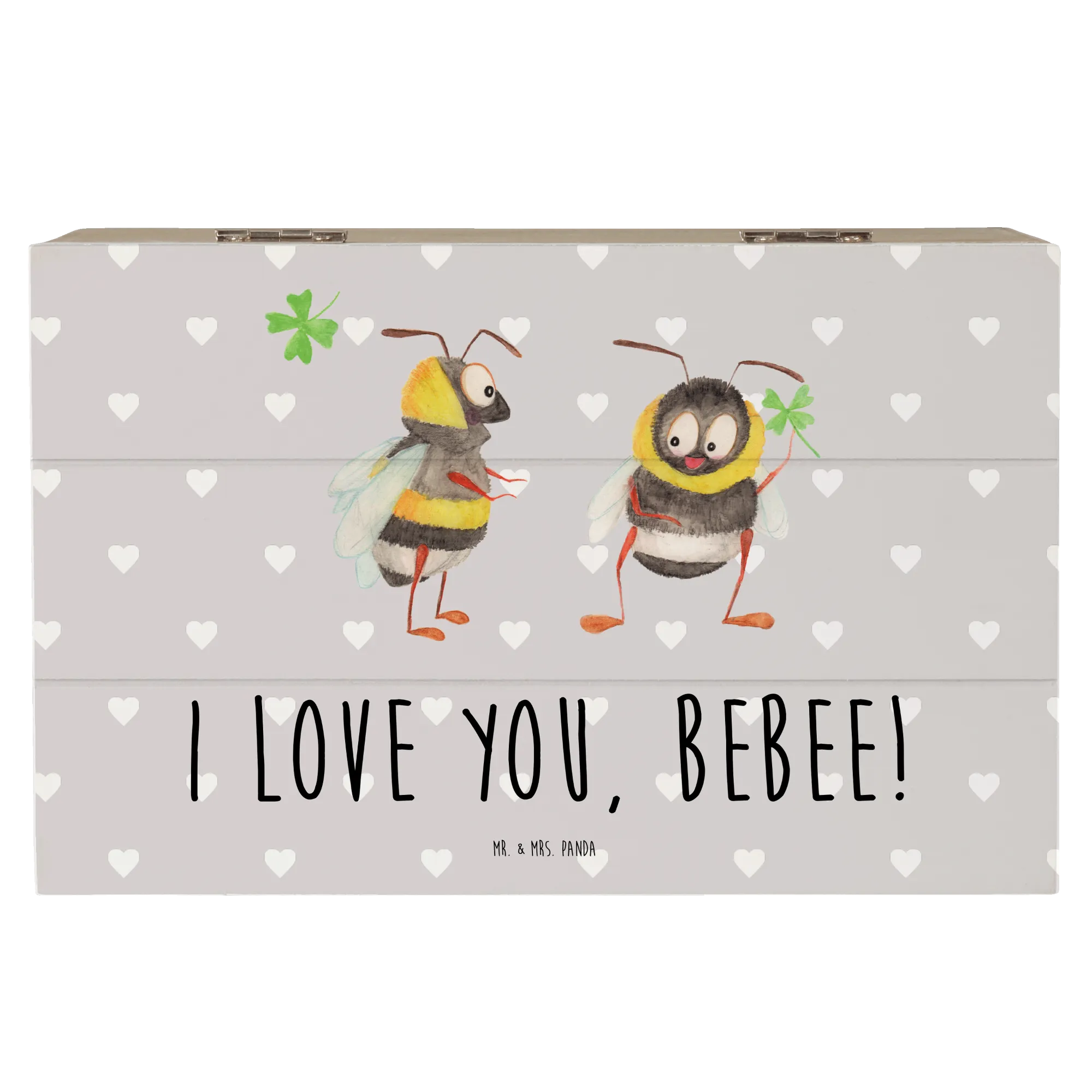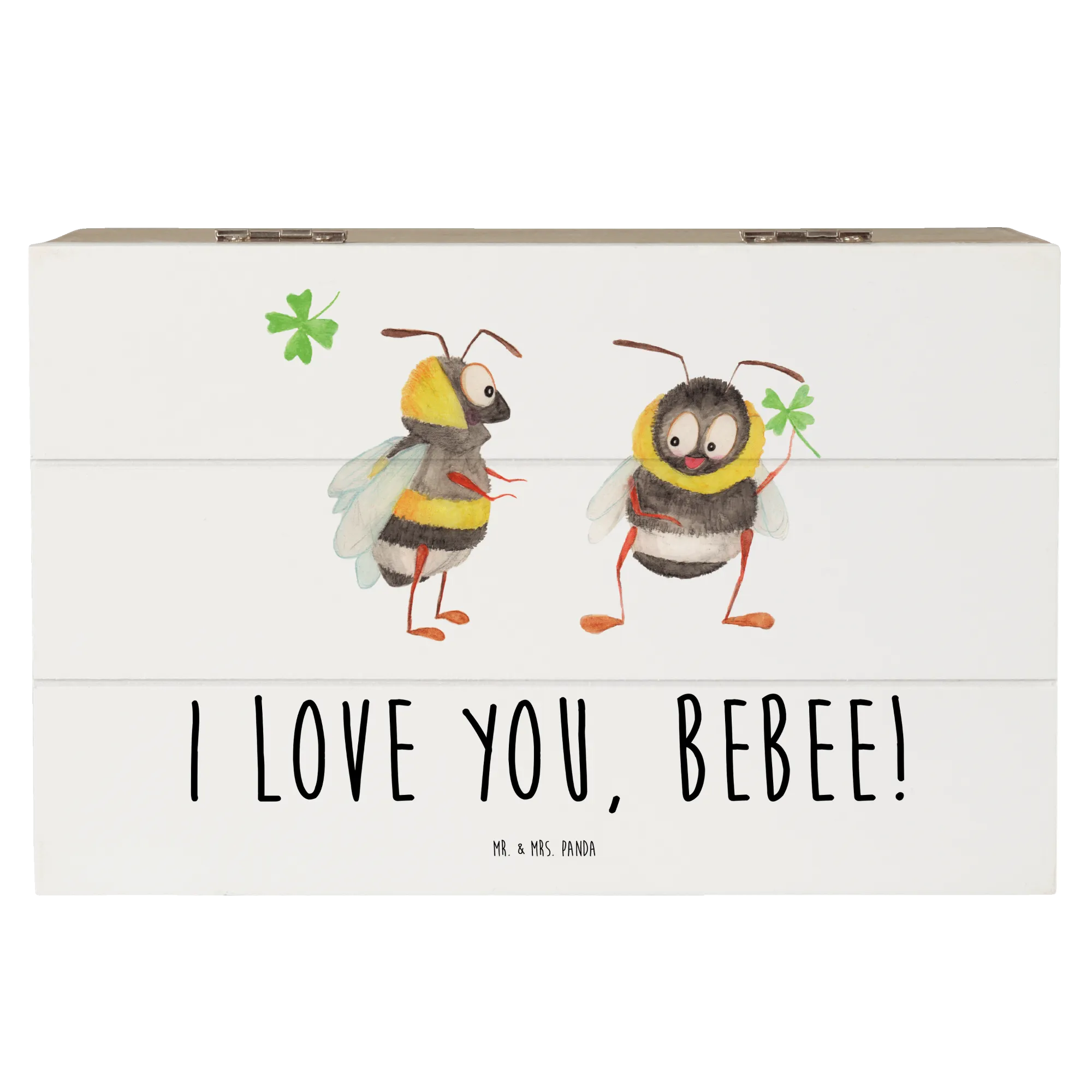 Entdecke die zauberhafte Holzkiste mit dem niedlichen Motiv der Bienen Paar von Mr. & Mrs. Panda! Diese wunderschöne Holzkiste ist der perfekte Aufbewahrungsort für all deine wertvollen Schätze und Erinnerungen.