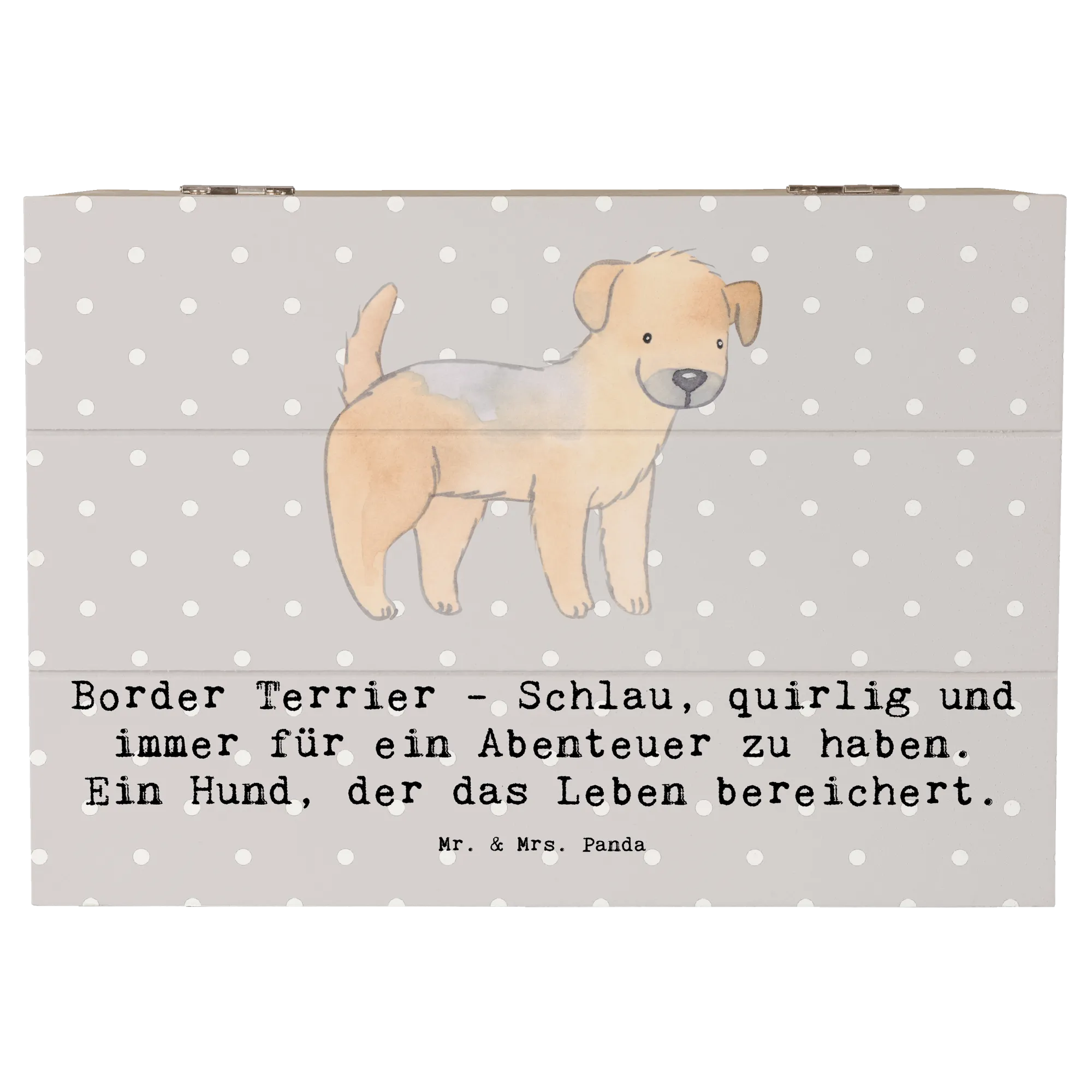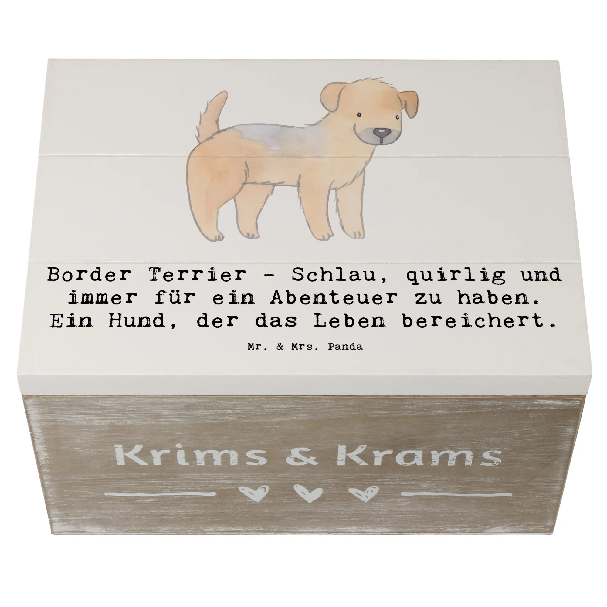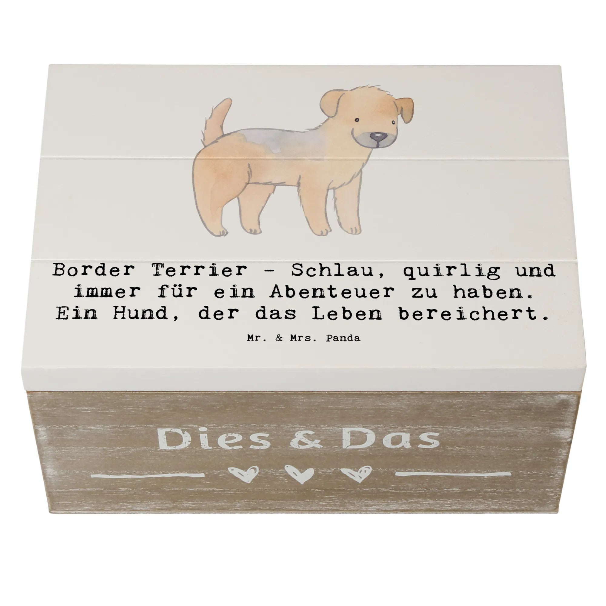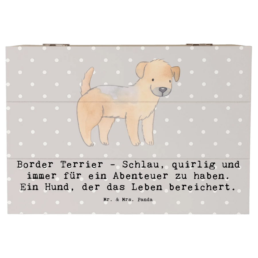 Entdecke die wunderschöne Holzkiste mit dem Motiv Border Terrier aus der Hunderassen-Kollektion von Mr. & Mrs. Panda! Diese Kiste ist nicht nur eine dekorative Augenweide, sondern auch der ideale Aufbewahrungsort für all deine wertvollen Schätze.