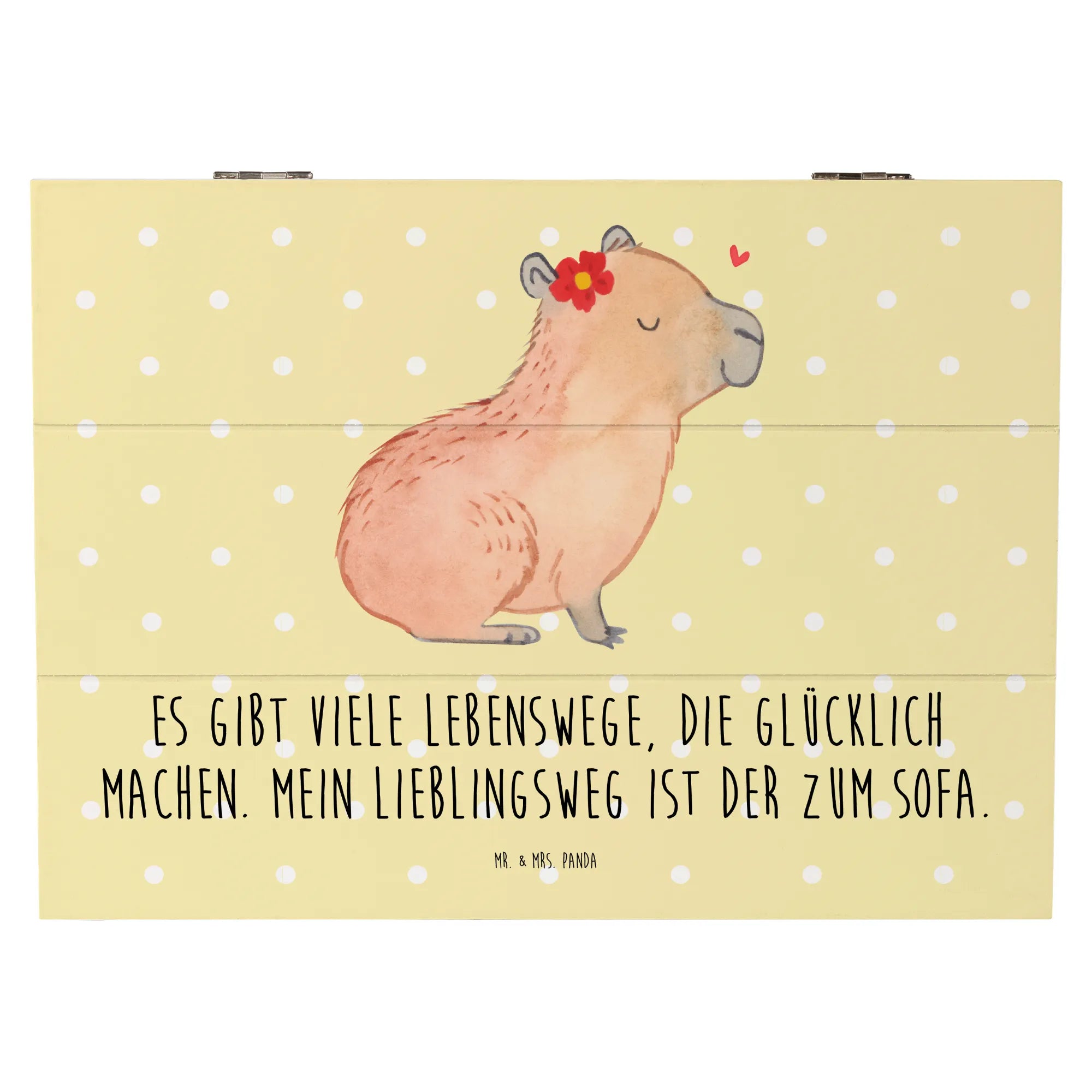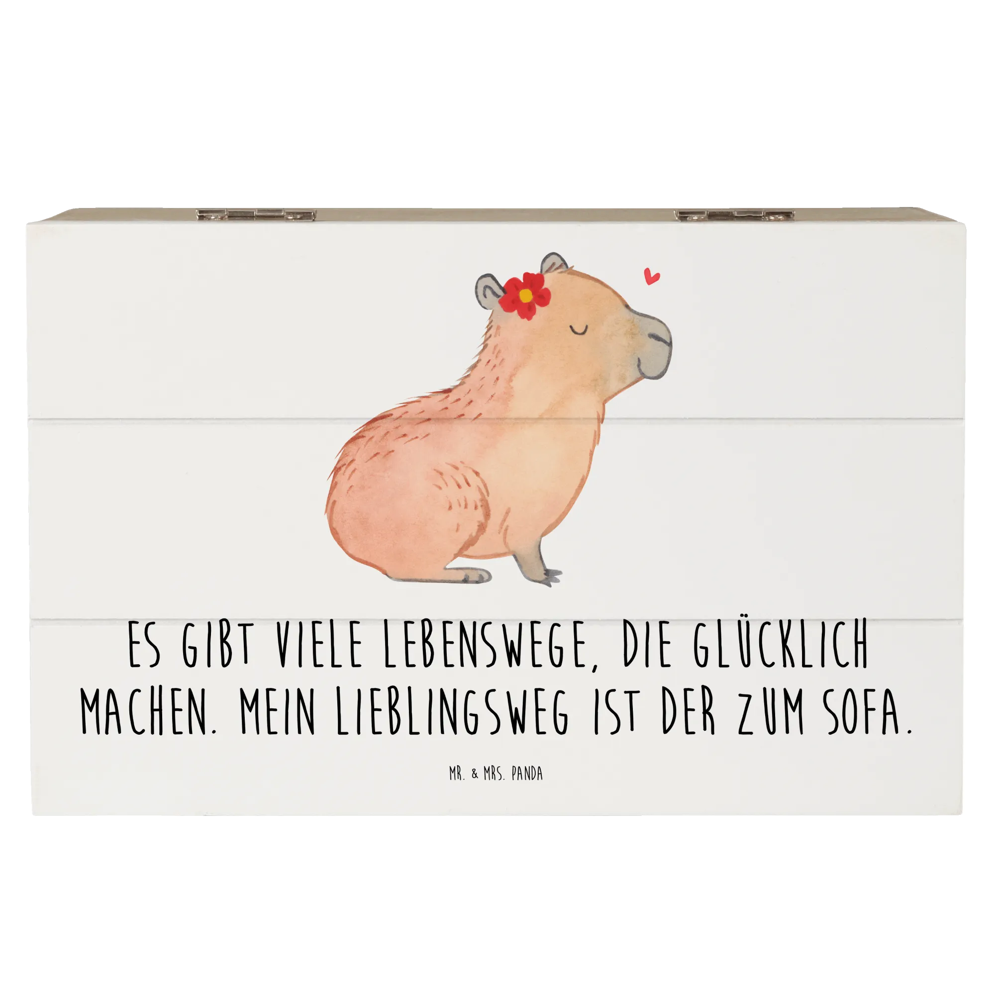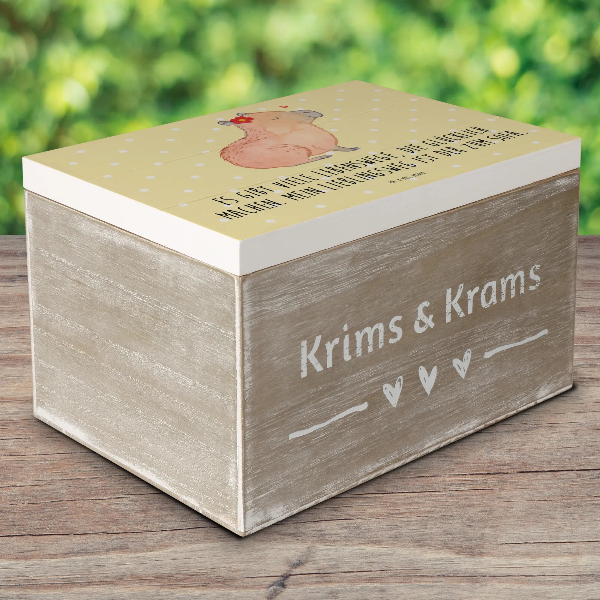 Beschenke deine Liebsten oder dich selbst mit der Holzkiste 'Capybara Blume' von Mr. & Mrs. Panda – der perfekte Aufbewahrungsort für all deine kleinen Schätze!