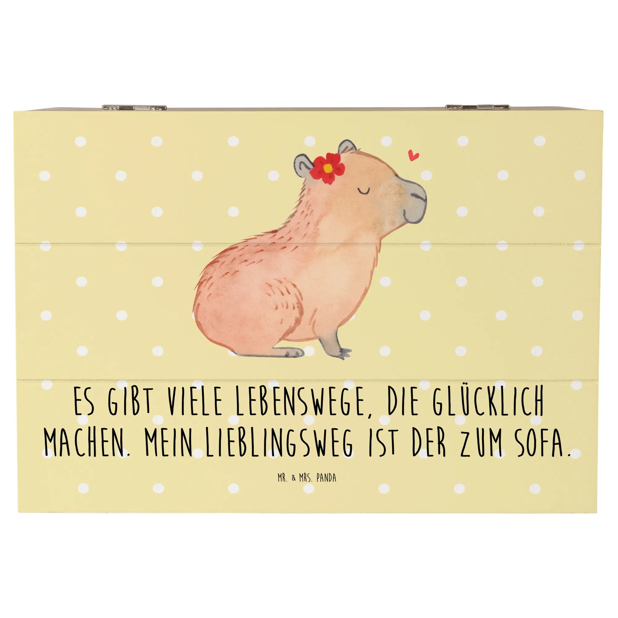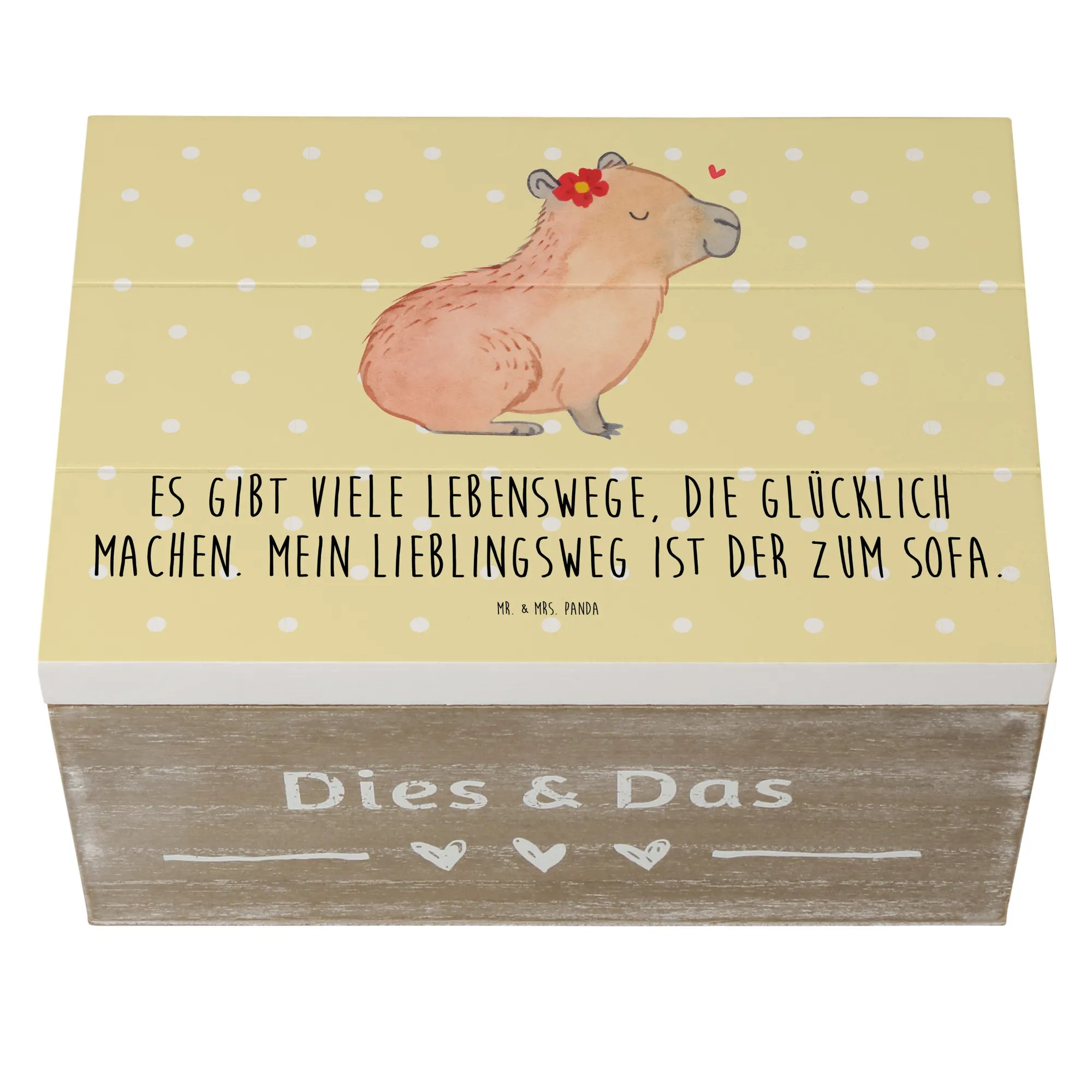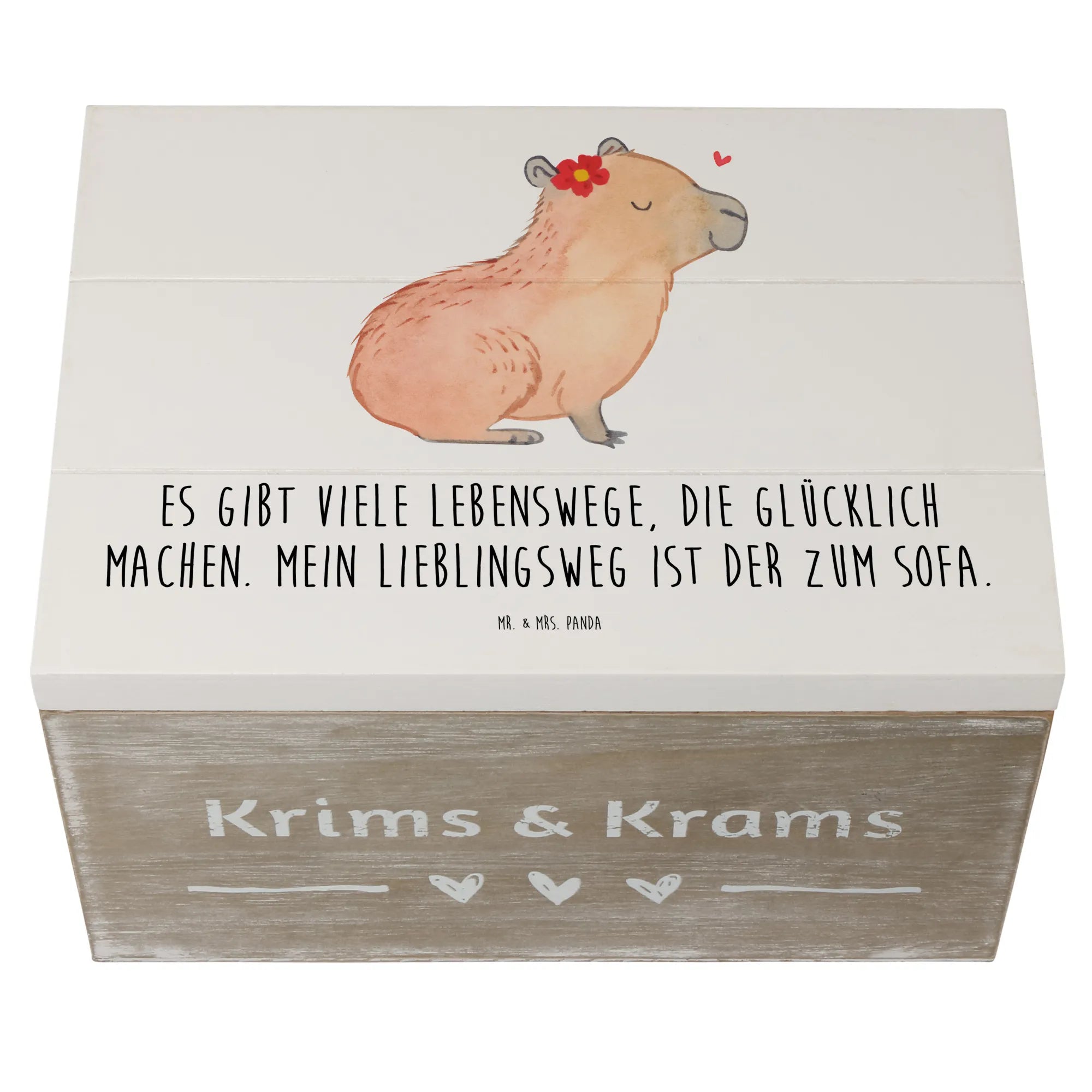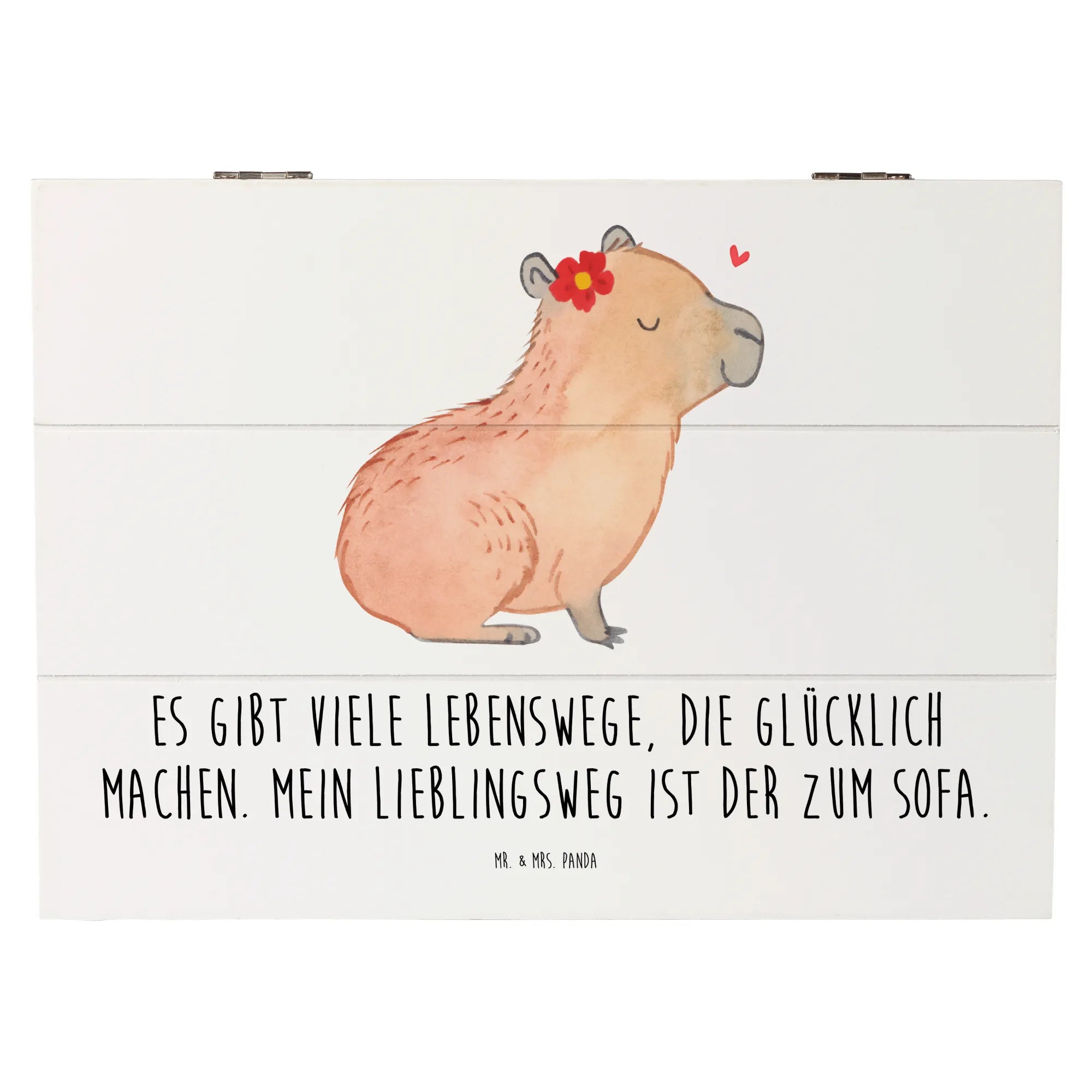 Beschenke deine Liebsten oder dich selbst mit der Holzkiste 'Capybara Blume' von Mr. & Mrs. Panda – der perfekte Aufbewahrungsort für all deine kleinen Schätze!