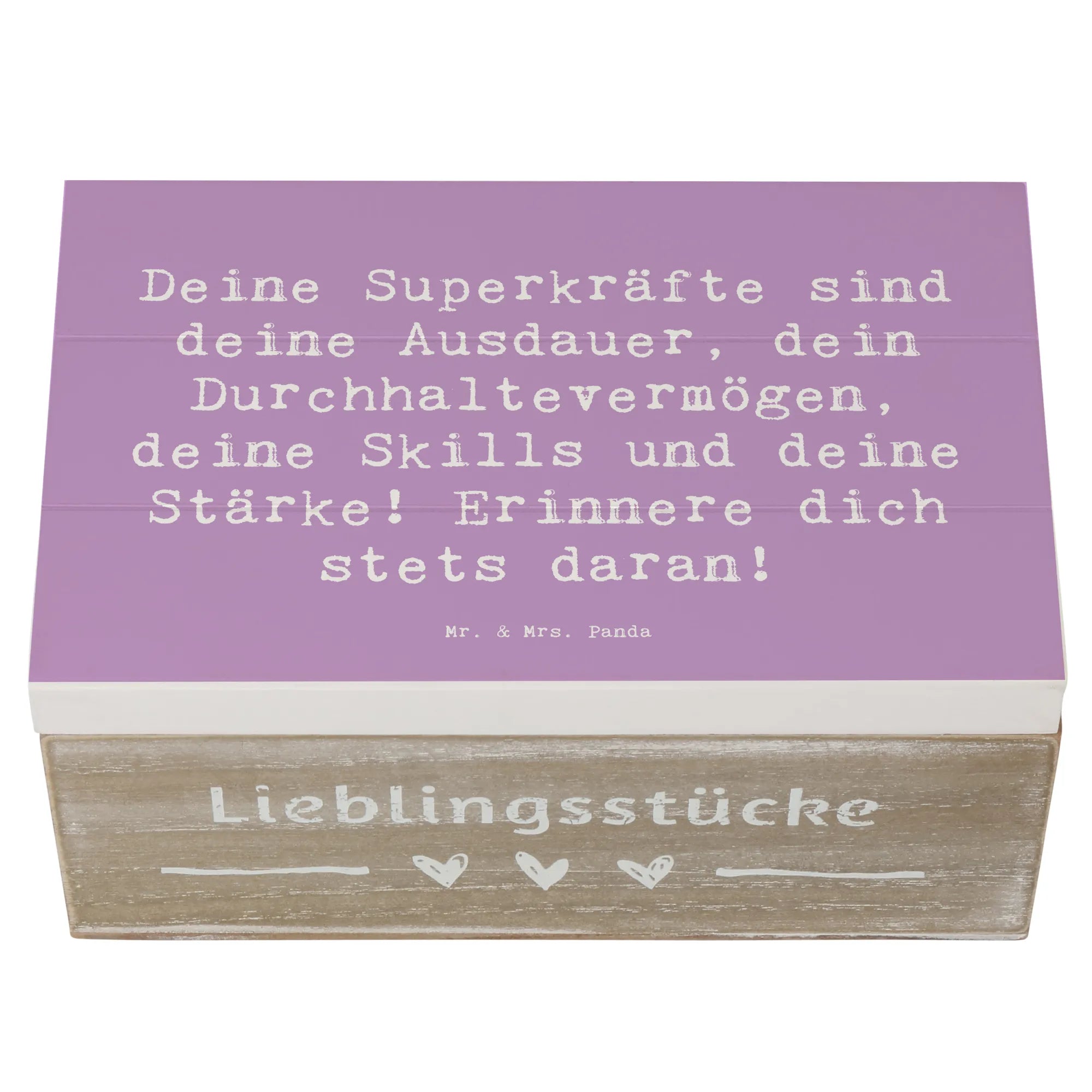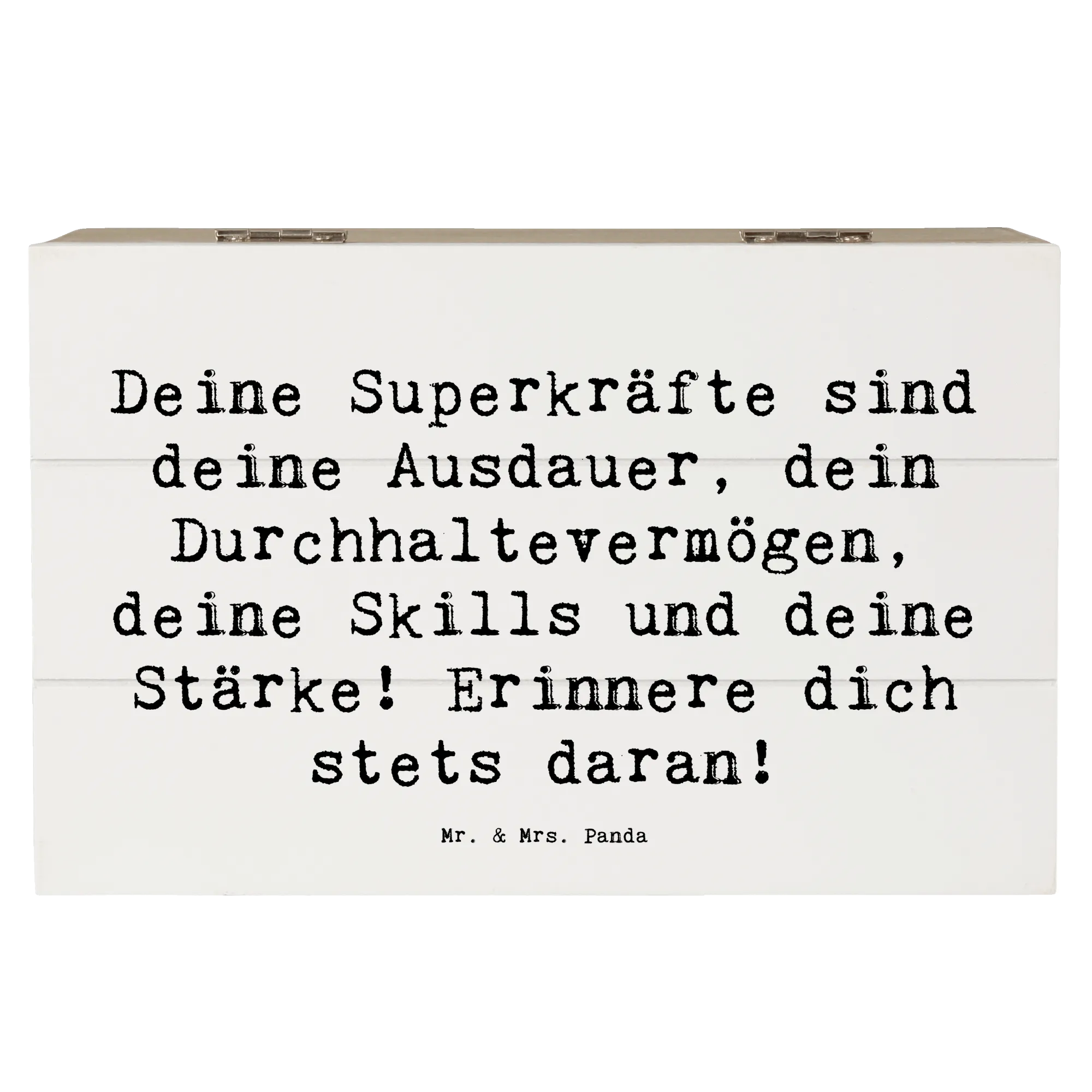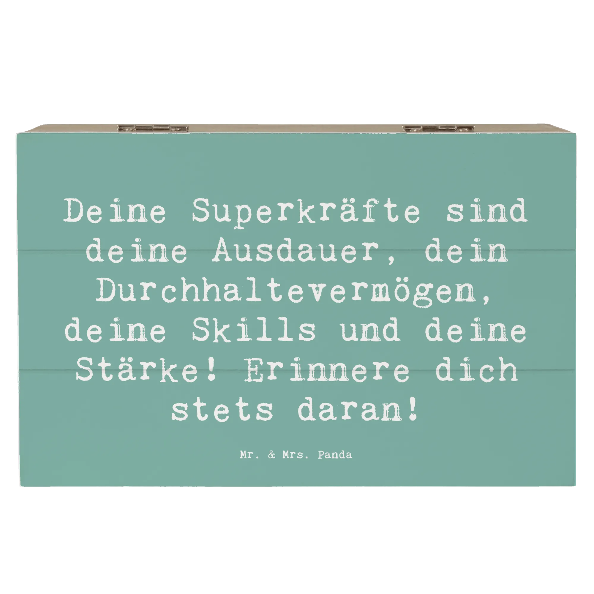 Diese bezaubernde Kiste ist nicht nur ein echter Blickfang, sondern auch das perfekte Geschenk für sportbegeisterte Menschen in Deinem Leben! Die wertvolle Botschaft "Deine Superkräfte sind deine Ausdauer, dein Durchhaltevermögen, deine Skills und deine Stärke! Erinnere dich stets daran!" erinnert jeden daran, was wirklich zählt, wenn es um sportliche Wettkämpfe geht.