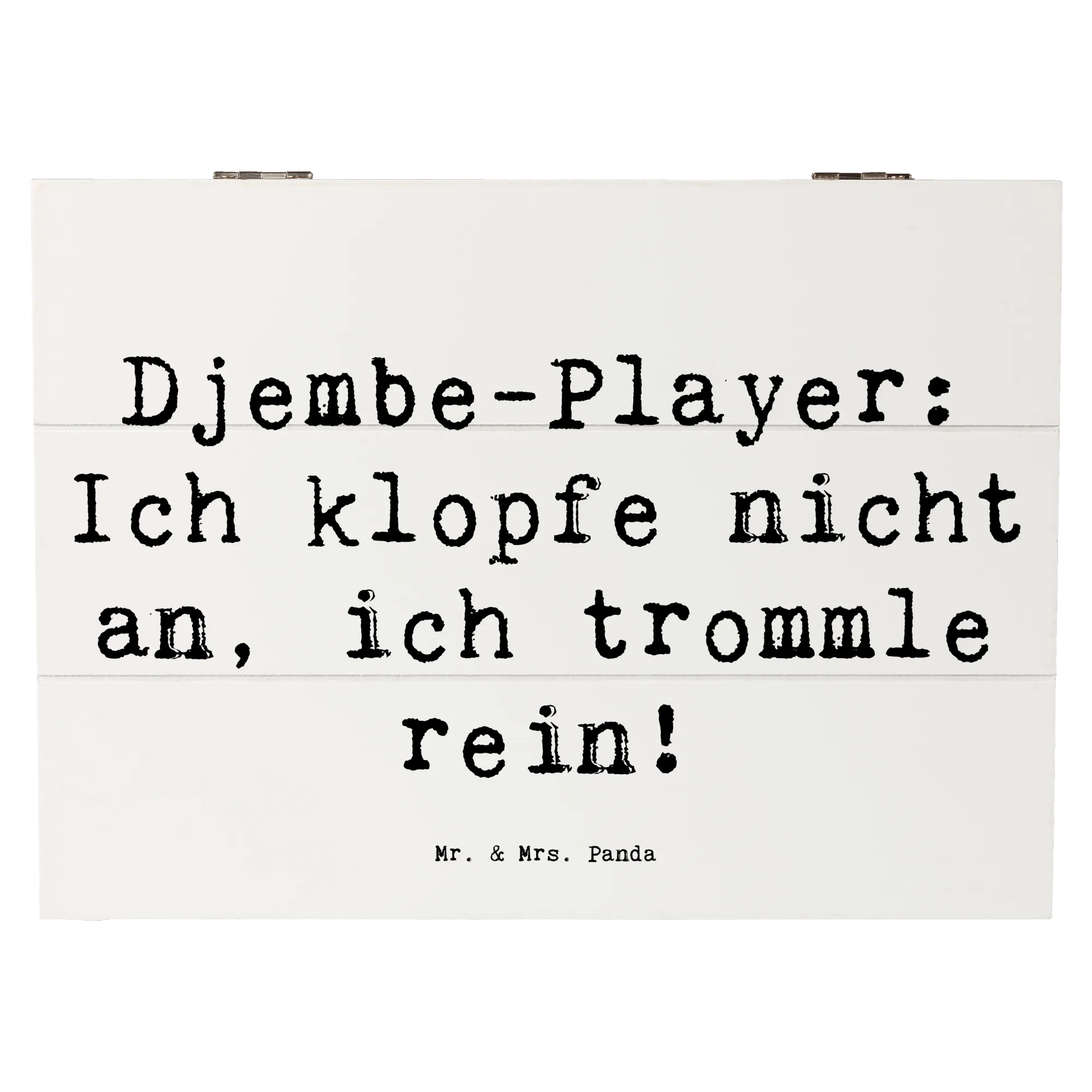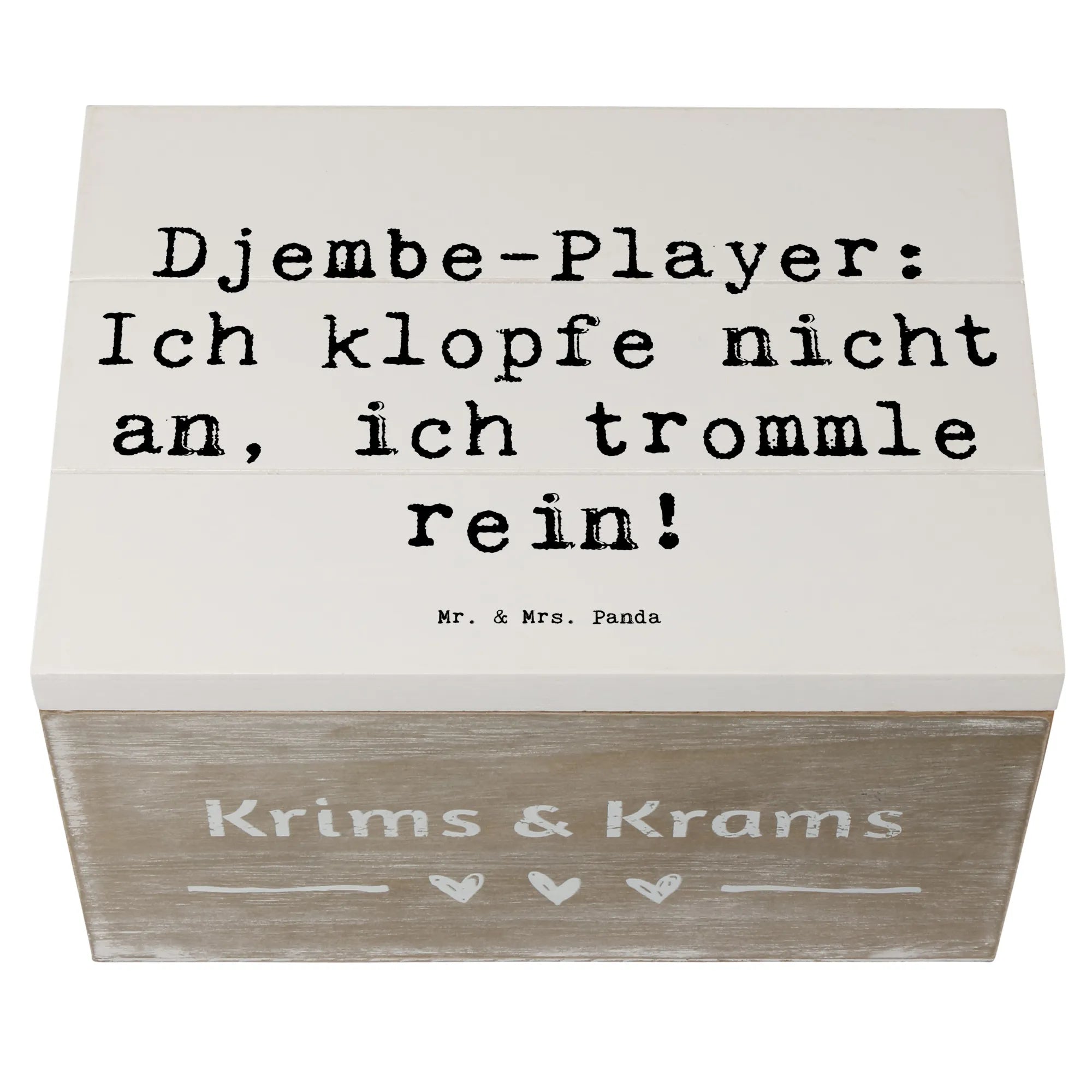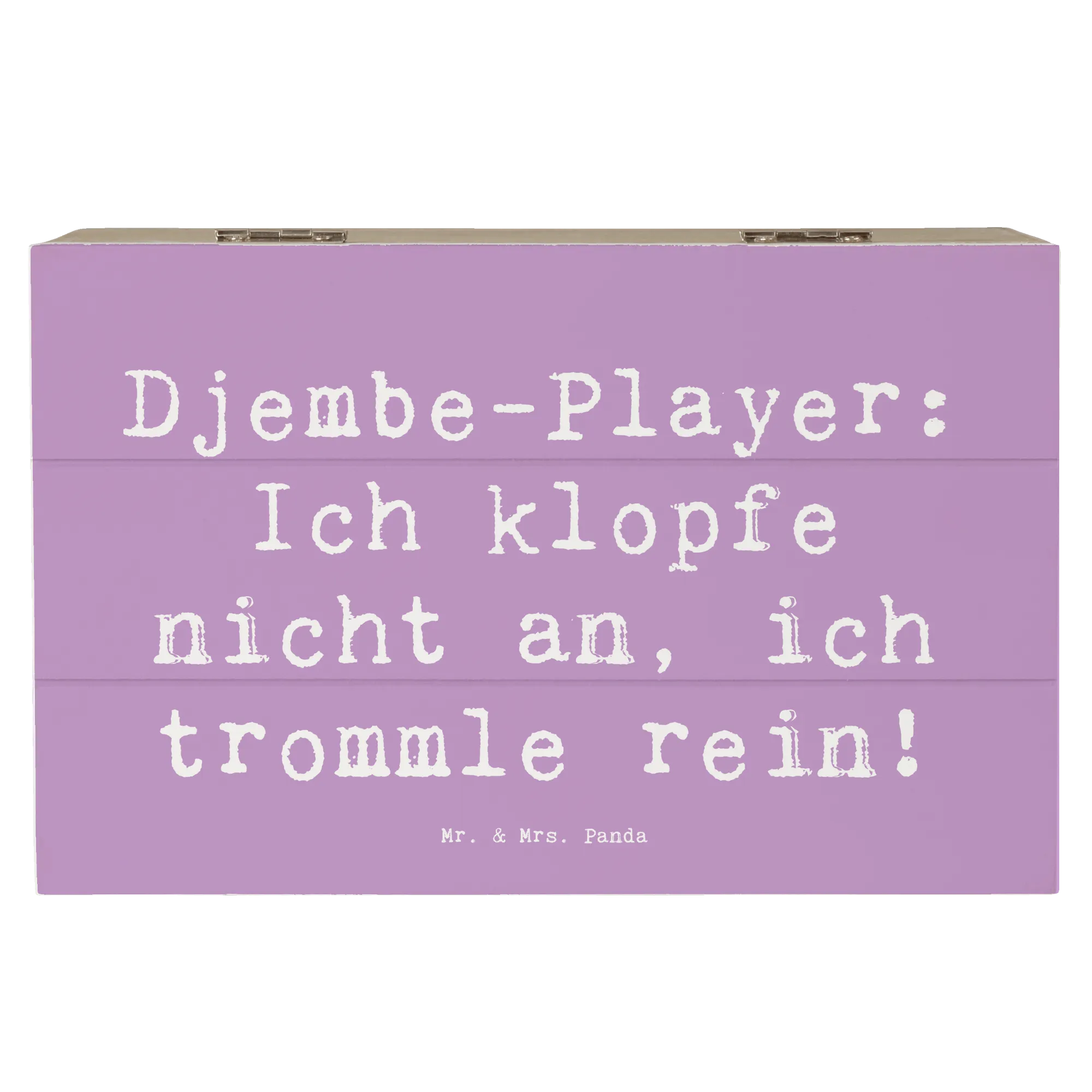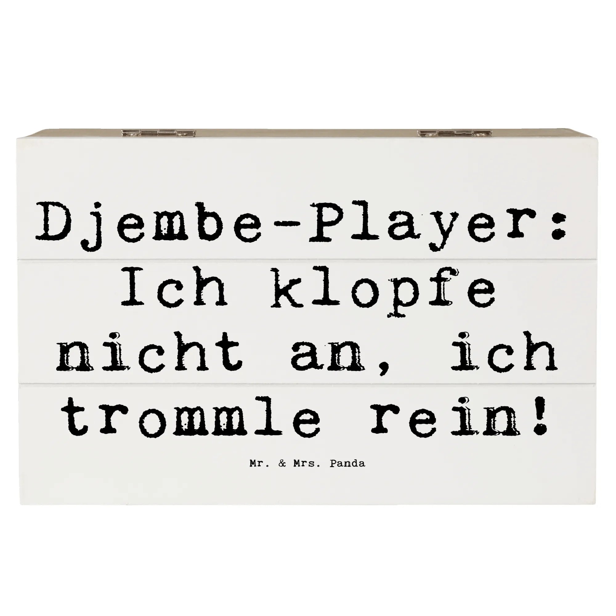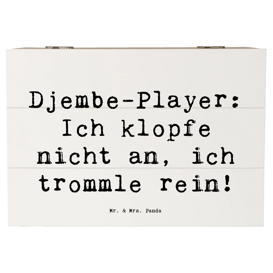 Die Holzkiste Djembe von Mr. & Mrs. Panda ist das perfekte Geschenk für Musikliebhaber aller Altersgruppen! Mit ihrem charmanten Design und der originellen Botschaft "Djembe-Player: Ich klopfe nicht an, ich trommle rein!" ist sie nicht nur ein echter Hingucker, sondern auch ein praktischer Aufbewahrungsort für all deine Schätze.