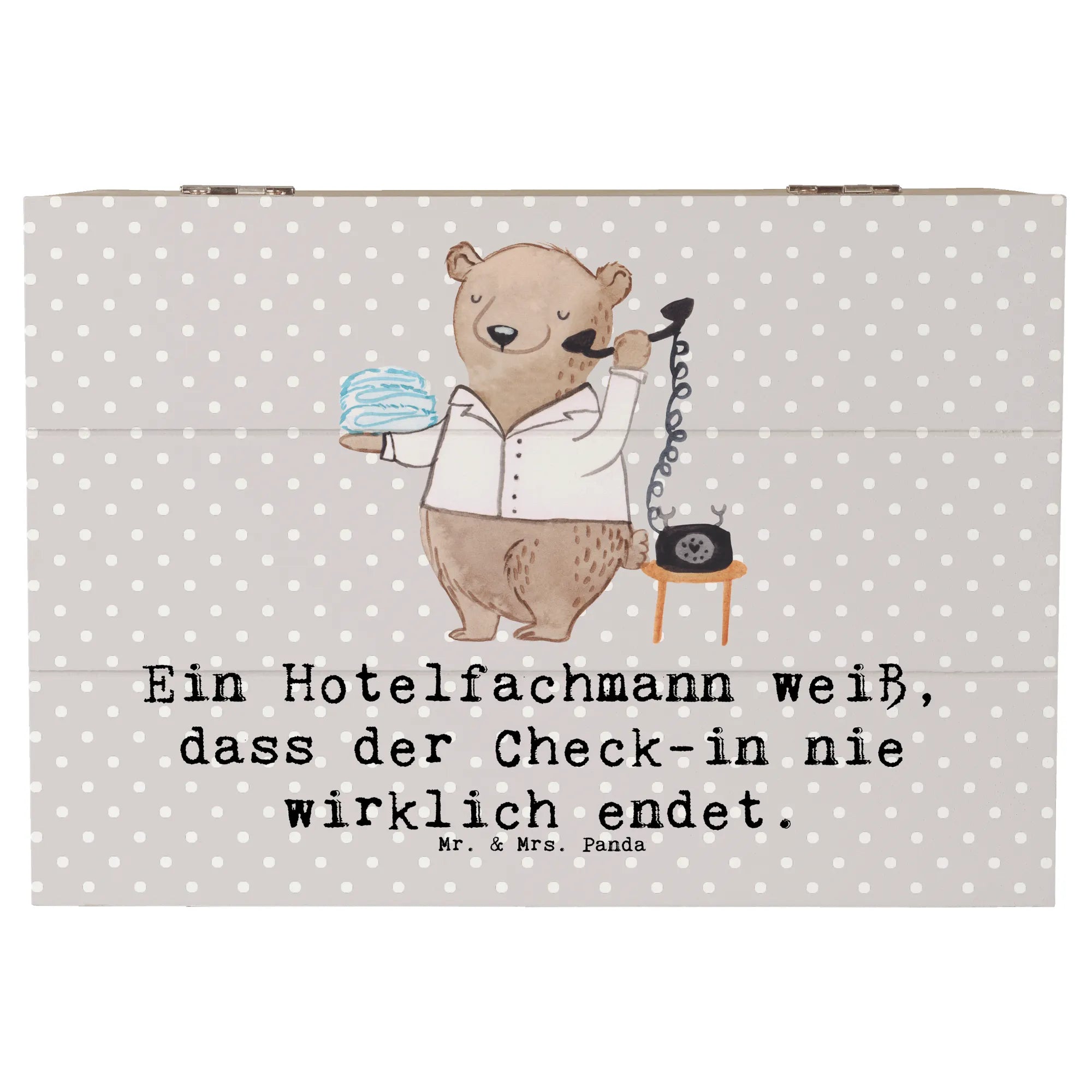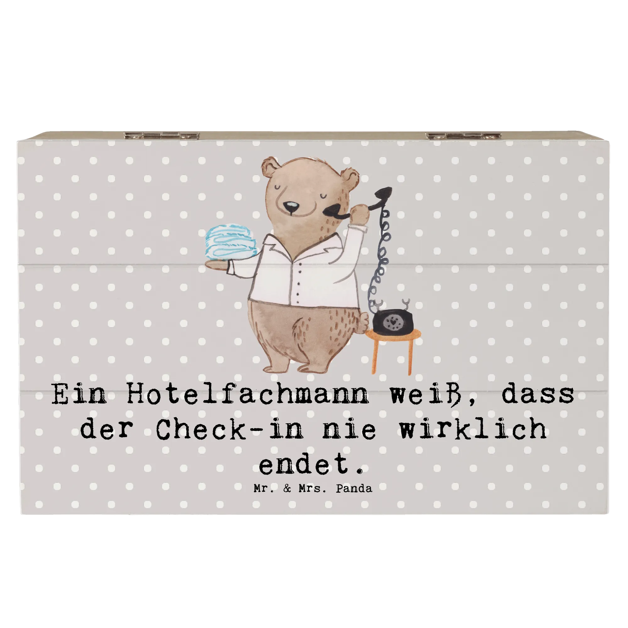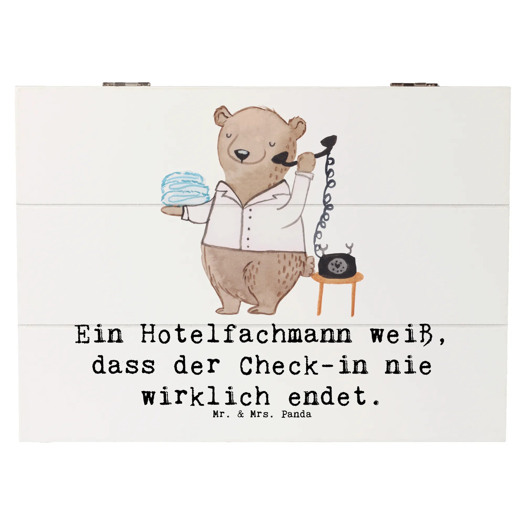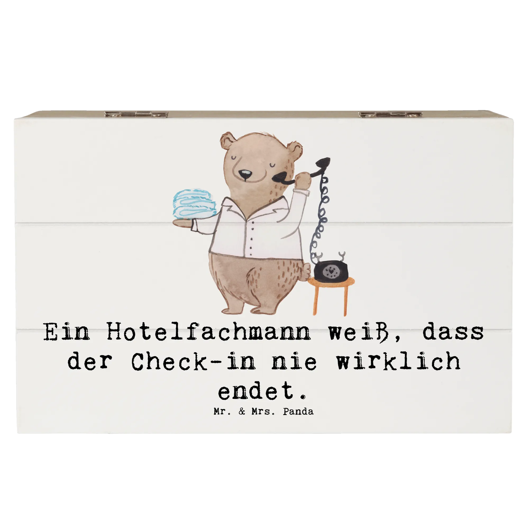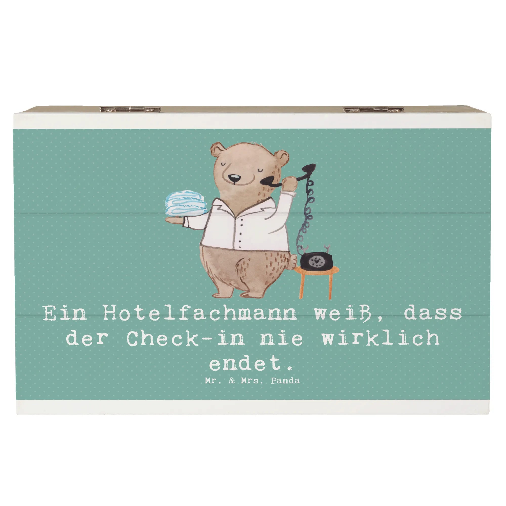 Die wunderschöne Holzkiste von Mr. & Mrs. Panda ist der perfekte Begleiter für all deine Schätze! Mit dem liebevollen Motiv "Hotelfachmann" und dem dazugehörigen Spruch "Ein Hotelfachmann weiß, dass der Check-in nie wirklich endet" wird diese Kiste zu einem ganz besonderen Aufbewahrungsort.