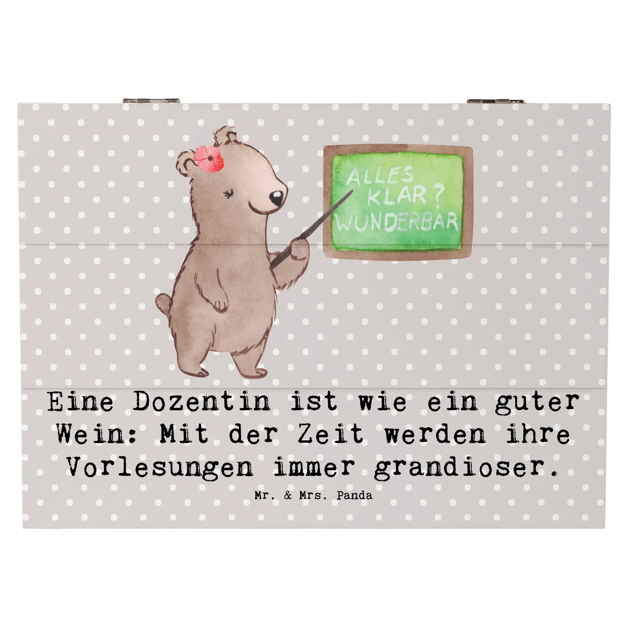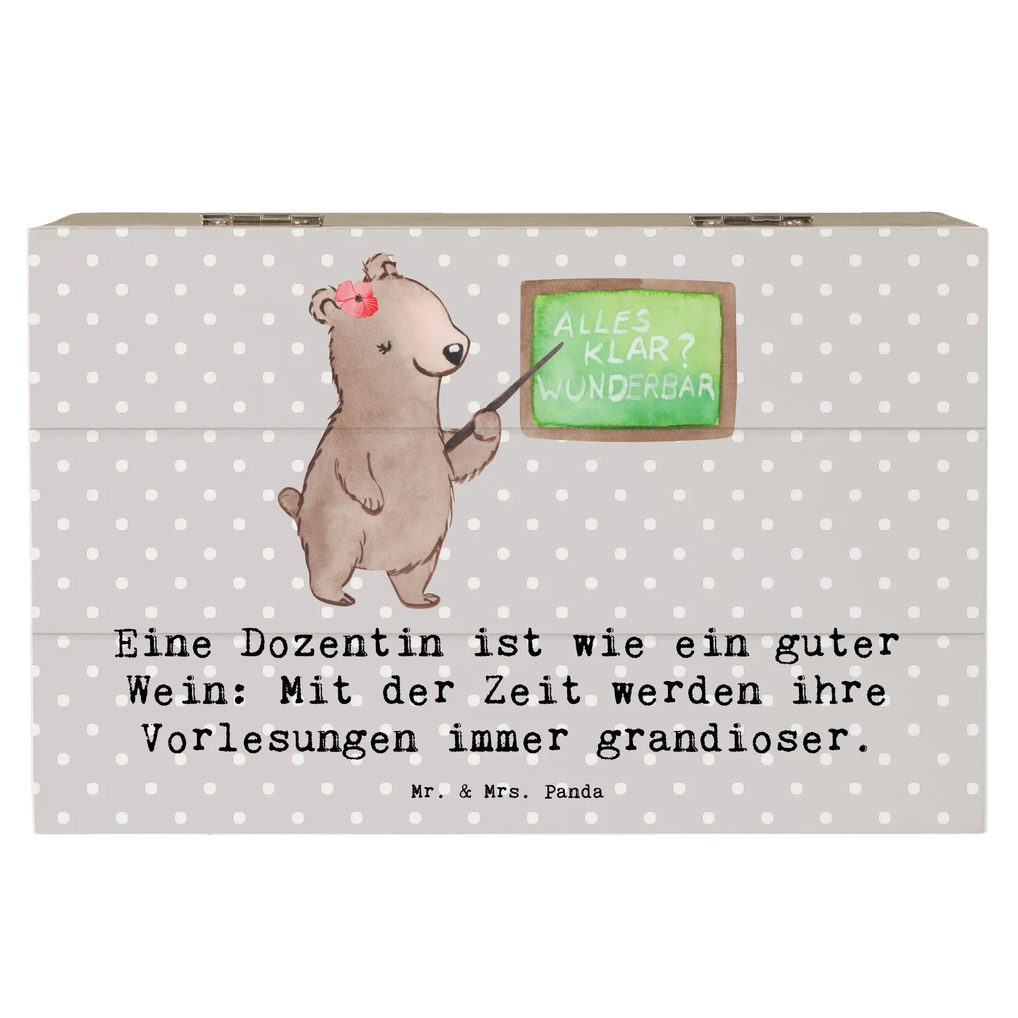 Holzkiste Eine Dozentin ist wie ein guter Wein: Mit der Zeit werden ihre Vorlesungen immer grandioser. - 22 x 15 cm - Grau Pastell
