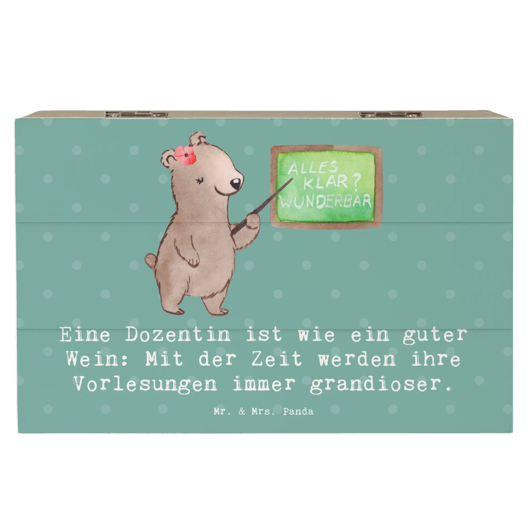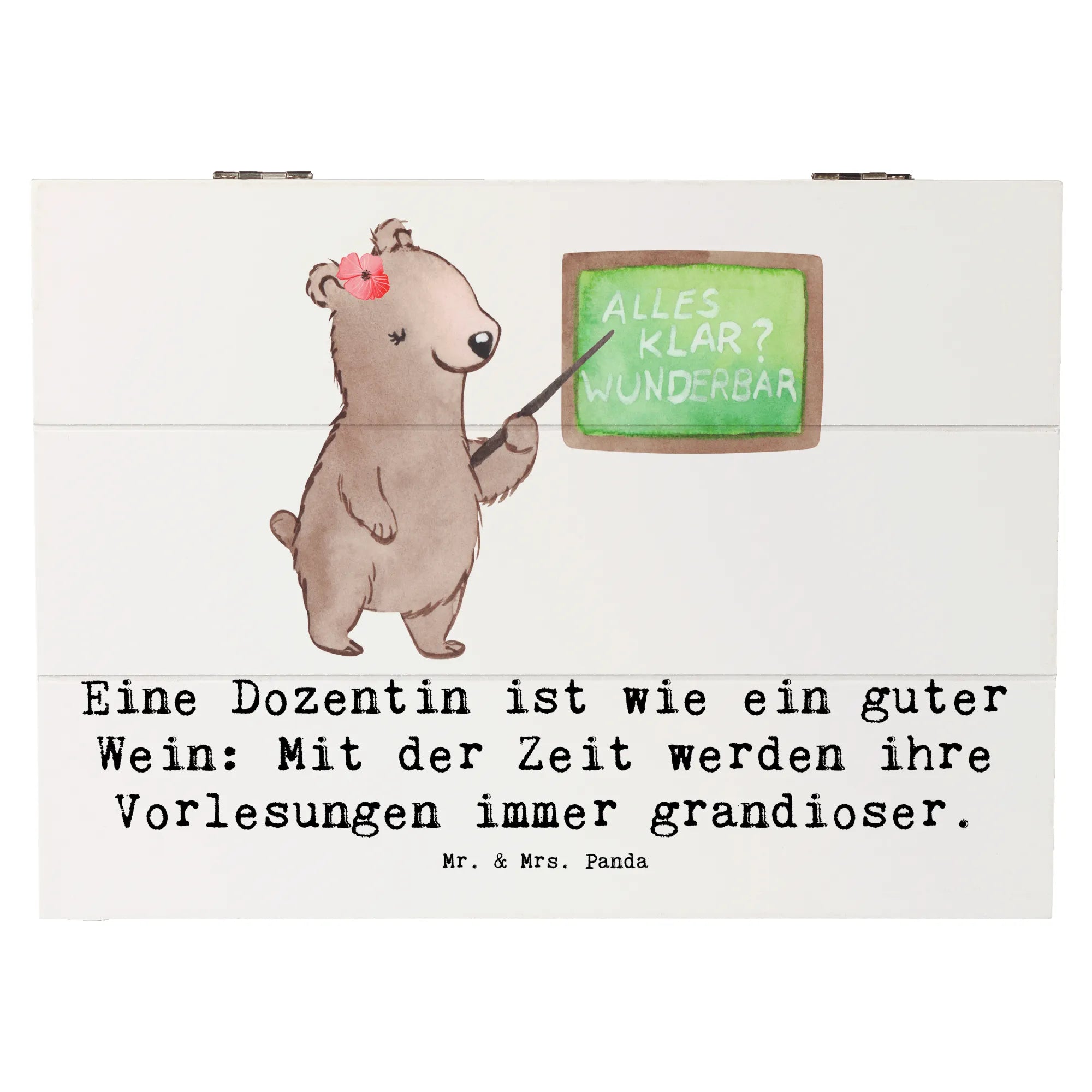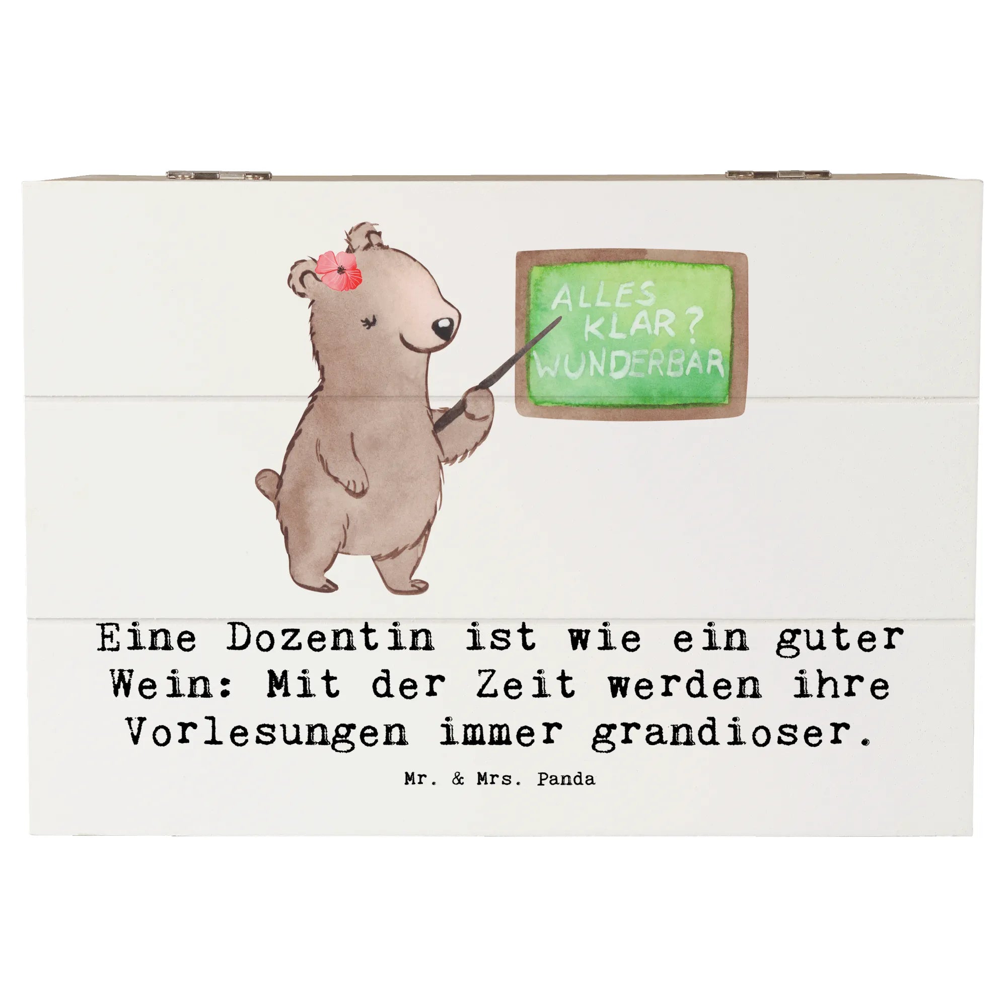 Suchst du das perfekte Geschenk für eine Dozentin oder vielleicht sogar für dich selbst? Die Holzkiste von Mr. & Mrs. Panda ist nicht nur ein wunderschönes Accessoire, sondern auch äußerst praktisch! Bedruckt mit dem liebevollen Spruch "Eine Dozentin ist wie ein guter Wein: Mit der Zeit werden ihre Vorlesungen immer grandioser." ist sie ein echter Hingucker.