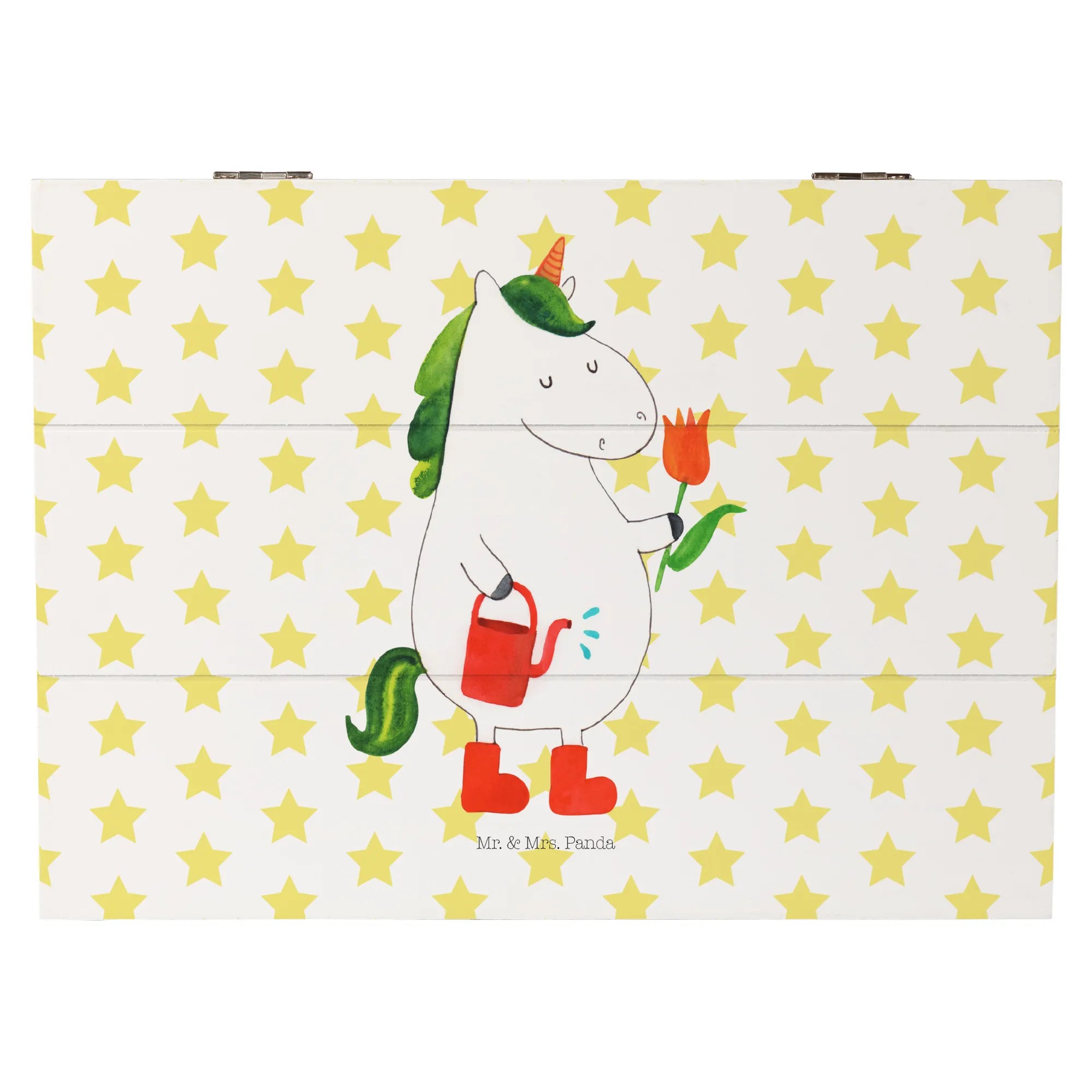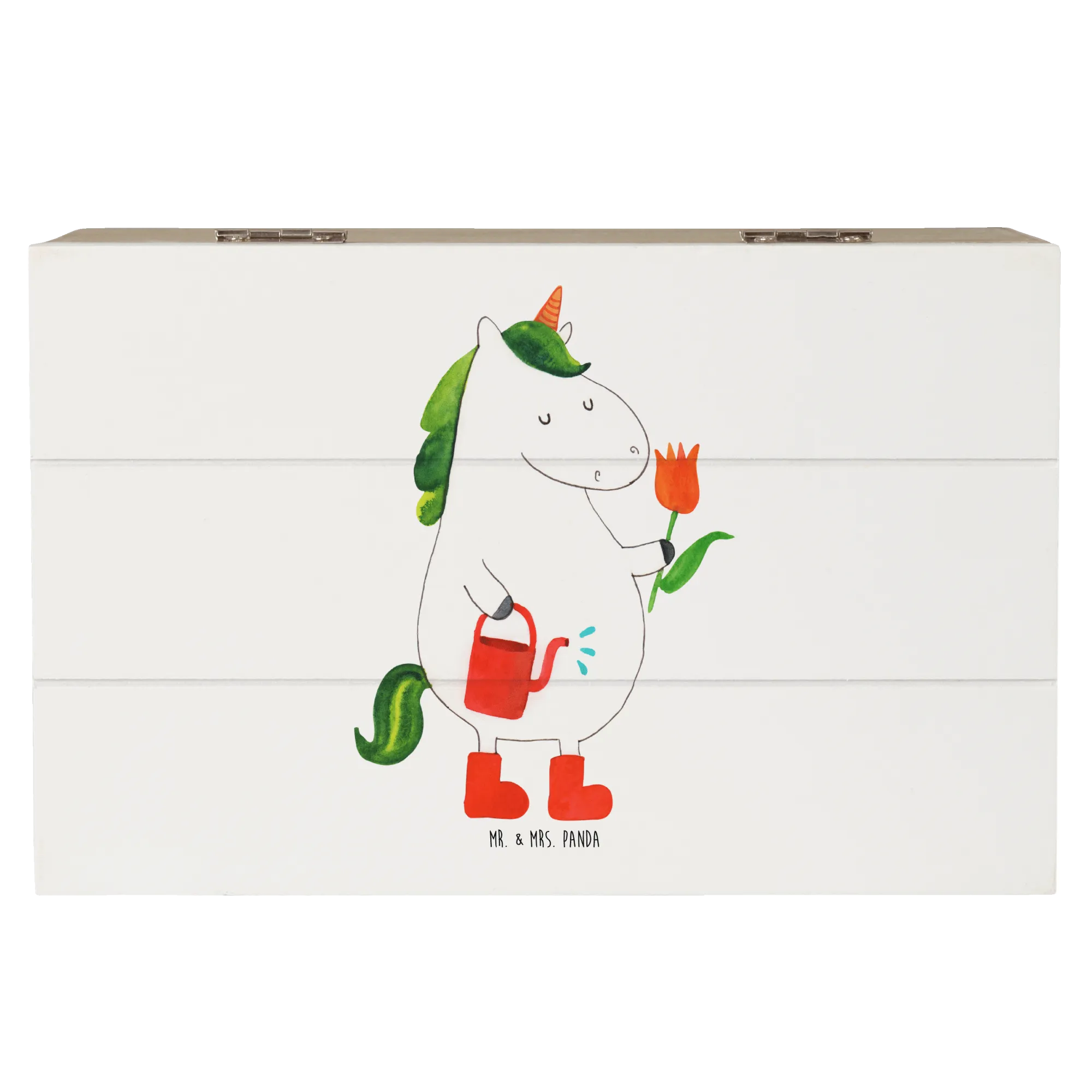 Die wundervolle Holzkiste mit dem bezaubernden Einhorn Gärtner Motiv von Mr. & Mrs. Panda ist das perfekte Geschenk für alle Einhorn-Fans und Gartenliebhaber!