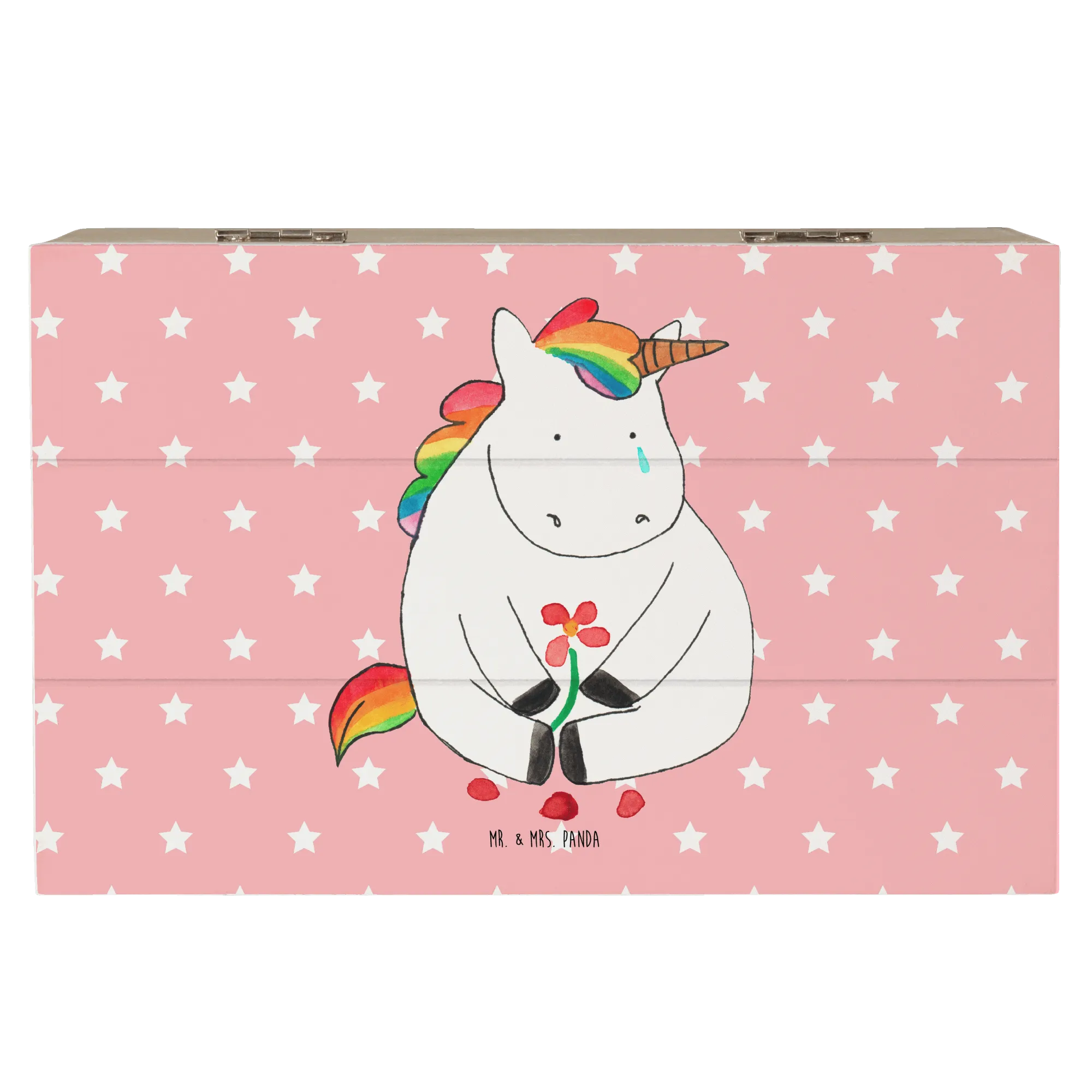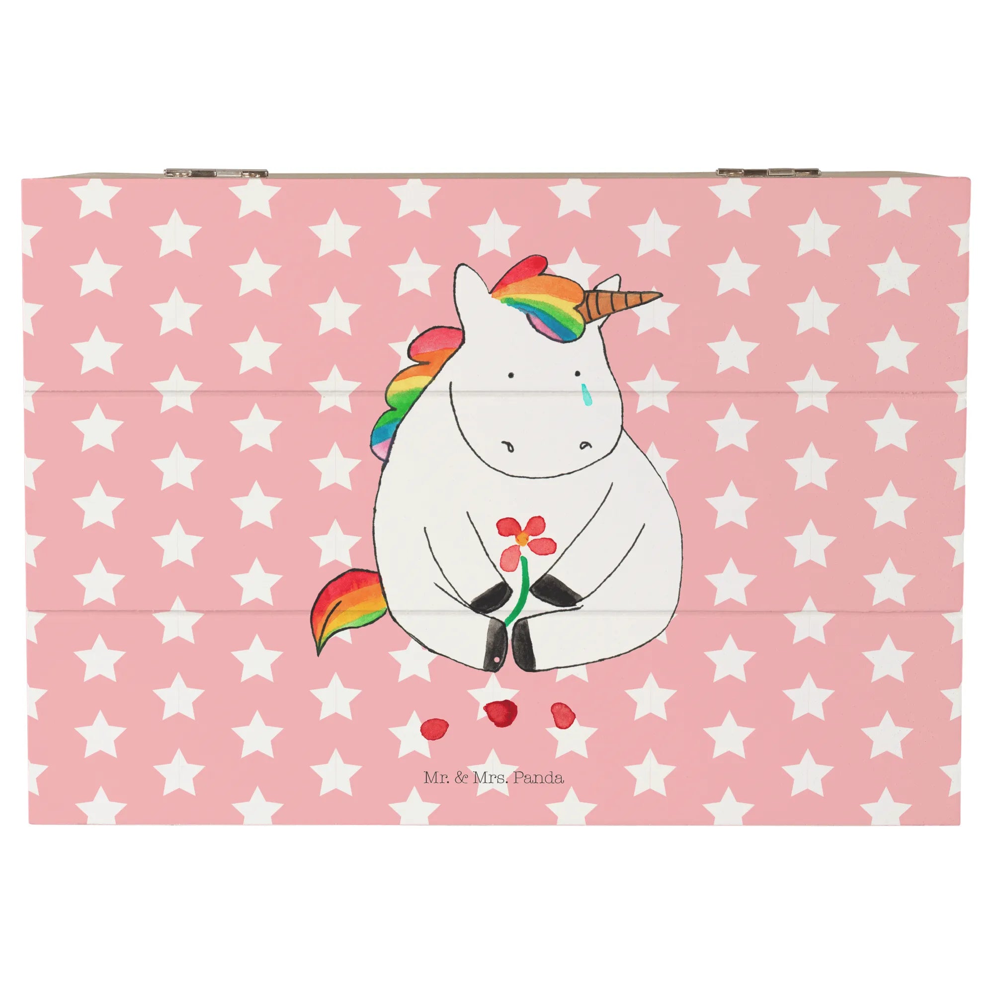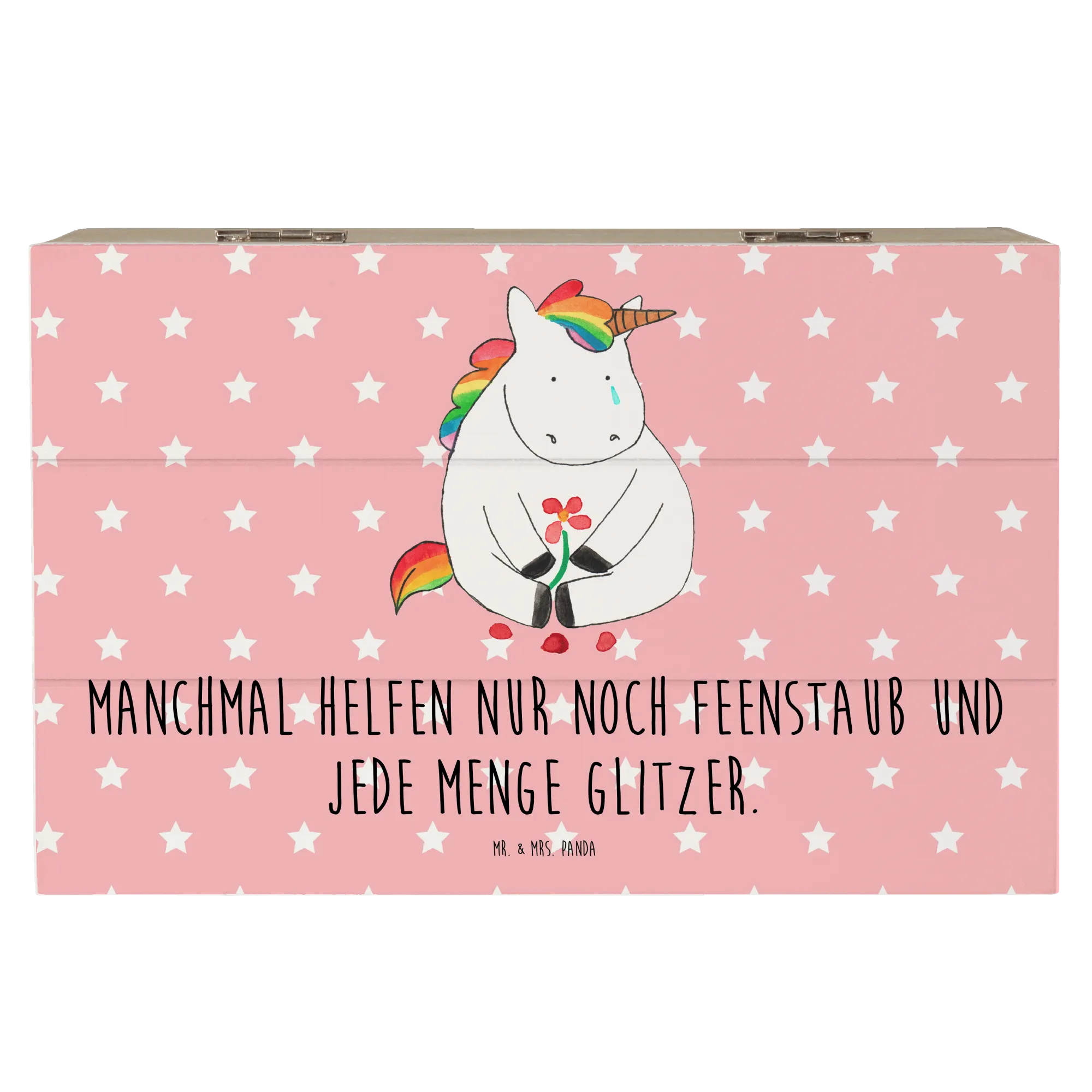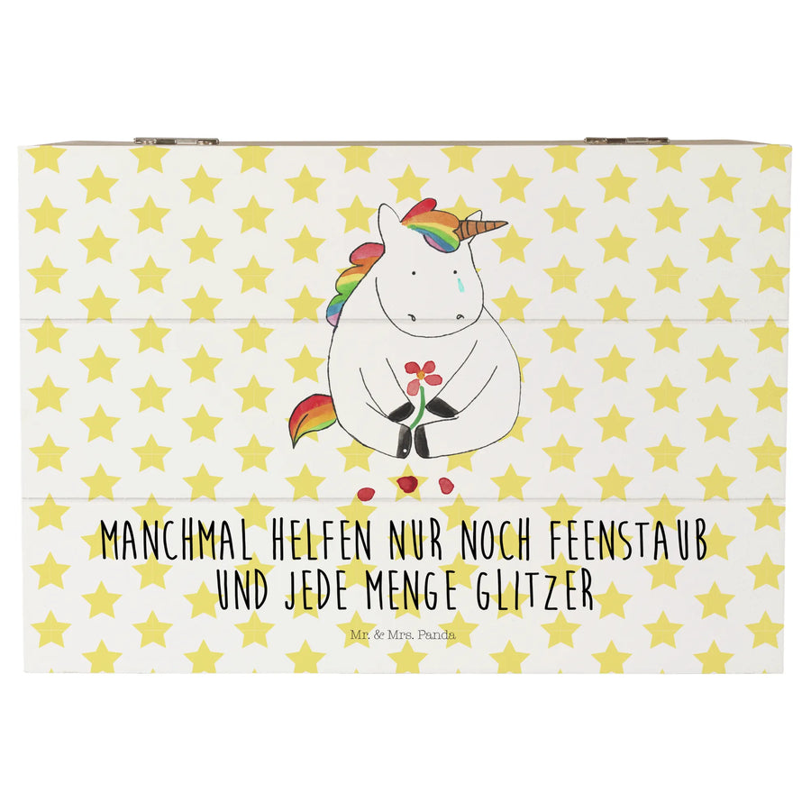 Du bist auf der Suche nach dem perfekten Geschenk für jemanden, der Einhörner liebt? Dann ist die wunderschöne Holzkiste "Einhorn Traurig" aus der Einhorn-Kollektion von Mr. & Mrs. Panda genau das Richtige! Mit ihrer zauberhaften Gestaltung ist sie nicht nur ein praktischer Aufbewahrungsort für deine Schätze, sondern auch ein echter Hingucker.