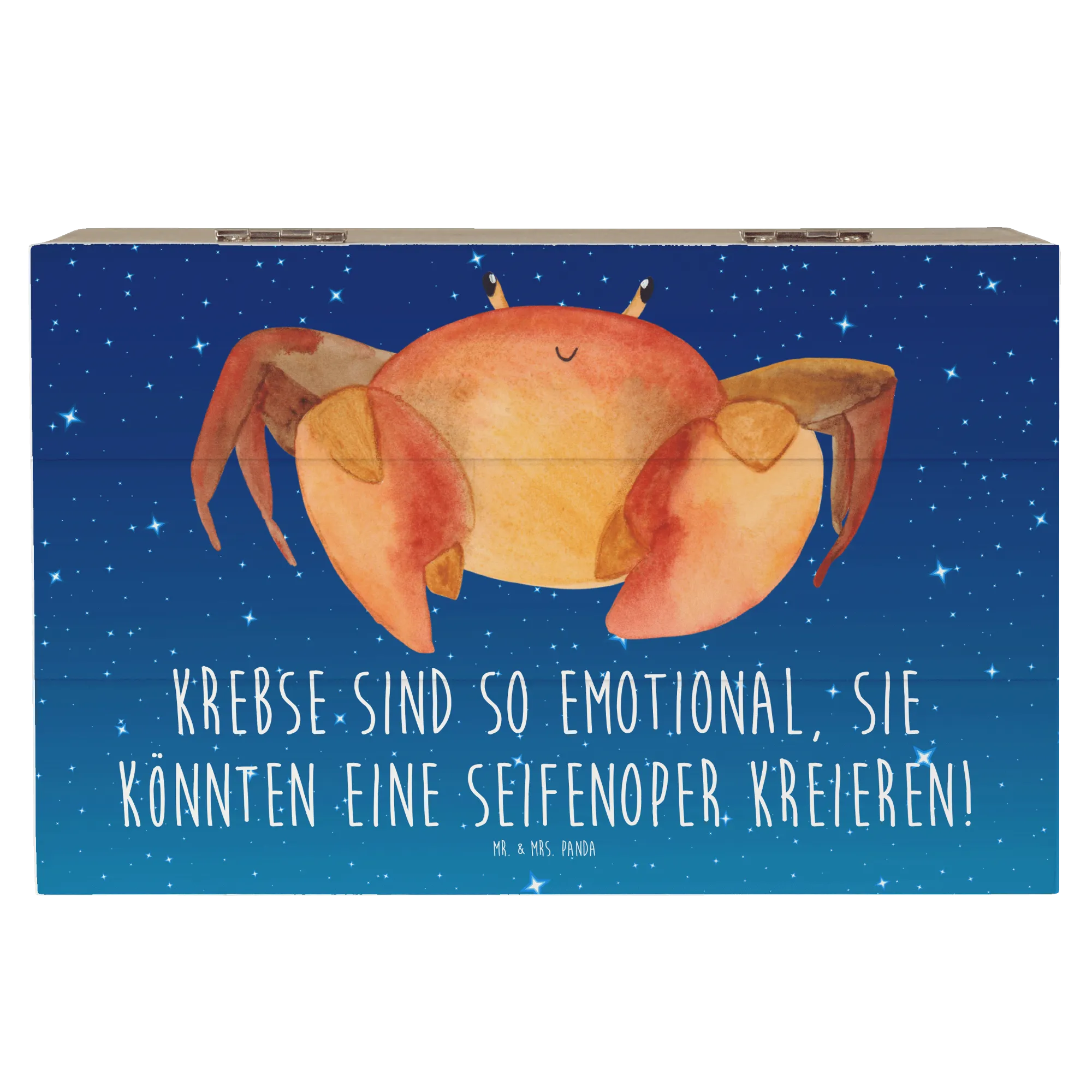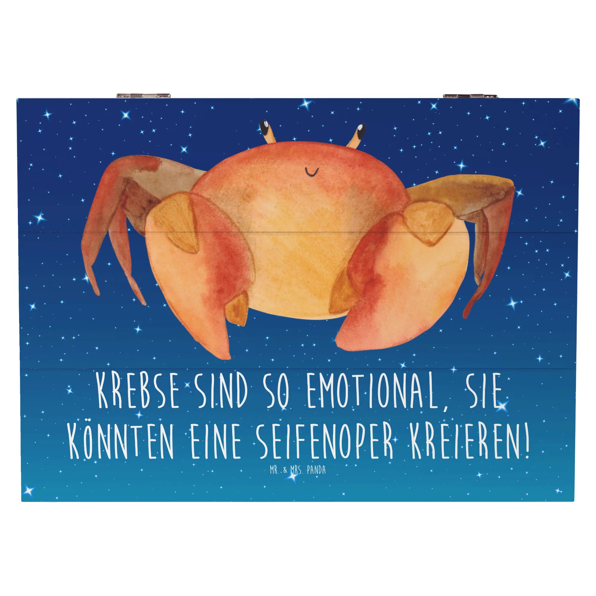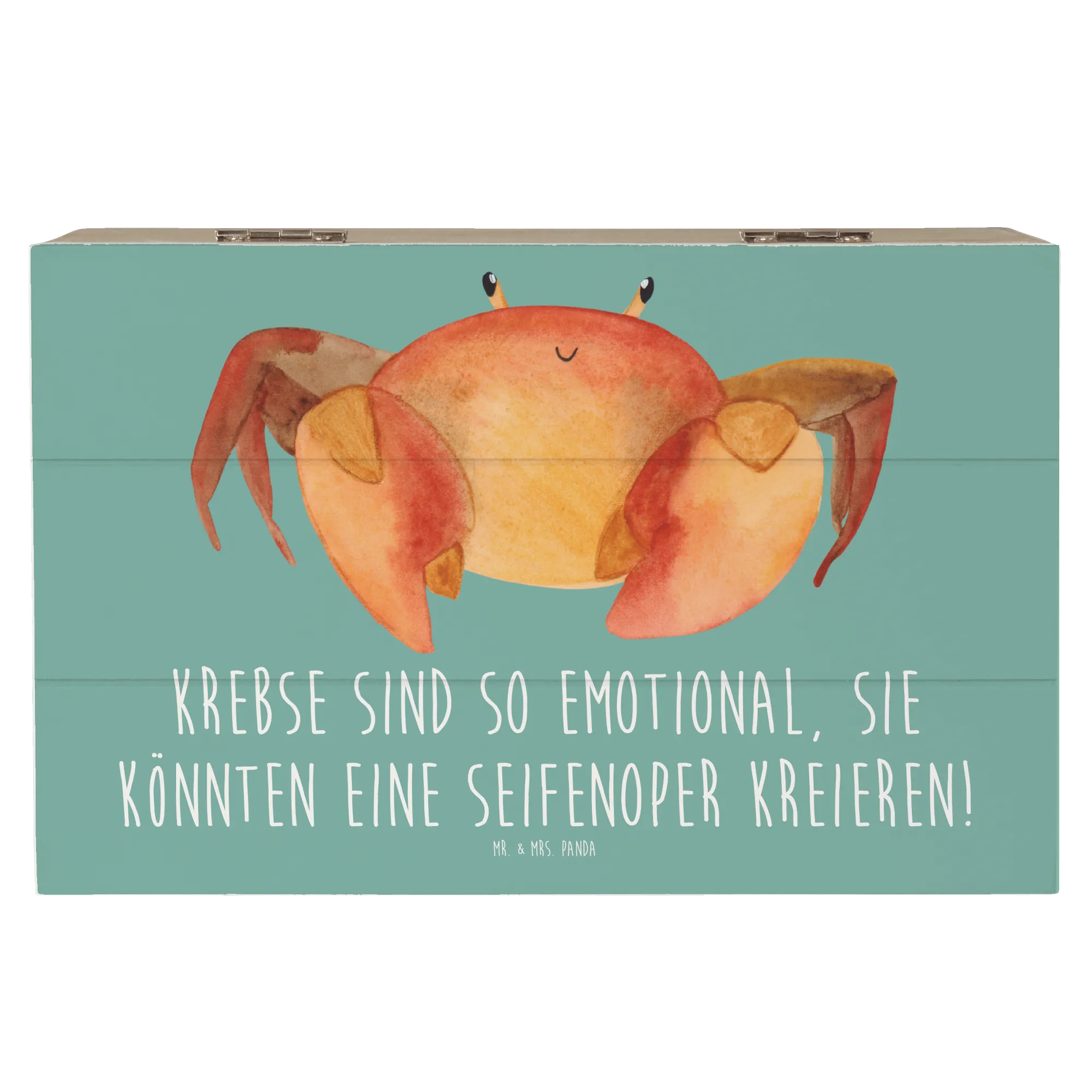 Die wunderschöne Holzkiste Krebs aus der Sternzeichen Kollektion von Mr. & Mrs. Panda ist das perfekte Geschenk für alle, die sich für Astrologie begeistern und ihre Emotionen lieben. Mit dem liebevoll handgezeichneten Krebsmotiv und dem witzigen Spruch "Krebse sind so emotional, sie könnten eine Seifenoper kreieren!" ist diese Kiste nicht nur ein praktischer Aufbewahrungsort, sondern auch ein echter Hingucker. Wenn du auf der Suche nach einem einzigartigen Geschenk für einen Krebsmenschen bist - sei es zum Geburtstag, zu Weihnachten oder einfach so, um jemandem eine Freude zu machen - dann ist diese Holzkiste genau das Richtige!