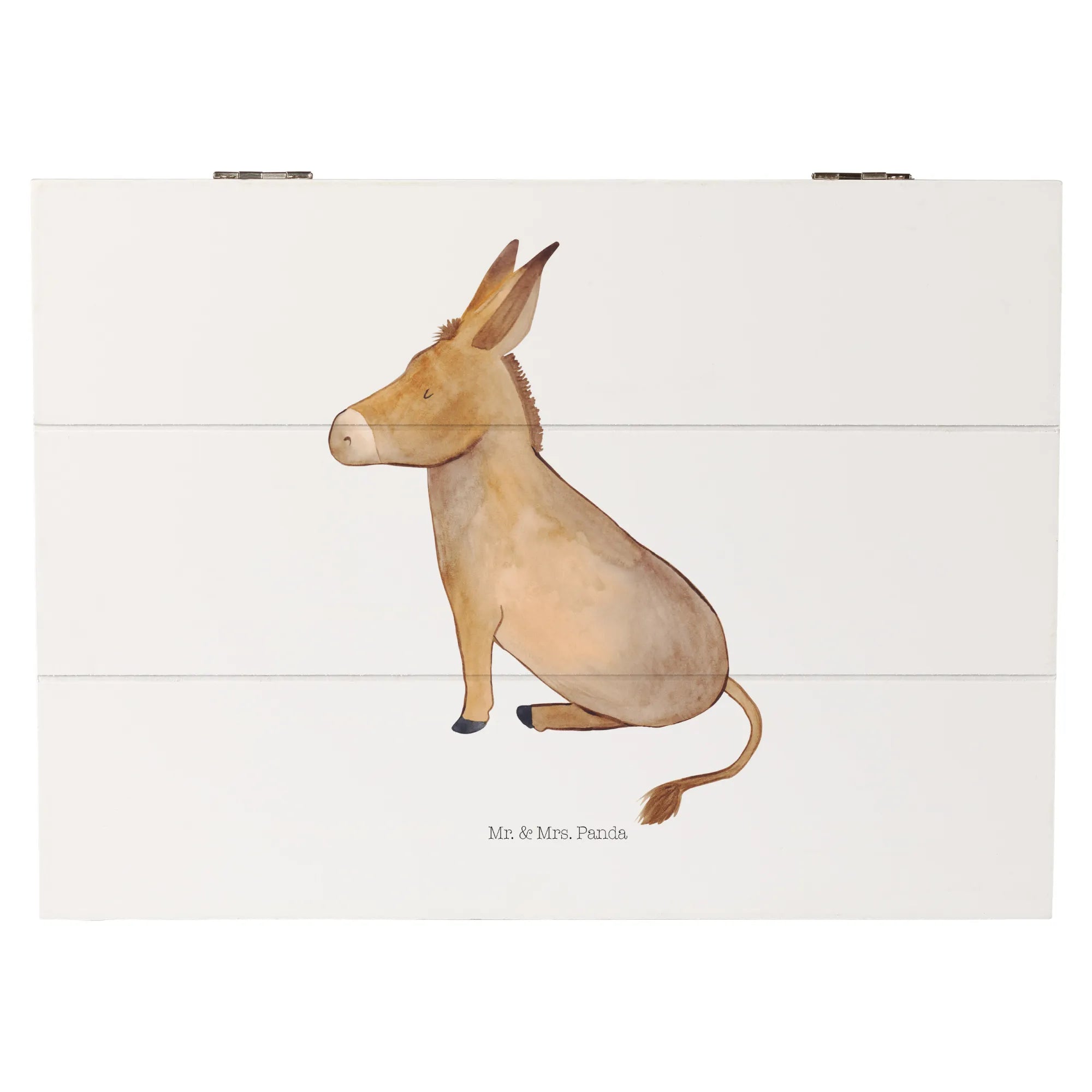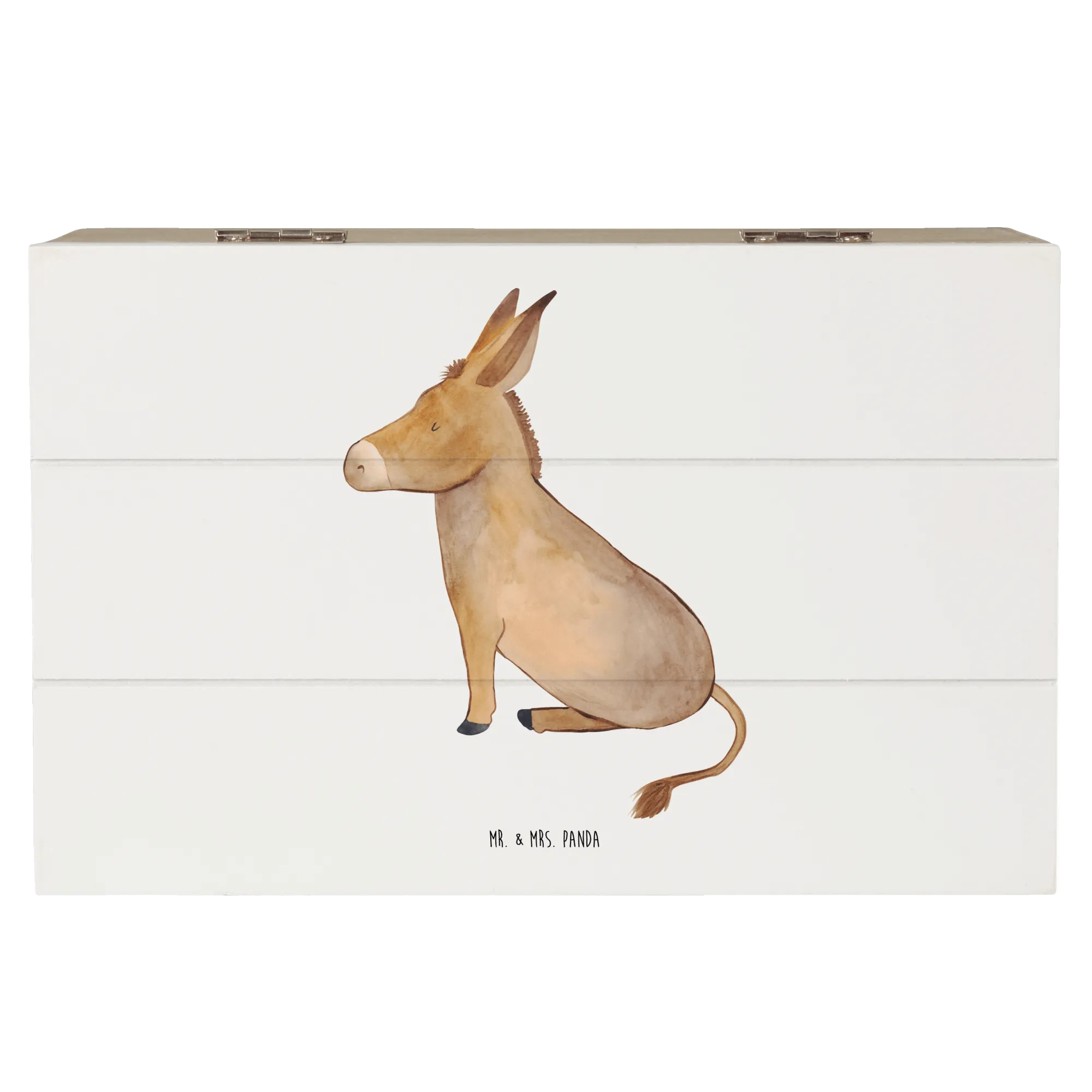 Suchst du nach einem originellen Geschenk, das Glück und Lebensfreude verströmt? Dann ist die Holzkiste mit dem Esel die perfekte Wahl! Sie eignet sich nicht nur hervorragend als Geschenkbox, sondern kann auch als stilvolle Dekoration in deinem Zuhause dienen. Zeige deinen Liebsten, wie viel sie dir bedeuten, indem du ihre Erinnerungen in dieser einzigartigen Kiste aufbewahrst. Und nicht zu vergessen: Diese Kiste ist nicht abschließbar, was sie zur idealen Aufbewahrungsbox macht – kreativ und funktional zugleich. Denke daran, sie hin und wieder mit einem feuchten Tuch abzuwischen, um sie in bestem Zustand zu halten. Lass die Magie der Erinnerungen beginnen mit unserer einzigartigen Holzkiste von Mr. & Mrs. Panda!