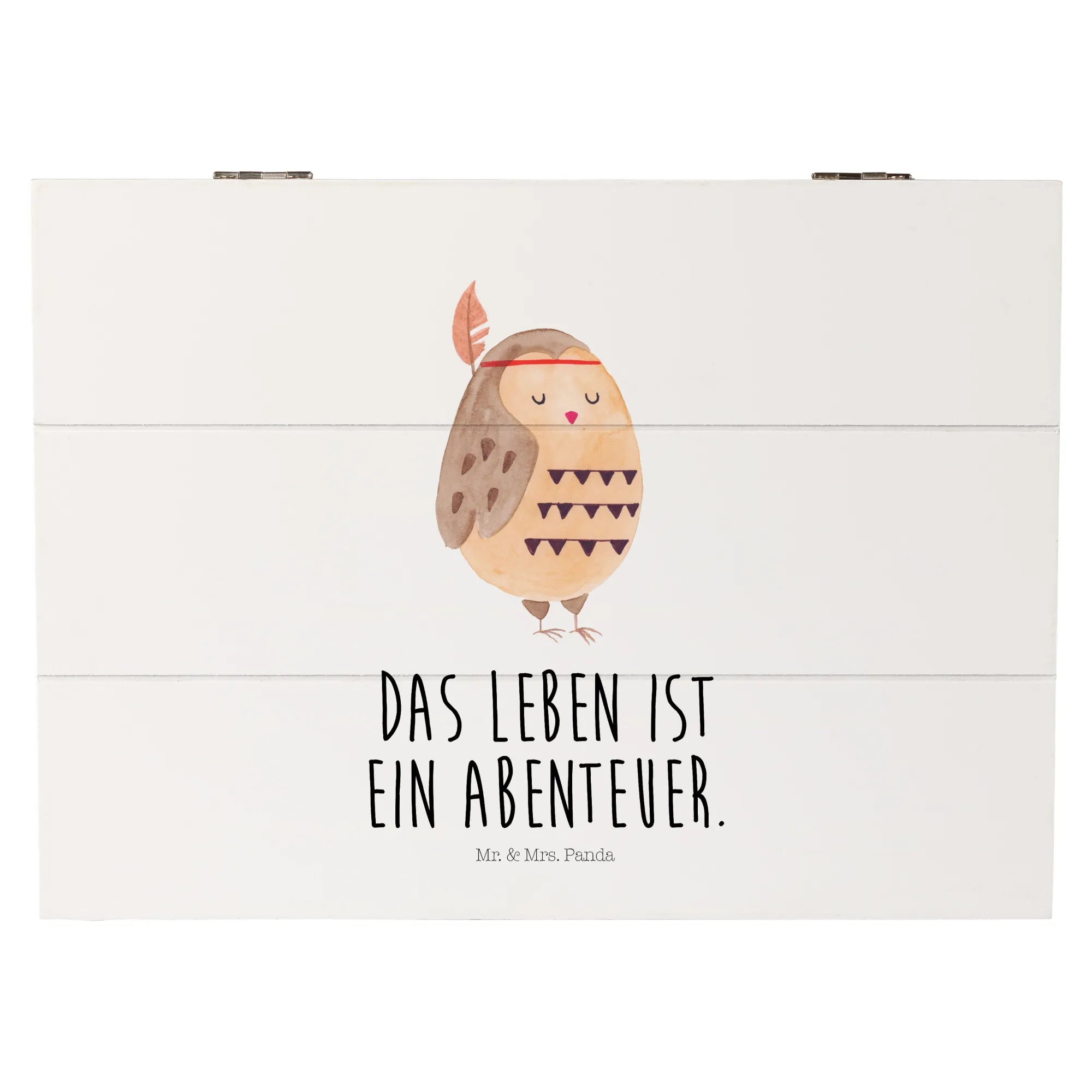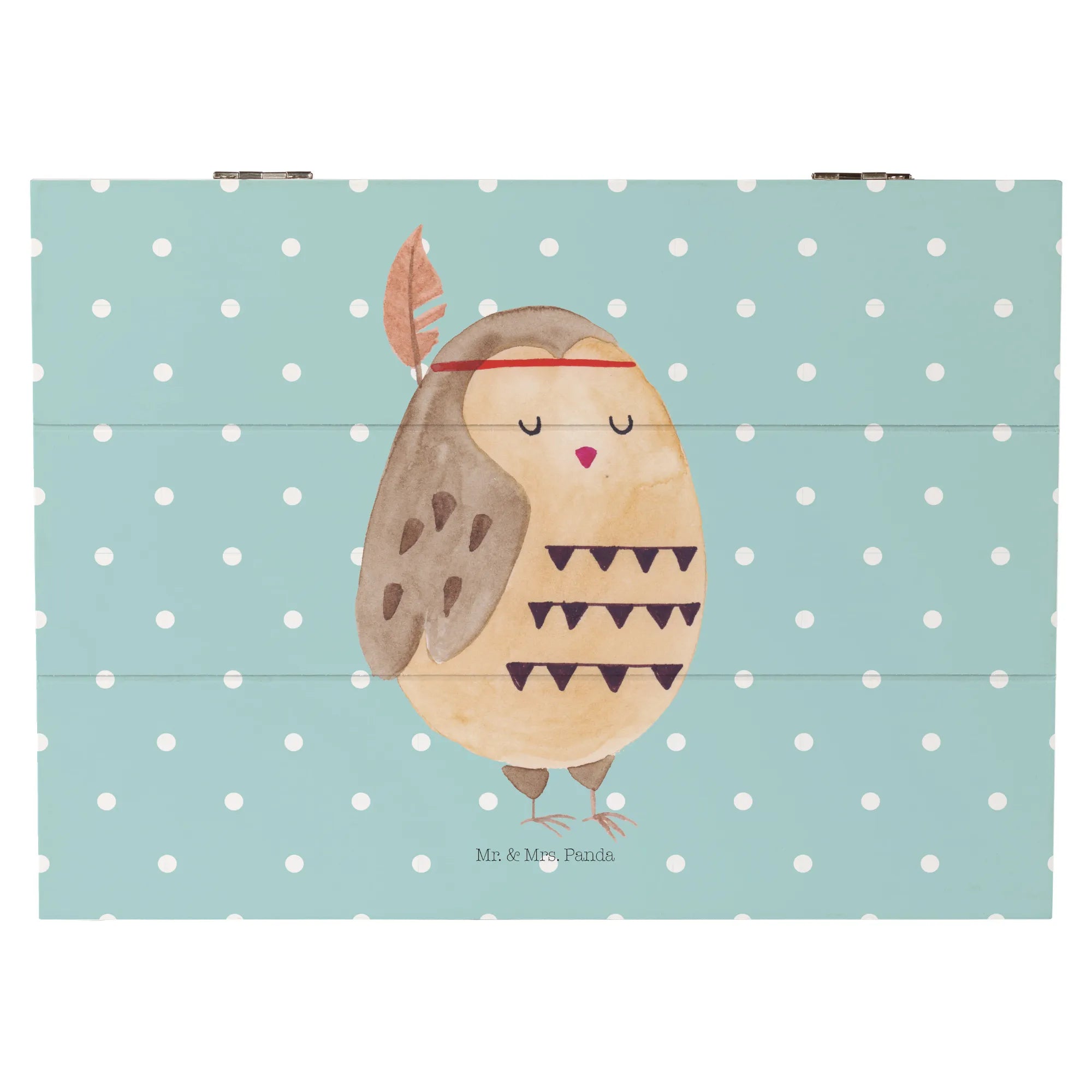 Die wunderschöne Holzkiste mit dem Motiv der Eule Federschmuck von Mr. & Mrs. Panda ist der perfekte Aufbewahrungsort für all deine wertvollen Schätze!