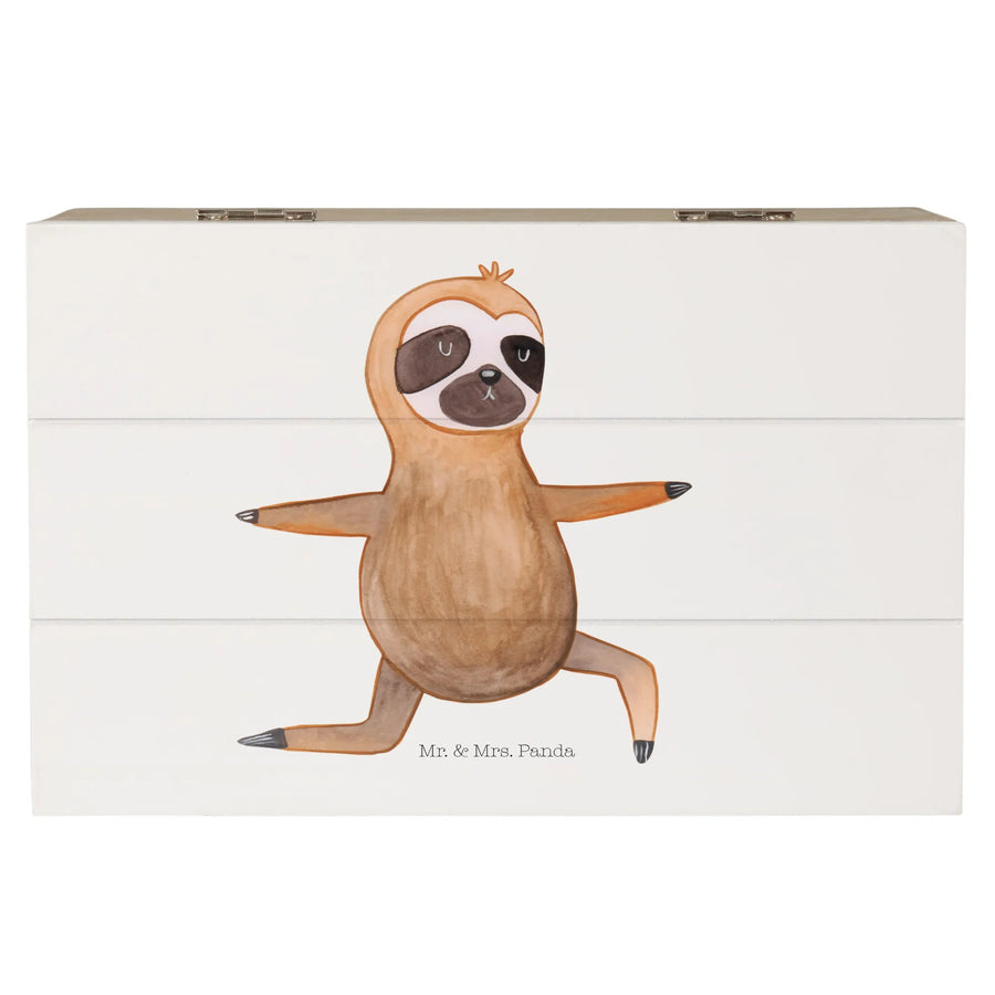 Die Holzkiste aus der Faultier - Kollektion von Mr. & Mrs. Panda bringt Ruhe ins Zuhause. Das friedliche Faultier in der Krieger-Pose ist eine liebevolle Erinnerung daran, sich Zeit für Entspannung und Achtsamkeit zu nehmen. Ideal als Erinnerungskiste, Geschenkbox oder dekorative Aufbewahrungsbox.