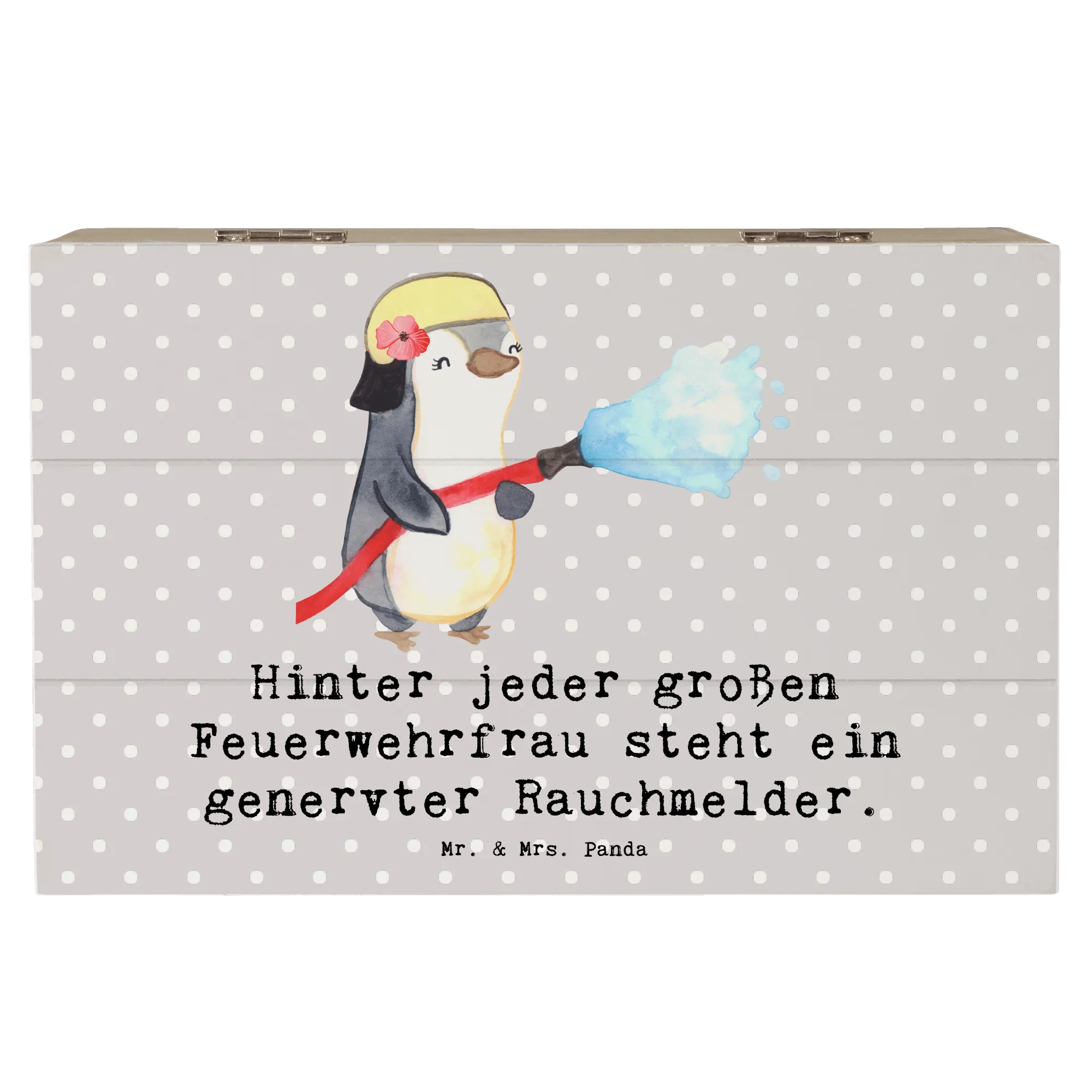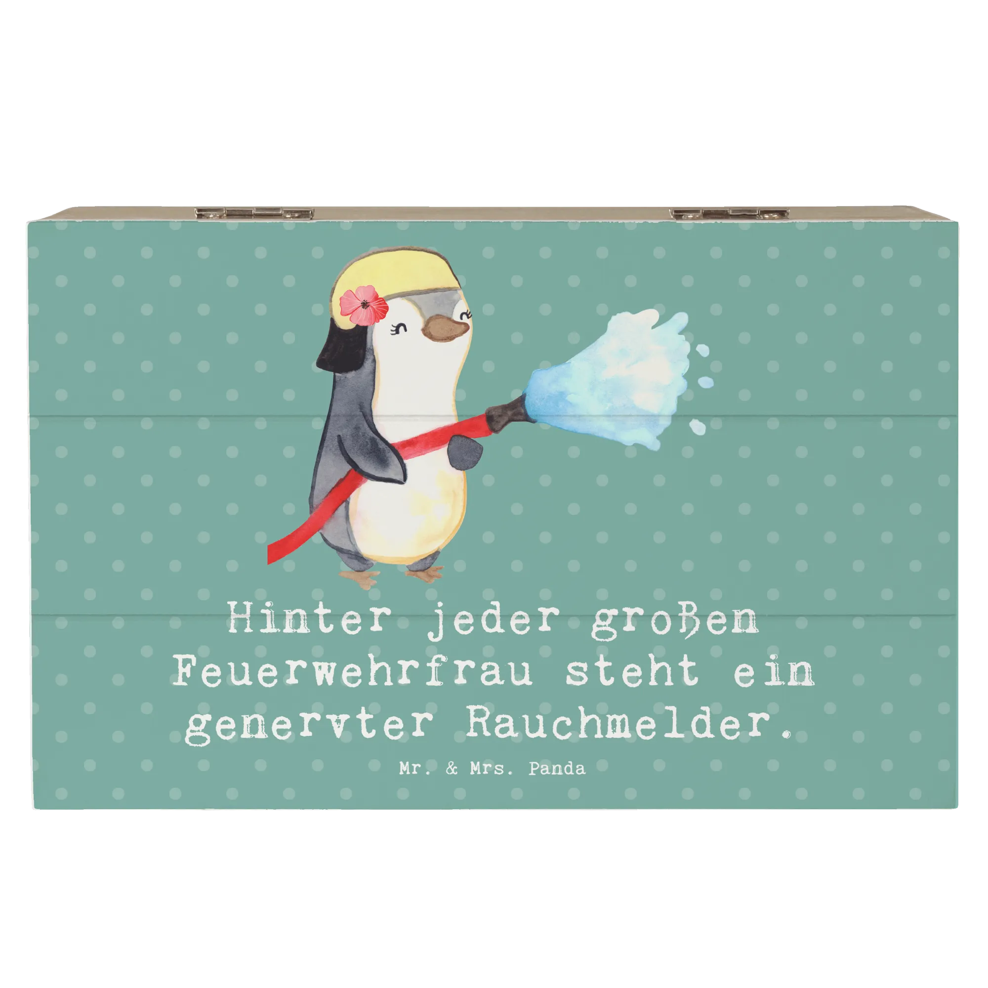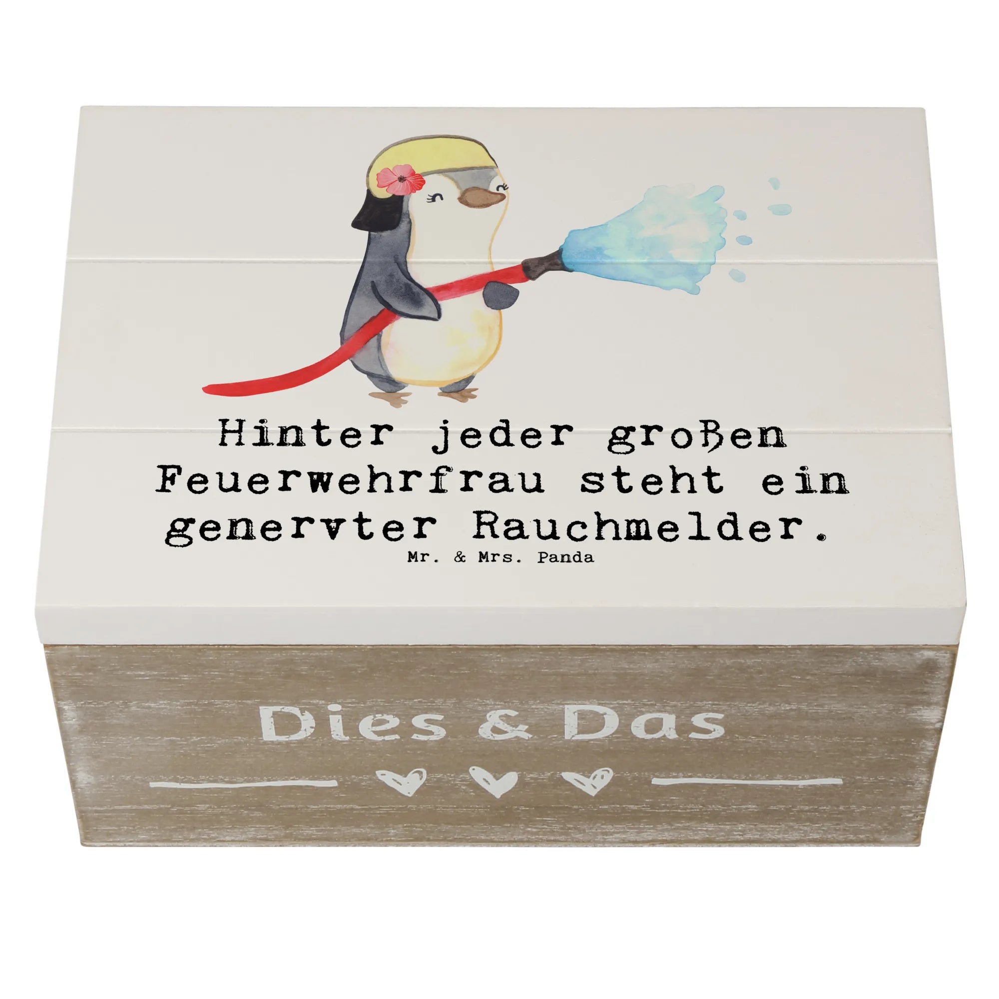 Ab sofort musst Du Dir keine Gedanken mehr machen, wo Du die kleinen Kostbarkeiten aufbewahren möchtest. Mit dieser Holzkiste hast Du einen wundervollen Aufbewahrungsort gefunden! Wenn du auf der Suche nach einem besonderen Geschenk für eine Feuerwehrfrau bist, dann ist diese Kiste genau das Richtige. Perfekt für Geburtstage, Berufsjubiläen oder einfach, um jemandem eine Freude zu machen. Entdecke die kreative Berufe-Kollektion von Mr. & Mrs. Panda und finde das ideale Geschenk für jeden Anlass! Egal ob für Dich selbst oder als besonderes Präsent für einen lieben Menschen, mache jeden Moment unvergesslich mit dieser einzigartigen Holzkiste!