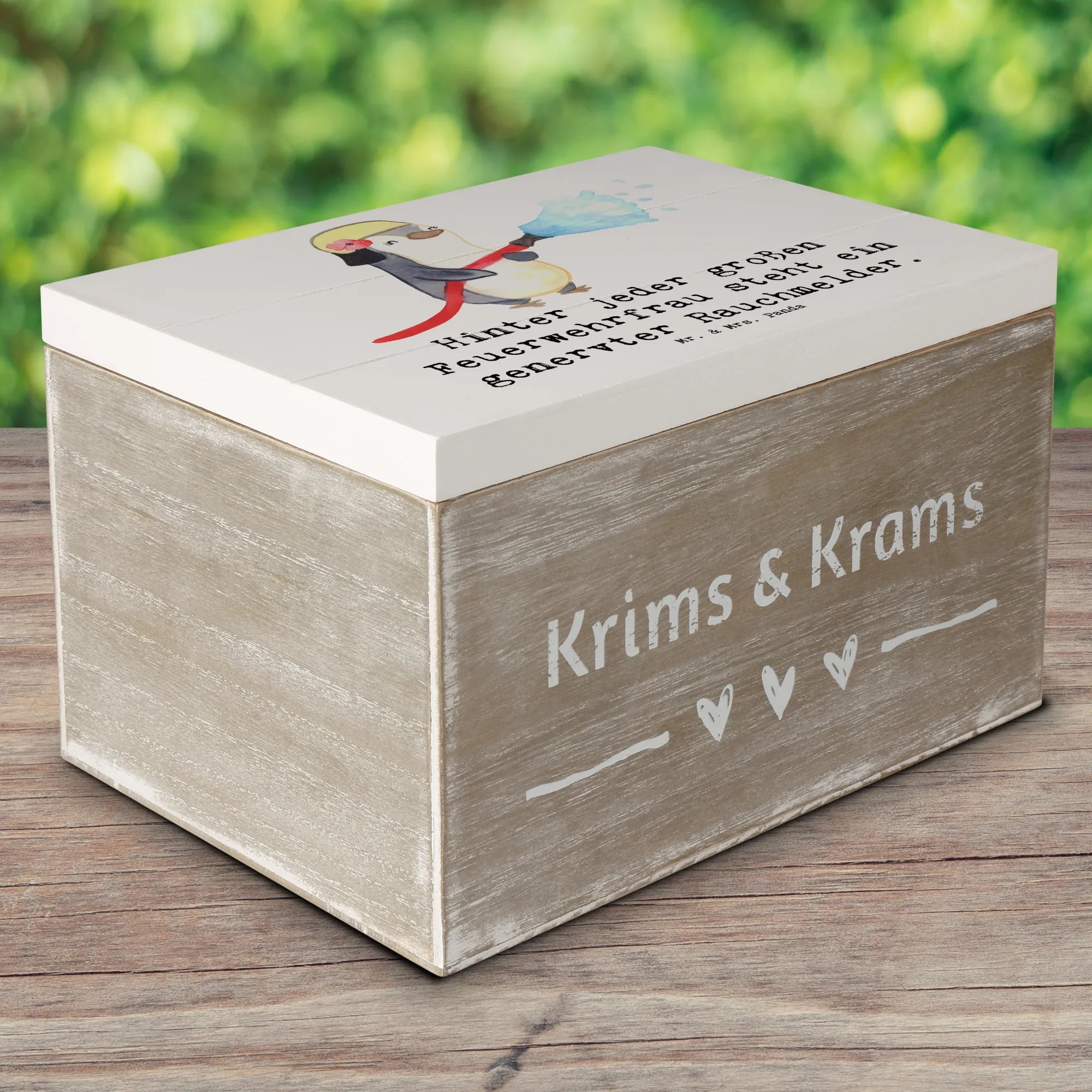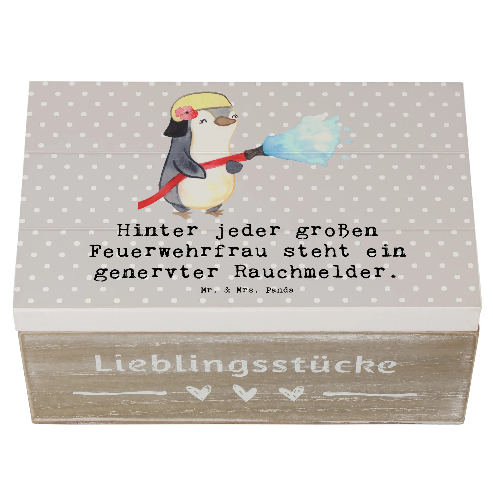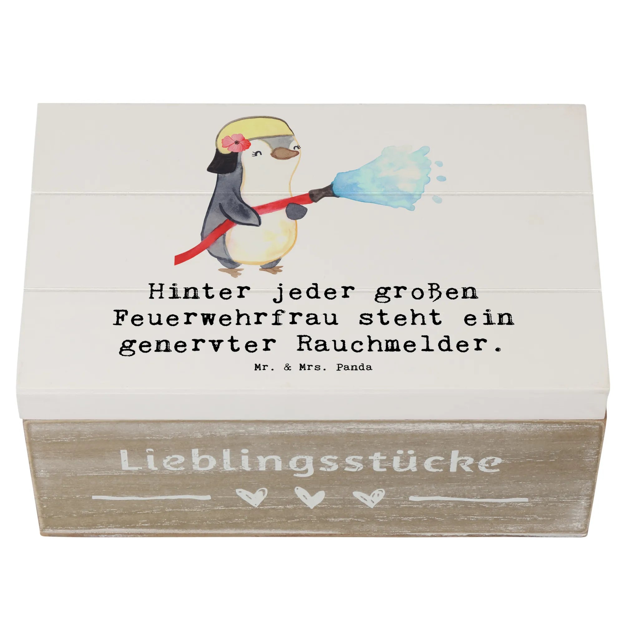 Schenke Wertschätzung, Humor und ein schönes Zuhause für Erinnerungen: die Holzkiste Feuerwehrfrau von Mr. & Mrs. Panda – ein kleines Kunstwerk für große Gesten.