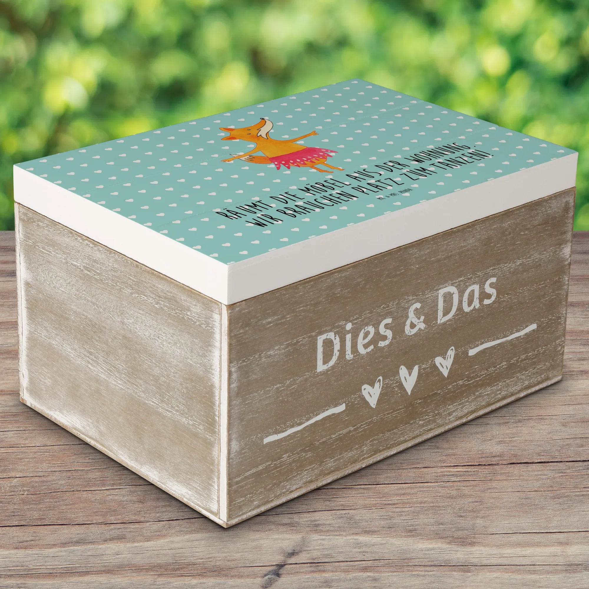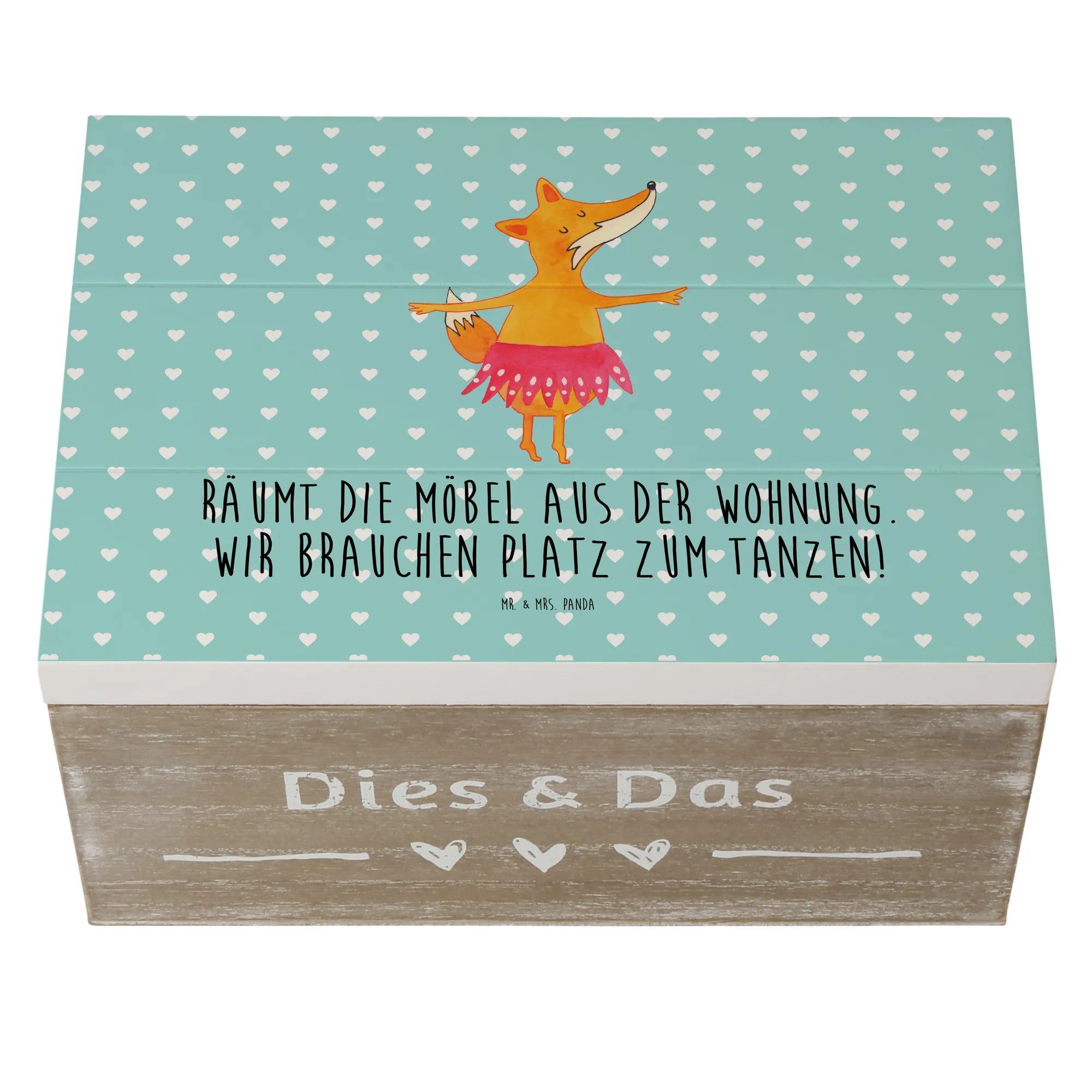 Die wunderschöne Holzkiste mit dem zauberhaften Fuchs Ballerina Motiv von Mr. & Mrs. Panda ist das perfekte Geschenk für kleine Tänzerinnen und Tanzliebhaber! Mit ihrem liebevoll gestalteten Design und dem inspirierenden Spruch "Räumt die Möbel aus der Wohnung. Wir brauchen Platz zum Tanzen!" bringt sie nicht nur Freude, sondern auch eine Portion Leichtigkeit in jeden Raum. Egal, ob zur Geburtstagsfeier, zur Kommunion, zur Konfirmation oder einfach nur als kleine Aufmerksamkeit - diese Erinnerungskiste ist immer eine gute Wahl!