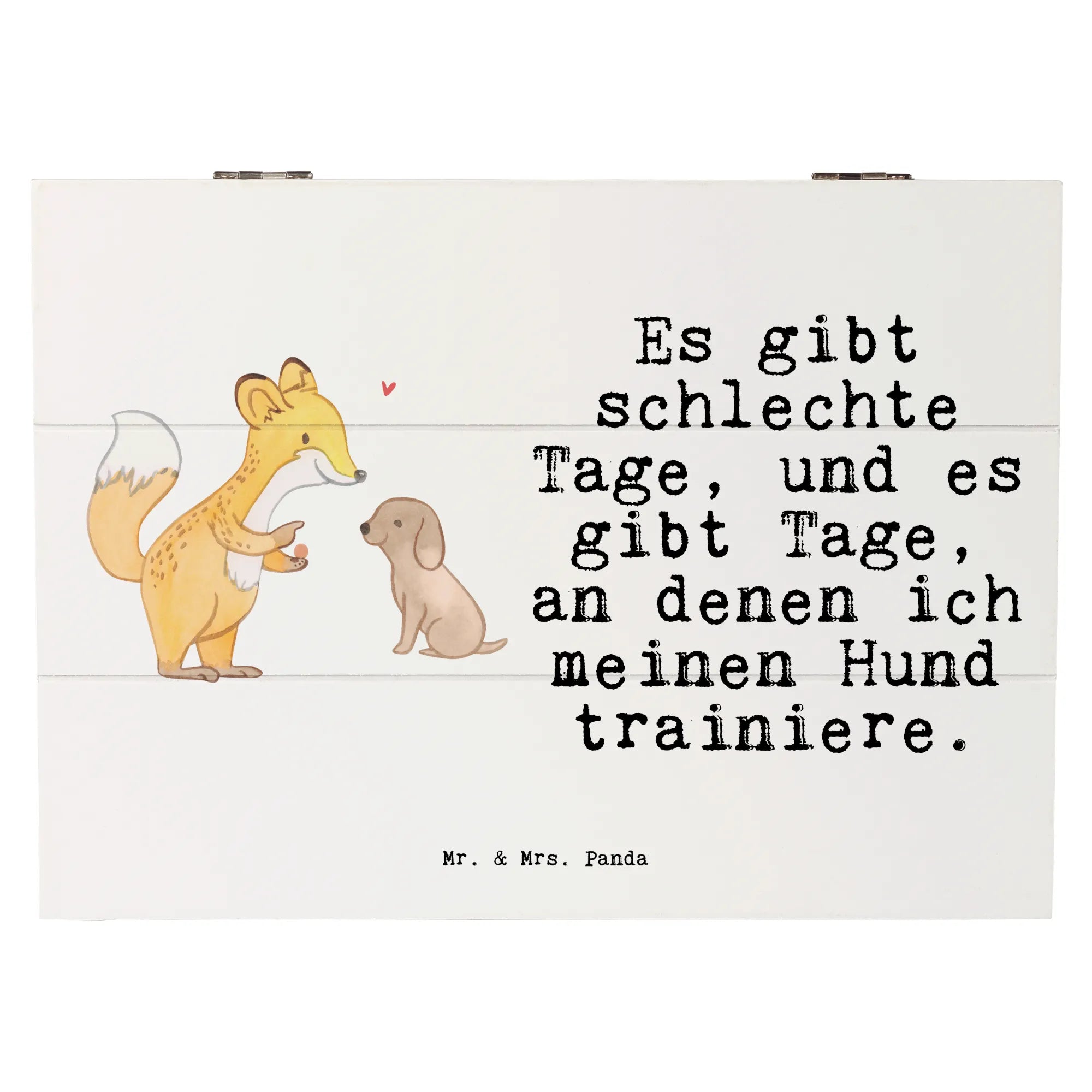 Die wunderschöne Holzkiste mit dem niedlichen Motive Fuchs Hundetraining Tage von Mr. & Mrs. Panda ist der perfekte Begleiter für alle Hundeliebhaber und ganz besonders für die, die gerne Zeit in der Hundeschule verbringen oder intensiv mit ihren Welpen trainieren! Diese praktische Erinnerungsbox ist nicht nur ein Aufbewahrungsort für all die kleinen Schätze, die Du während Deines Hundetrainings sammelst, sondern auch eine stilvolle Dekokiste, die in jedem Raum eine tolle Figur macht.