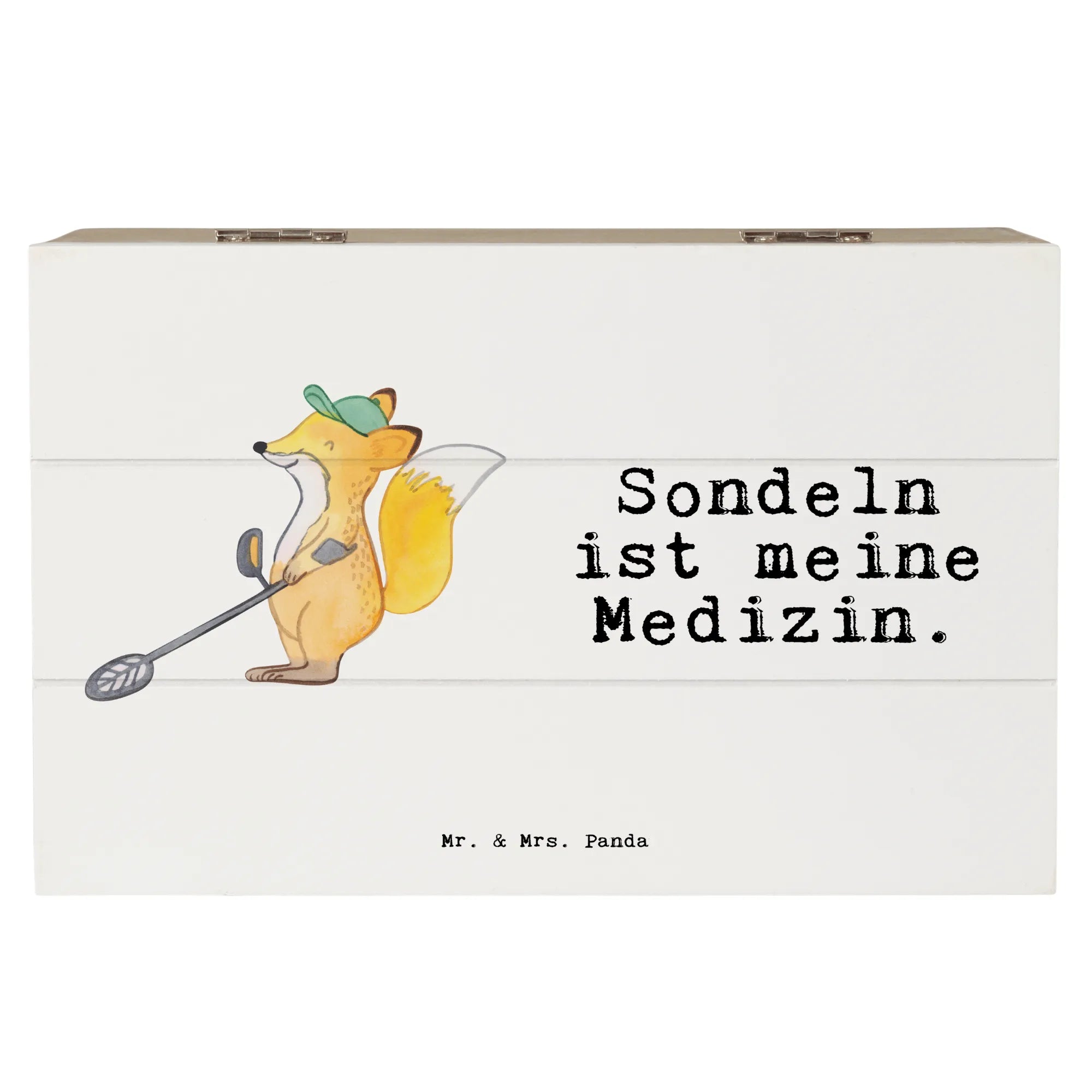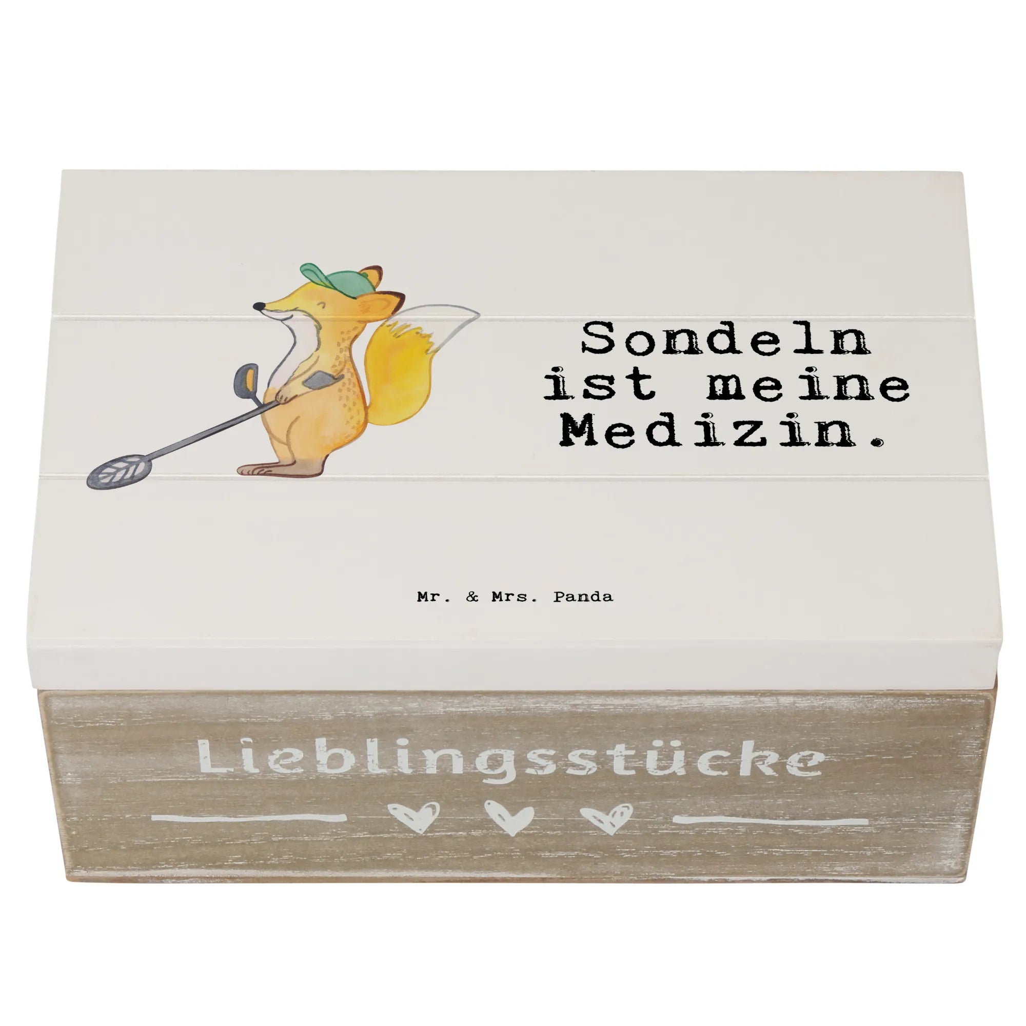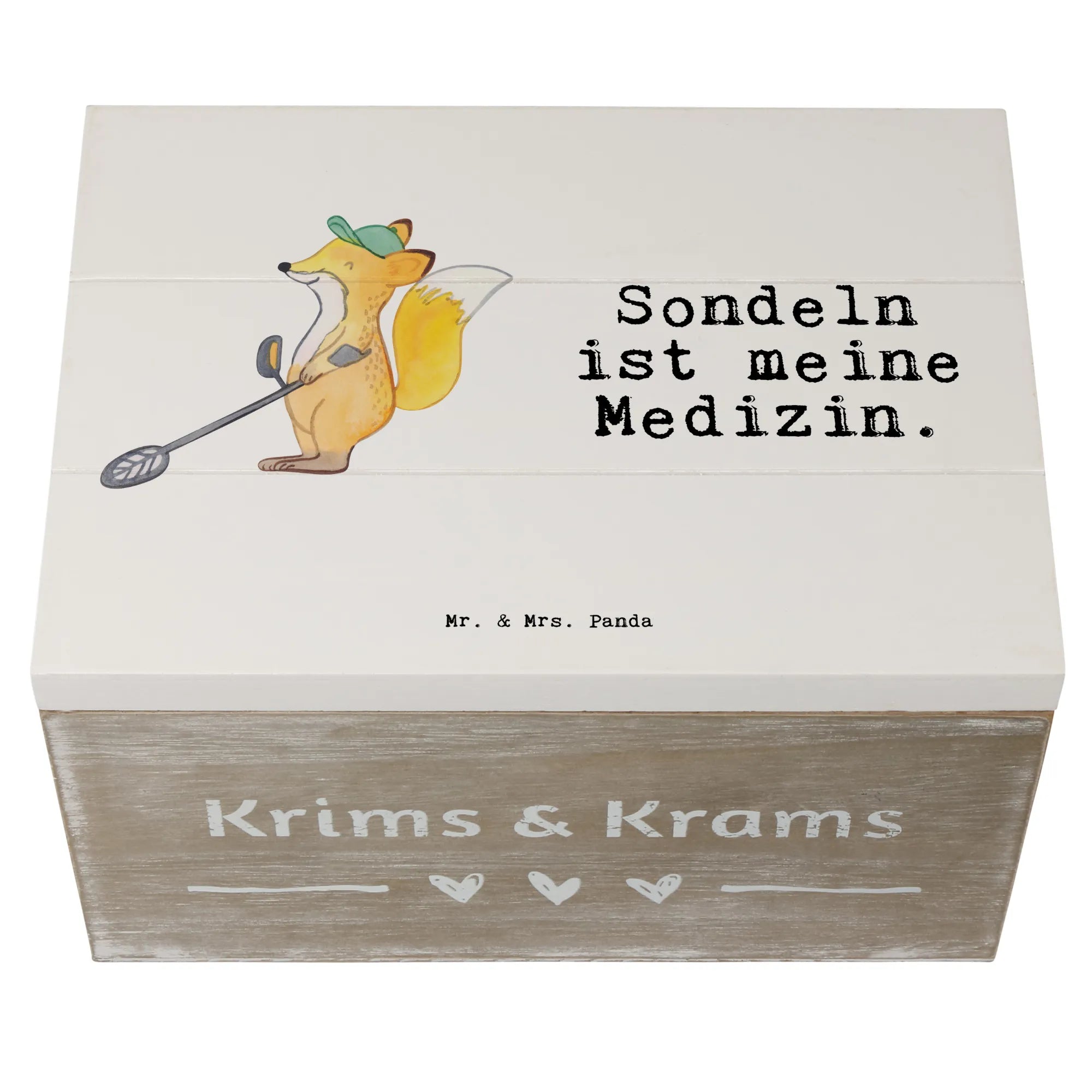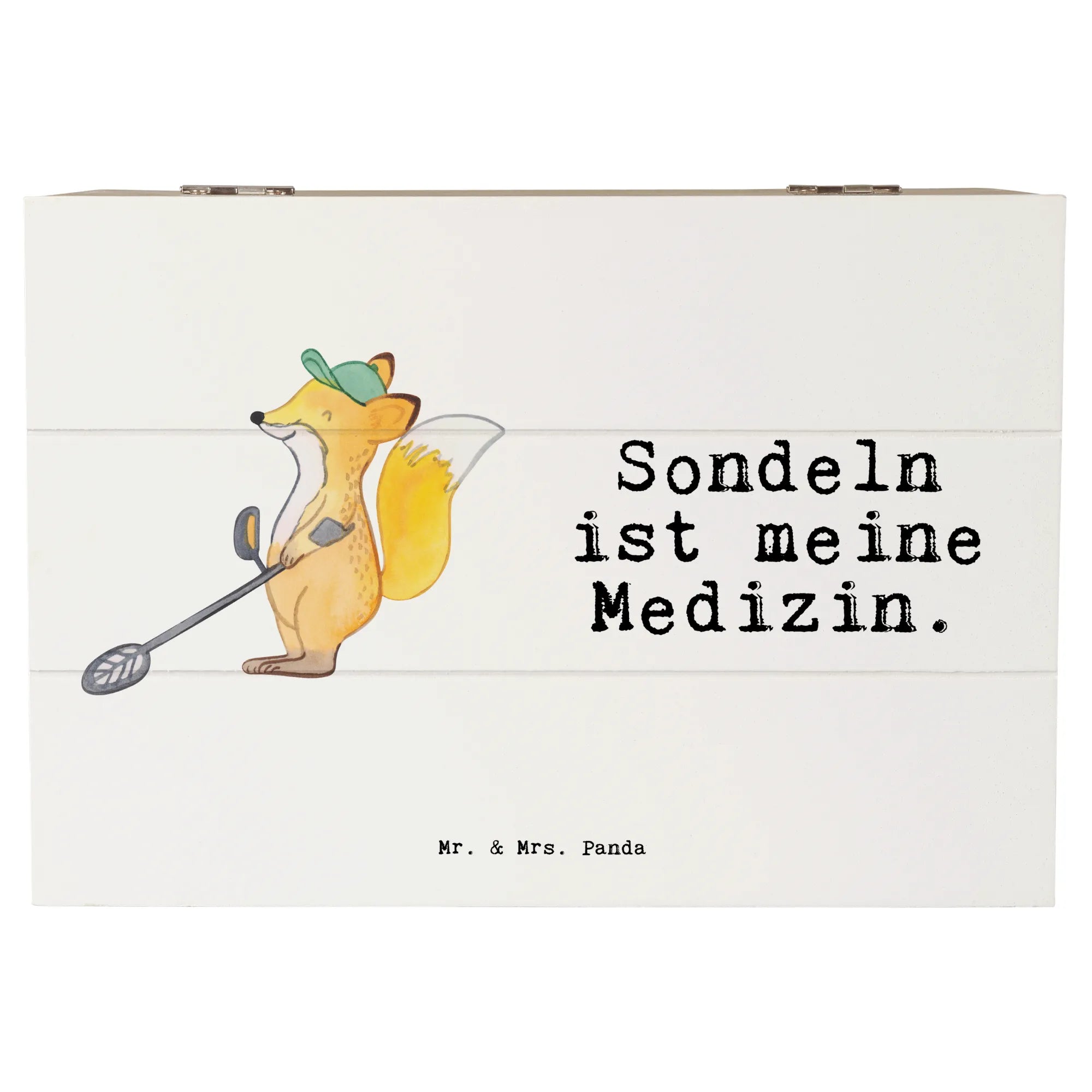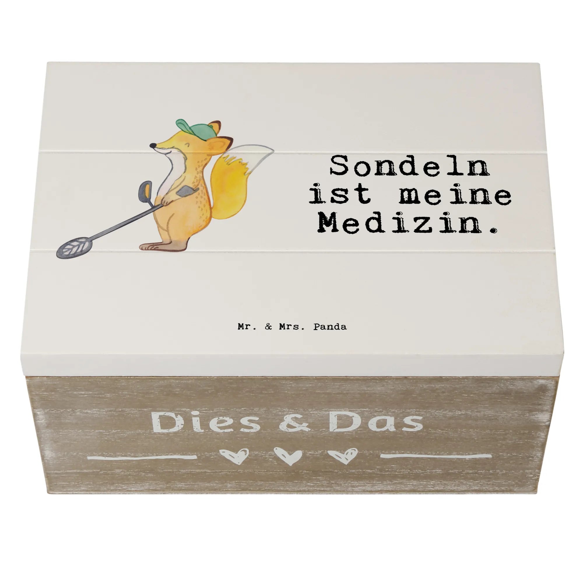Die robuste Holzfaser sorgt dafür, dass die Kiste sowohl stabil als auch langlebig ist und ist gleichzeitig licht- und feuchtigkeitssensitiv. Das liebevolle Motiv zeigt einen Fuchs, der mit einem Metalldetektor auf Schatzsuche geht. Der Slogan "Sondeln ist meine Medizin" bringt die Leidenschaft für dieses Hobby perfekt zum Ausdruck.