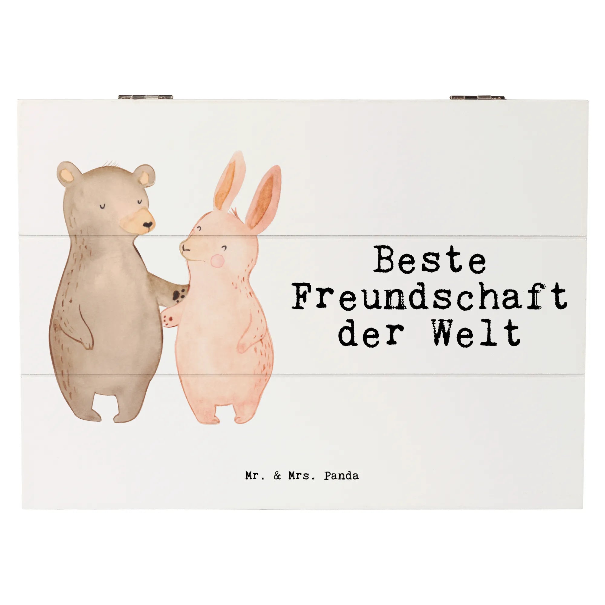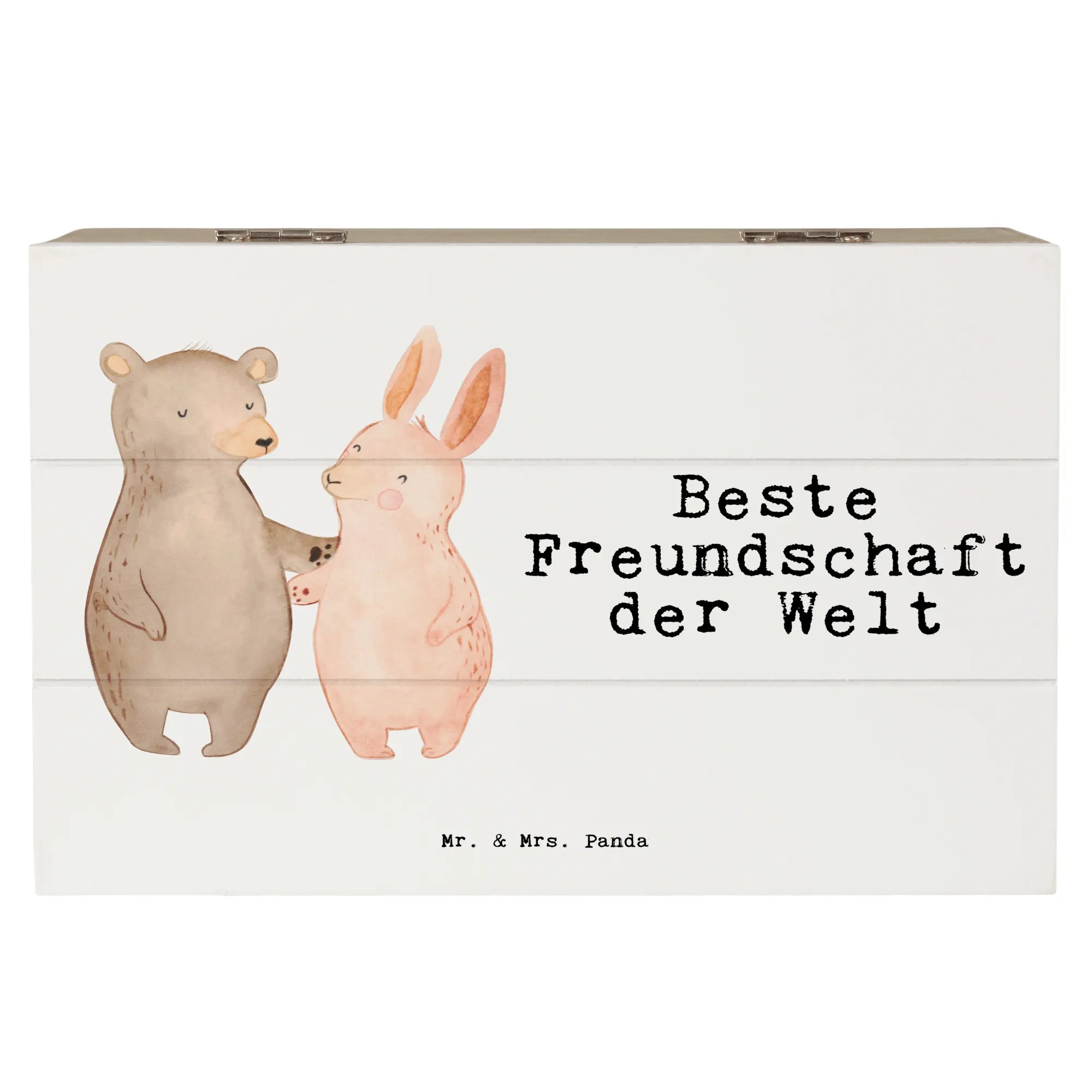 Suchst du das perfekte Geschenk für deinen besten Freund oder deine beste Freundin? Die bezaubernde Holzkiste von Mr. & Mrs. Panda mit dem süßen Hase-Motiv "Beste Freundschaft der Welt" ist genau das Richtige!