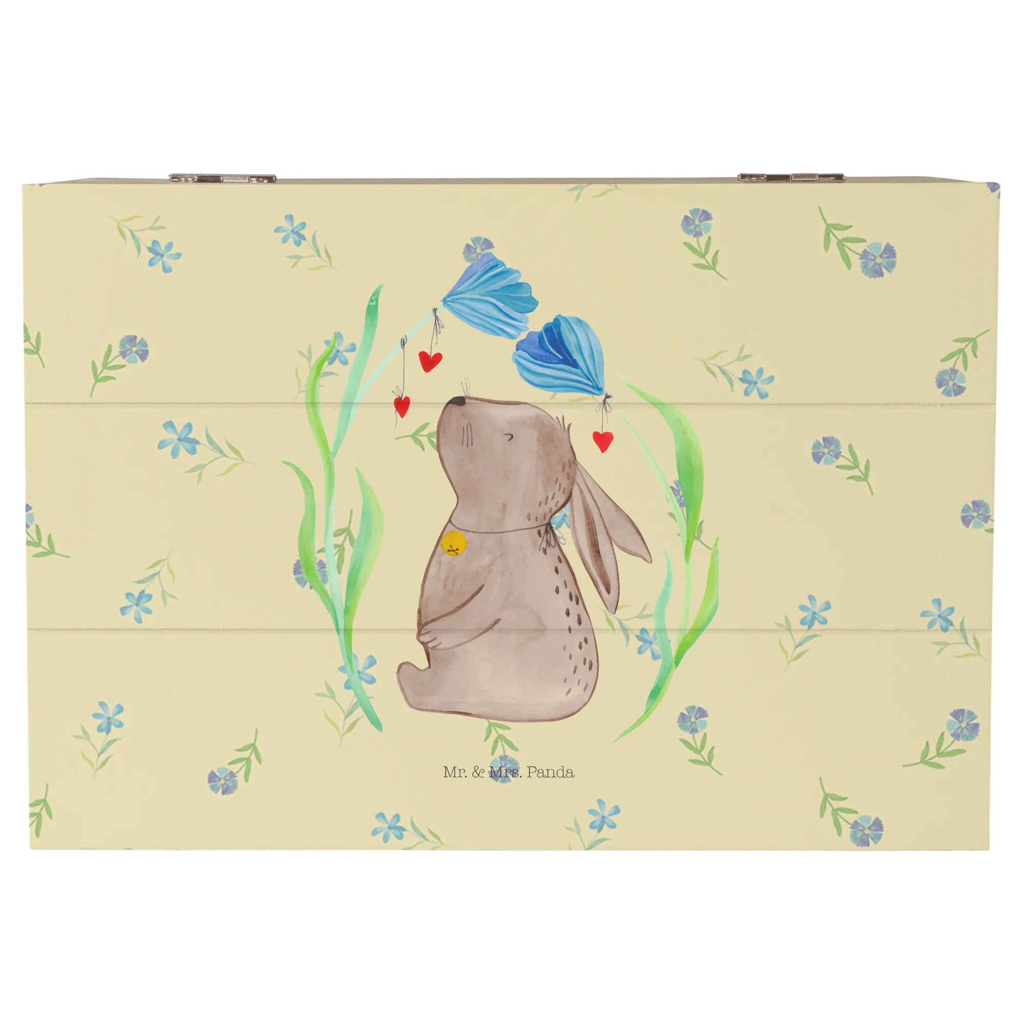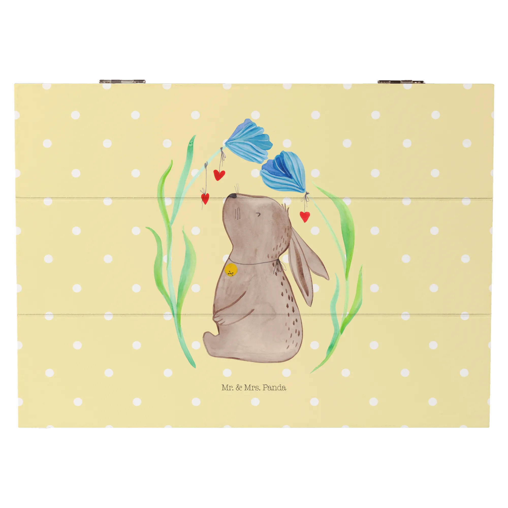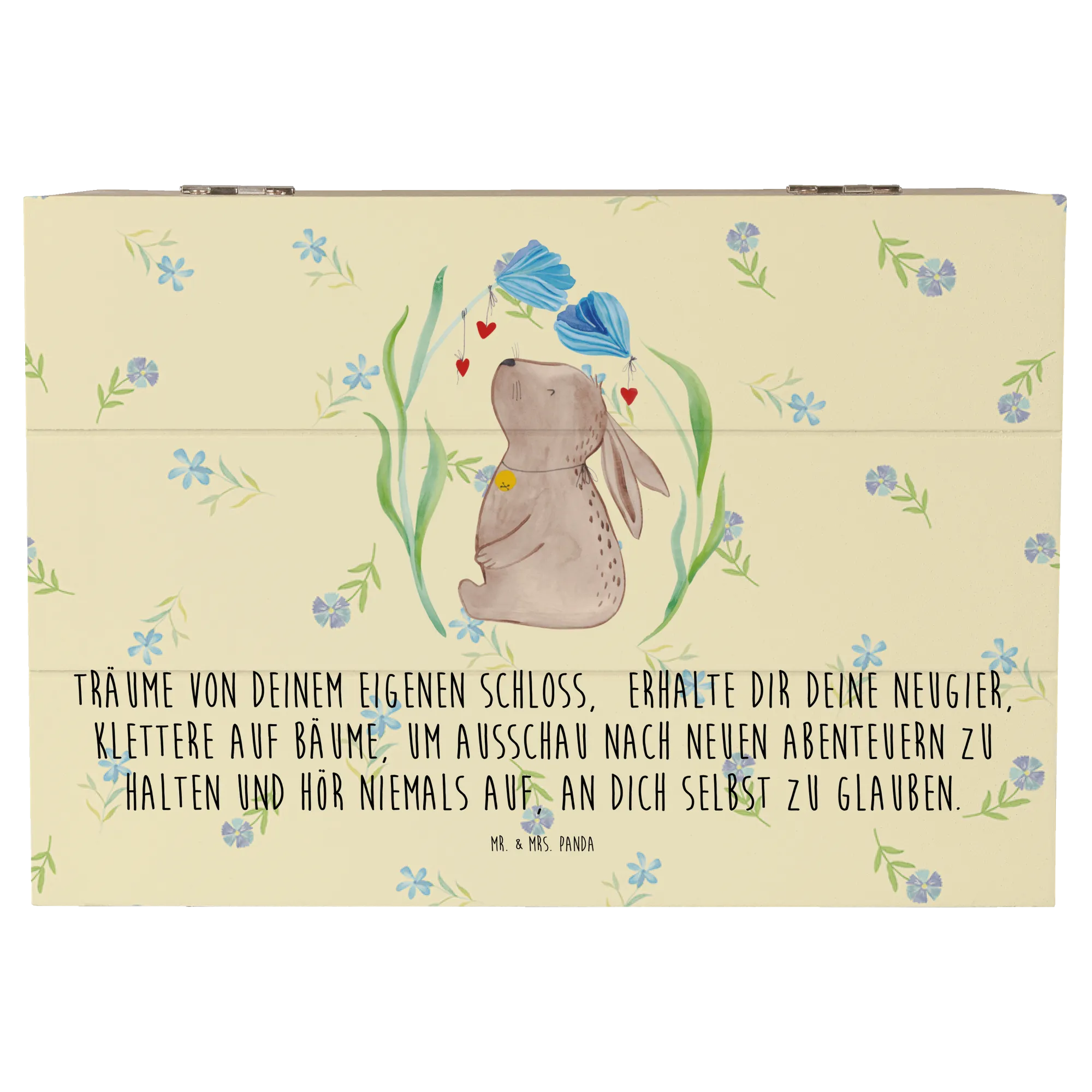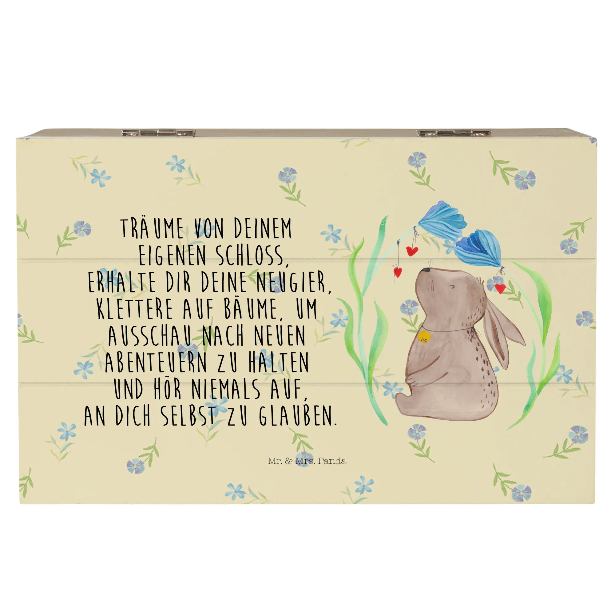 Die wunderschöne Holzkiste von Mr. & Mrs. Panda mit dem bezaubernden Motiv Hase Blume ist das perfekte Geschenk für jede Gelegenheit, insbesondere zur Osterzeit.