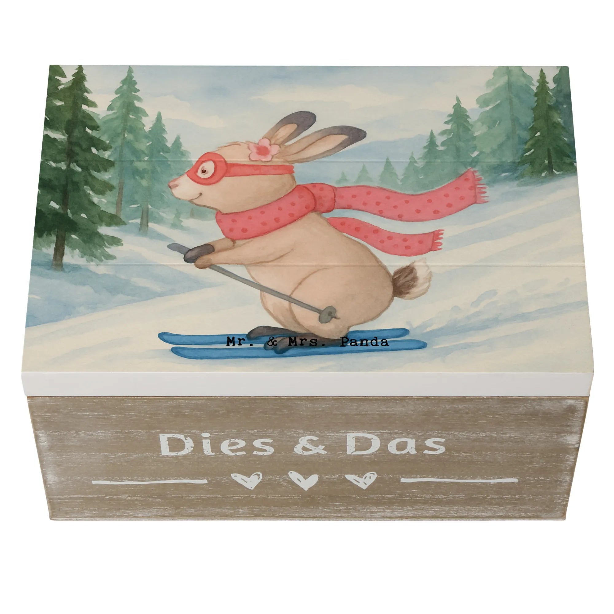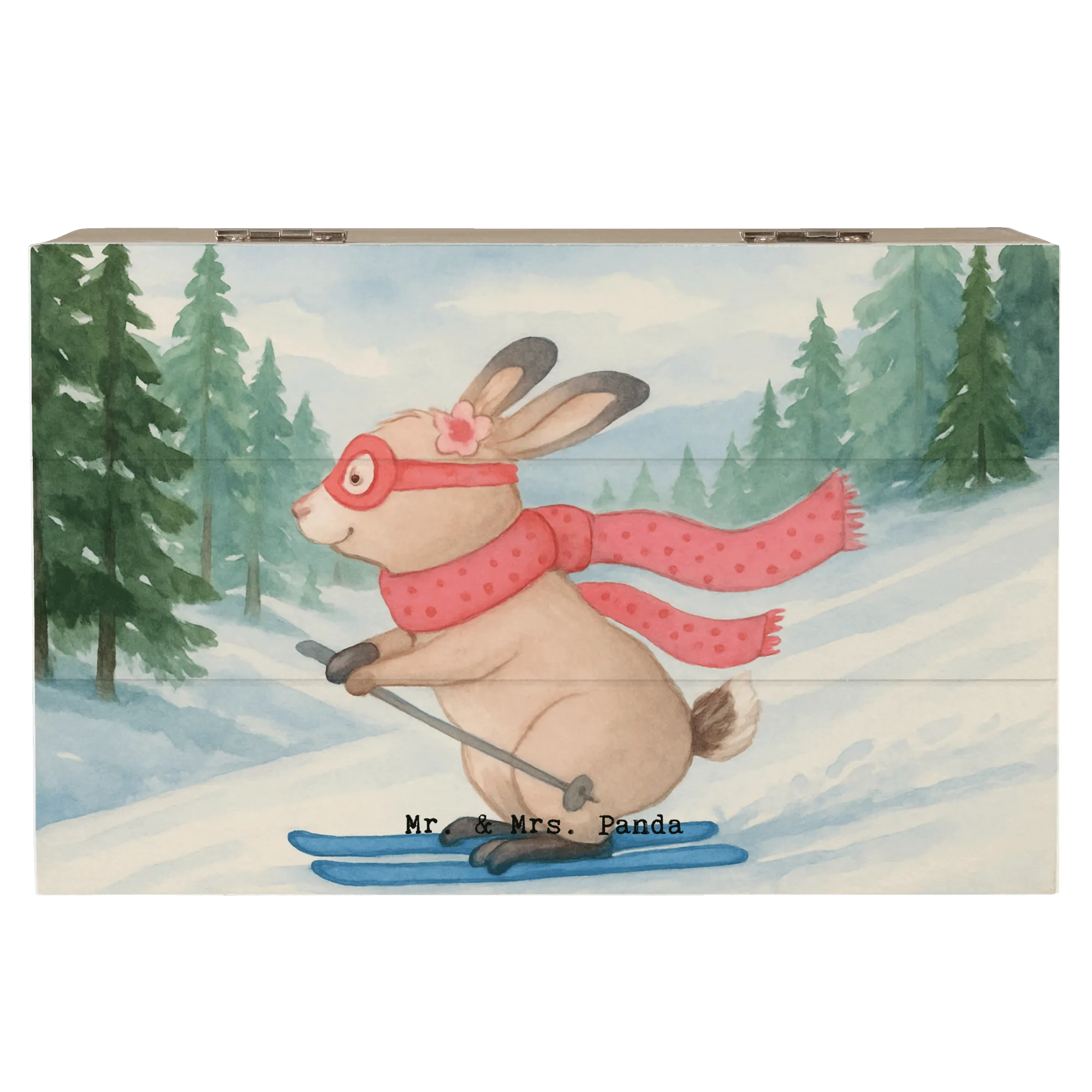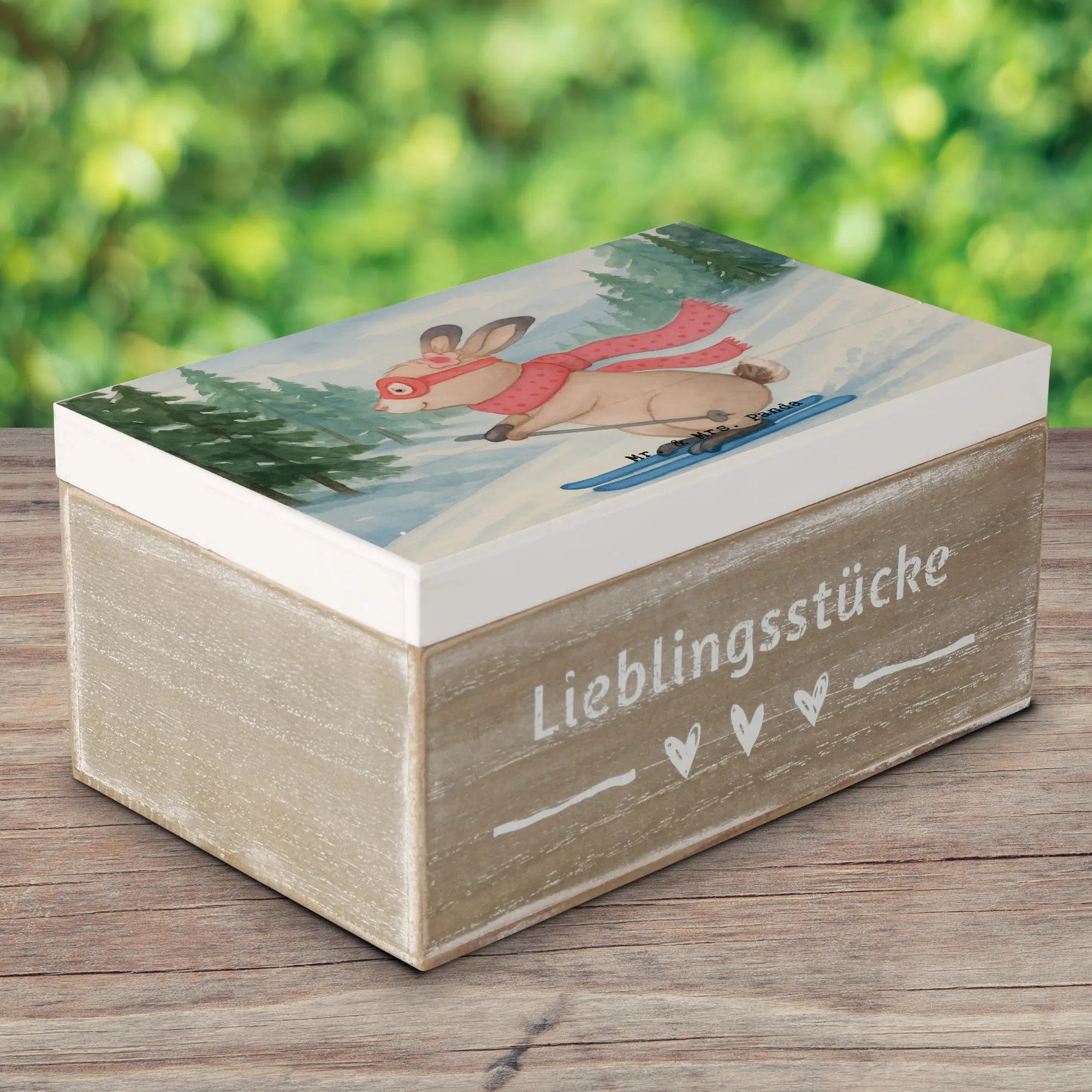 Holzkiste Hase Skifahren Design - 22 x 15 cm