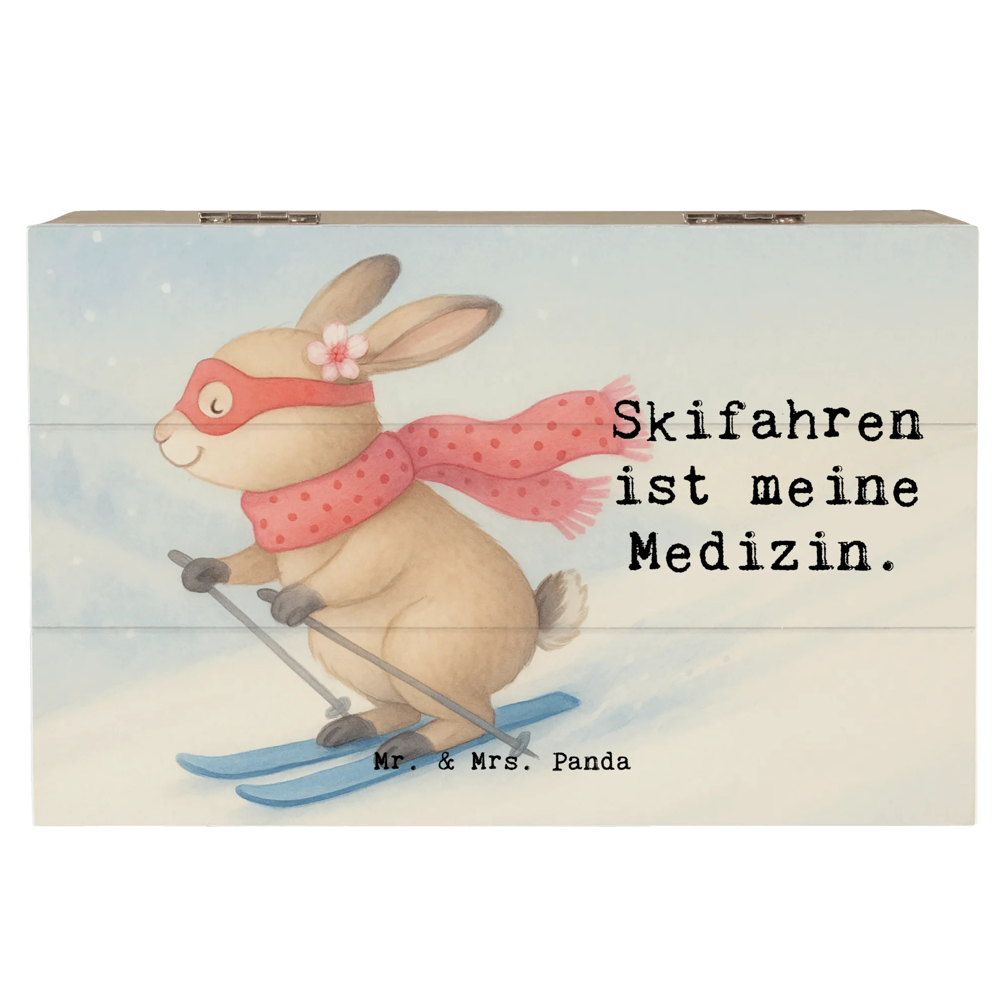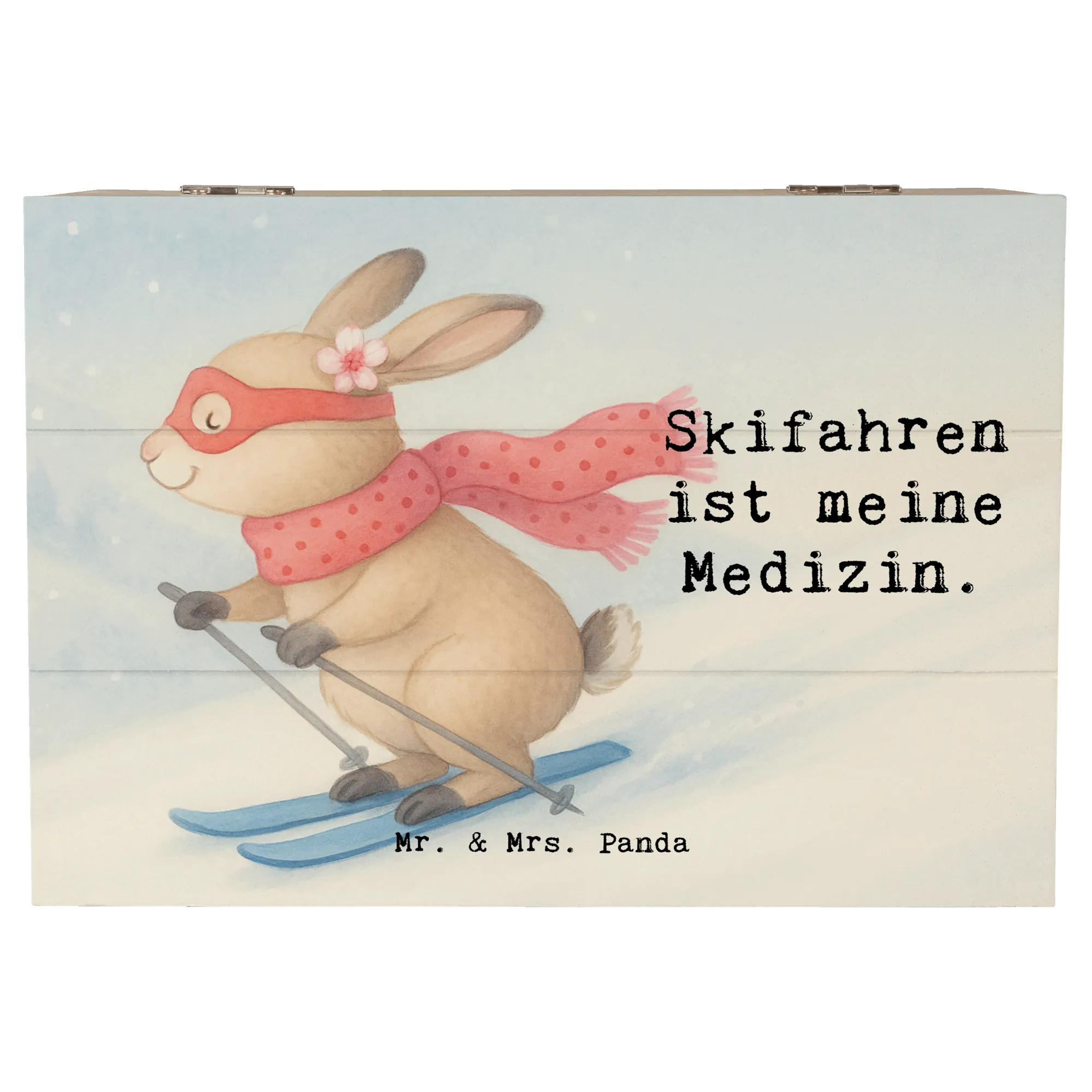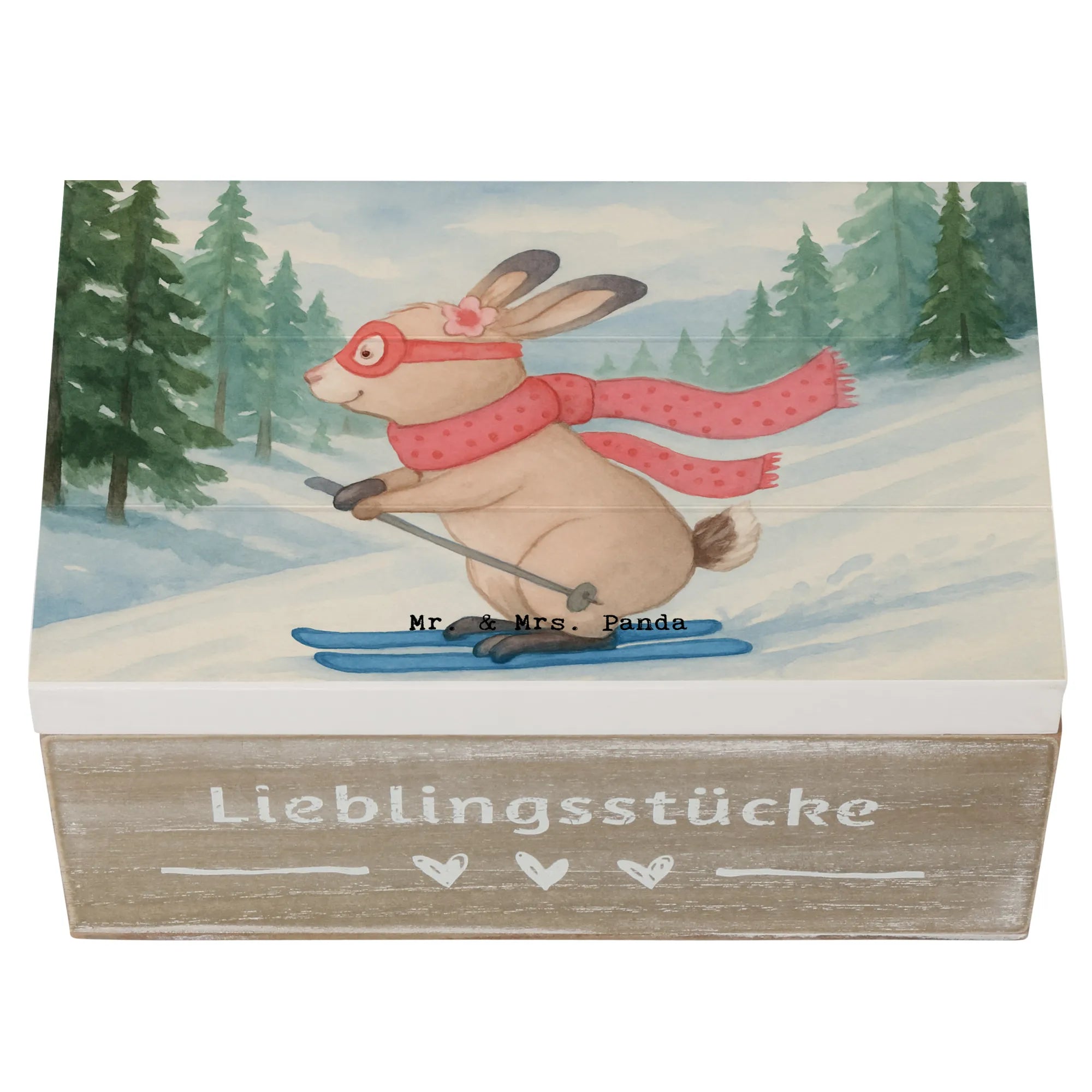 Holzkiste Hase Skifahren Design - 22 x 15 cm