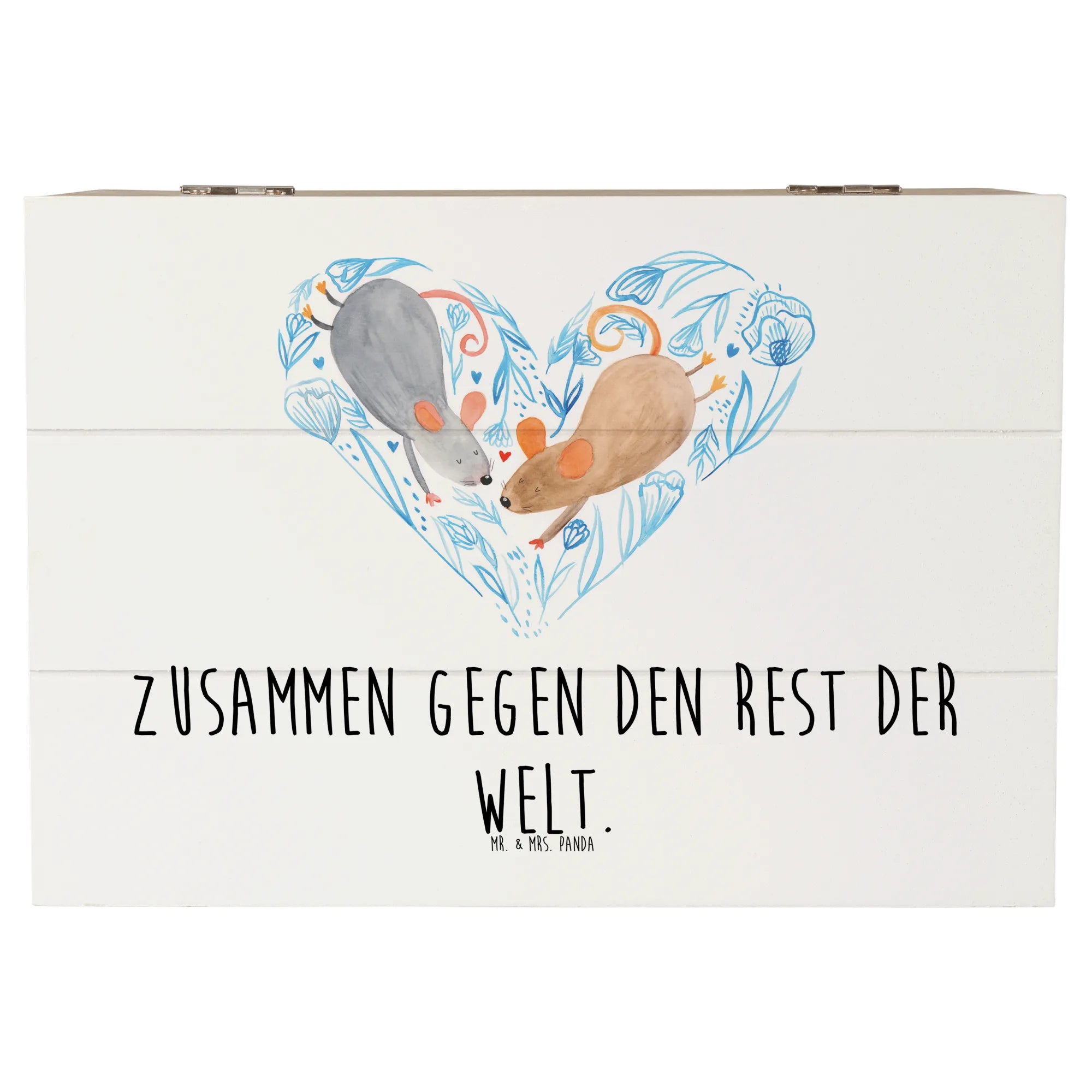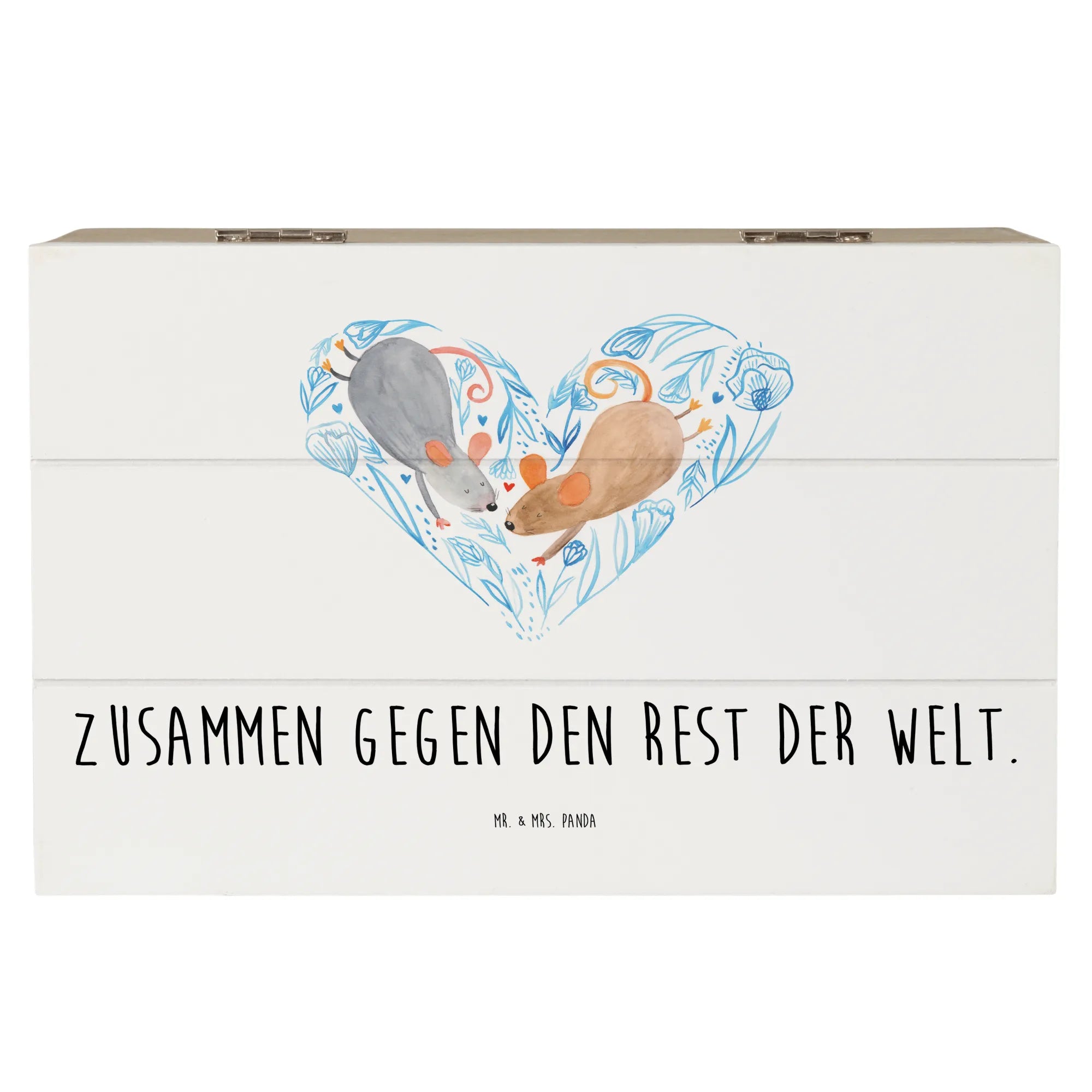 Bring einen Funken Liebe und unvergessliche Erinnerungen in dein Zuhause – mit der Holzkiste Hochzeit Mäuse Herz von Mr. & Mrs. Panda.
