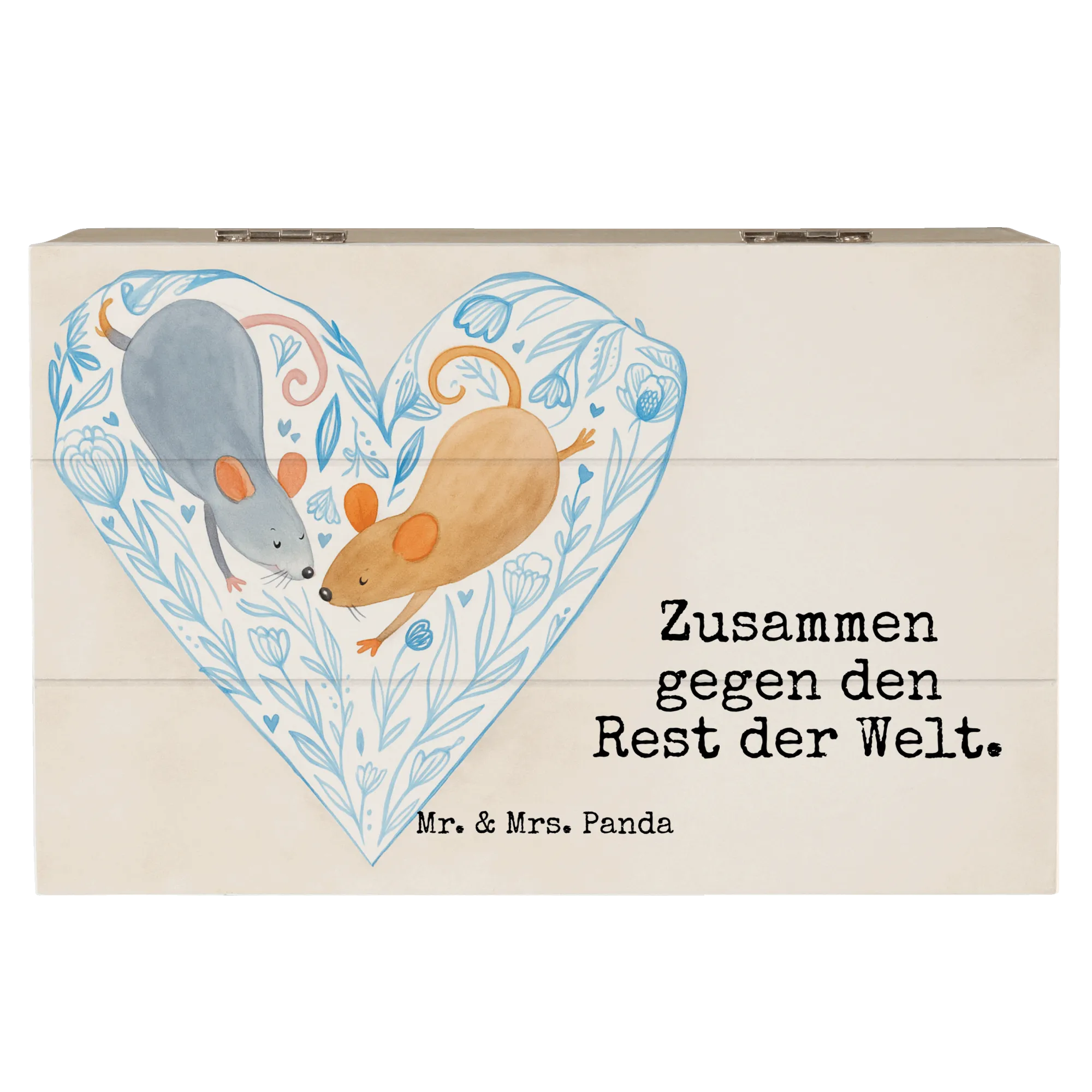 Holzkiste Hochzeit Mäuse Herz Design - 22 x 15 cm