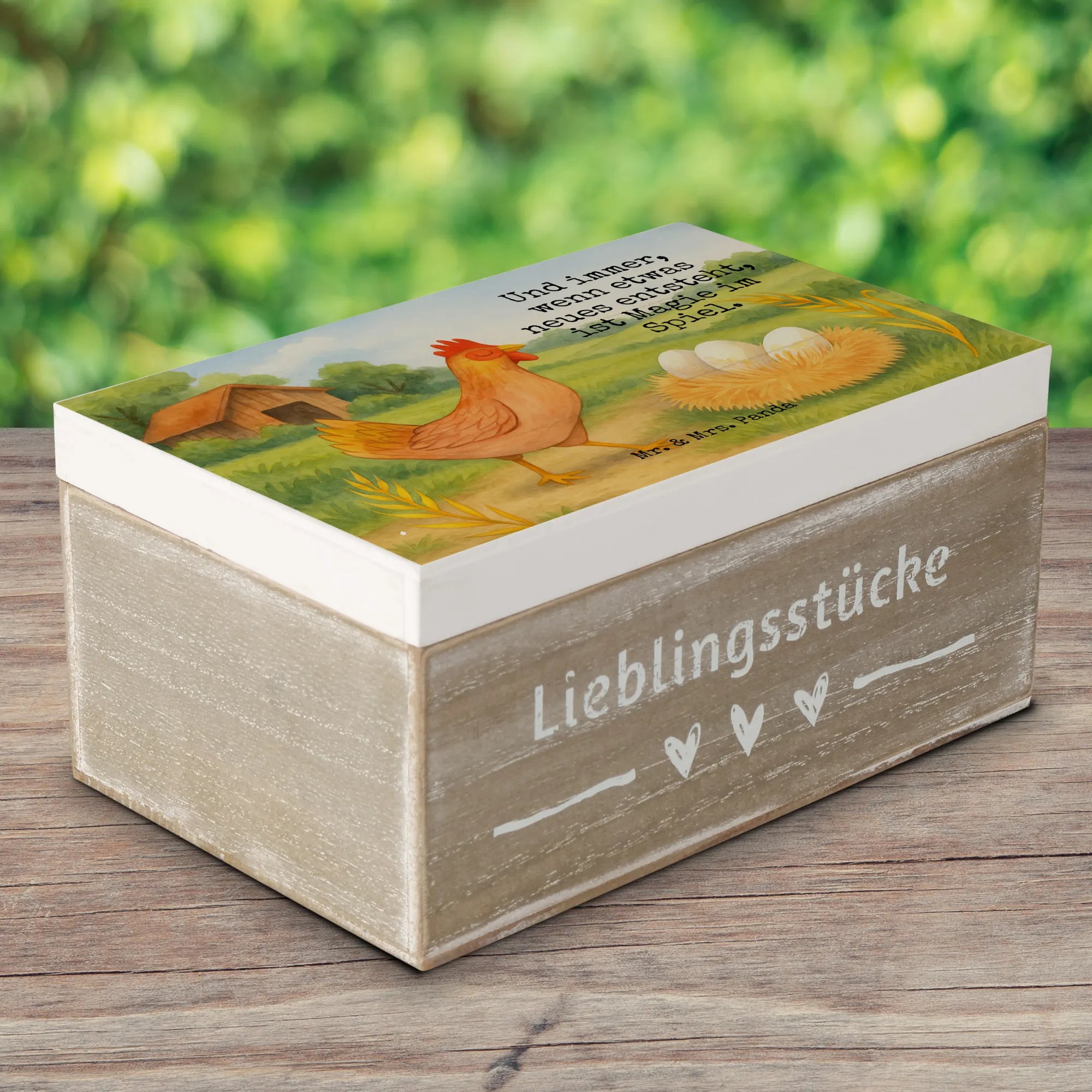 Holzkiste Huhn Stolz Design - 22 x 15 cm - mit Spruch