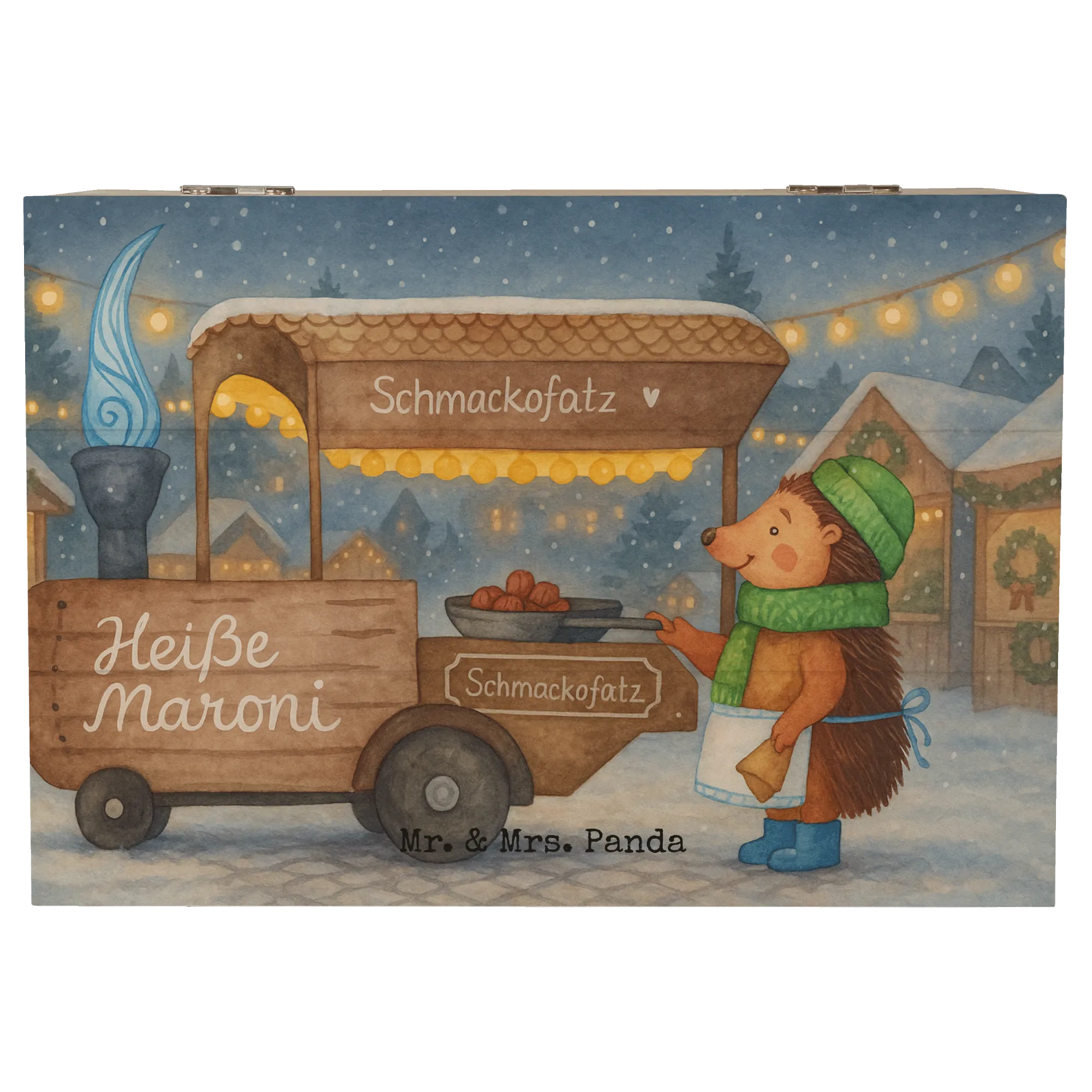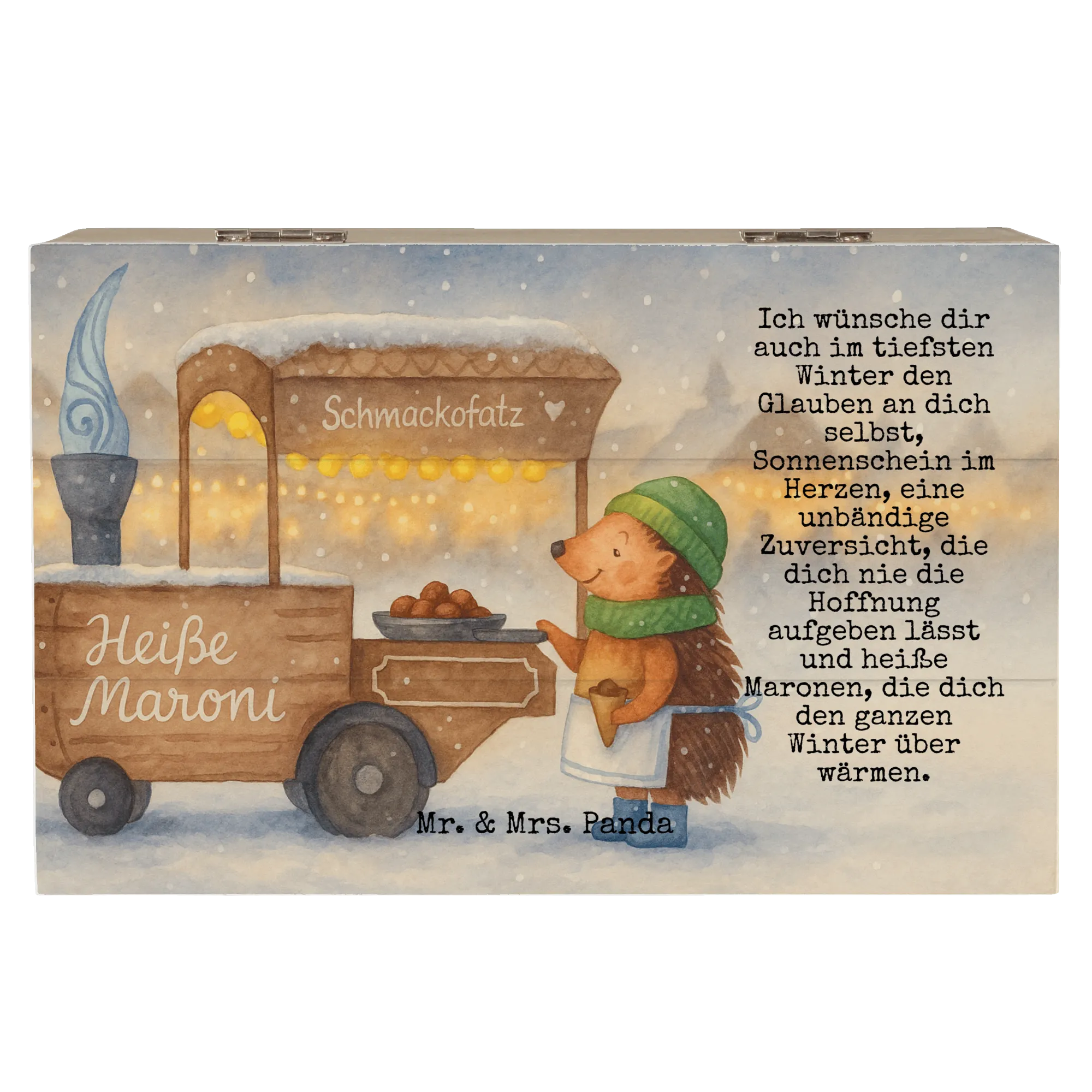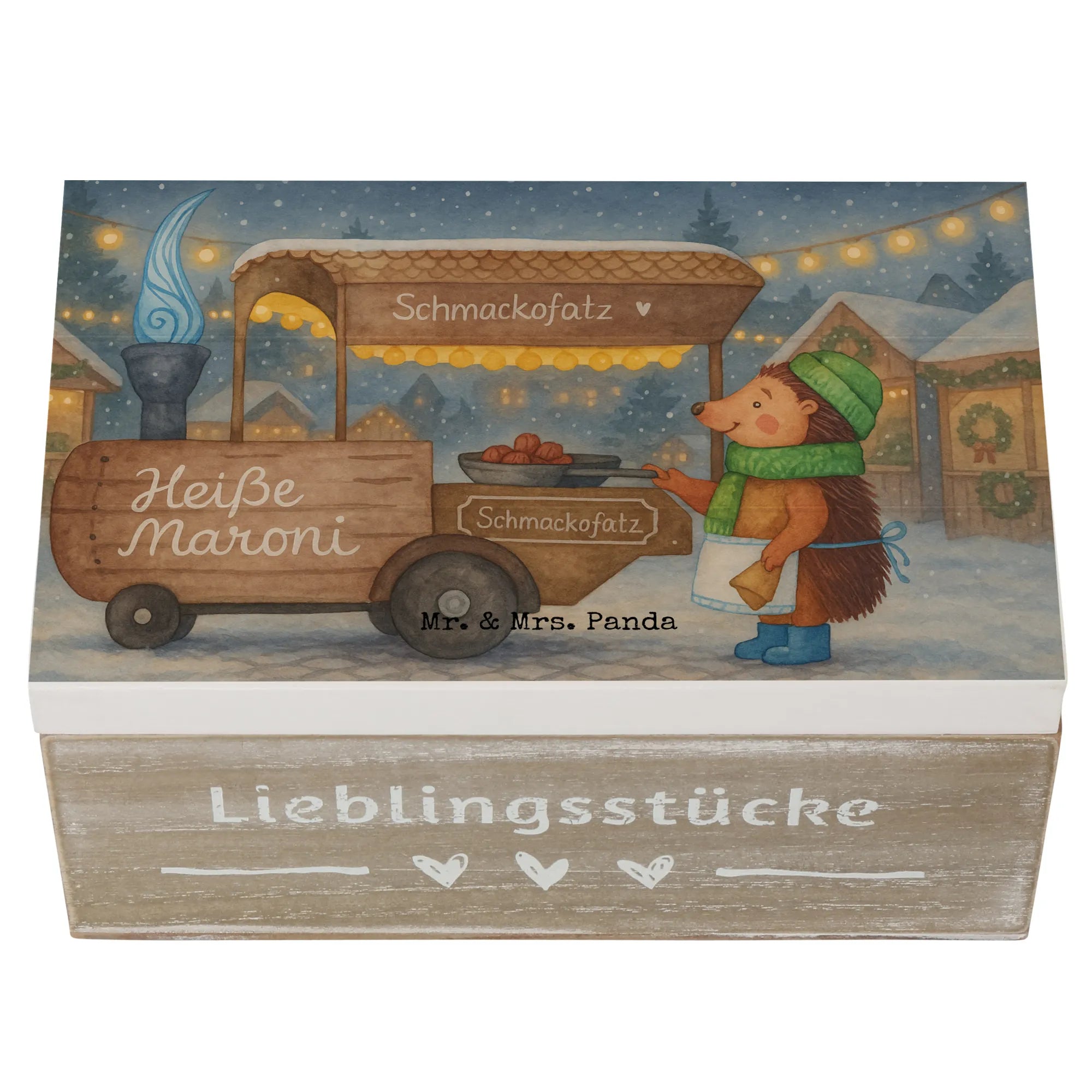 Entdecke die gemütliche Holzkiste von Mr. & Mrs. Panda mit dem liebevoll gestalteten Igel auf seinem Maronenstand. Dieses Wintermotiv weckt Erinnerungen an den Weihnachtsmarkt: der Duft heißer Maroni, warme Wollschals und das heimelige Licht der Adventszeit. Die Kiste ist perfekt als Geschenkbox, Erinnerungskiste oder dekorative Schatulle für Deine schönsten Momente. 🎁❄️