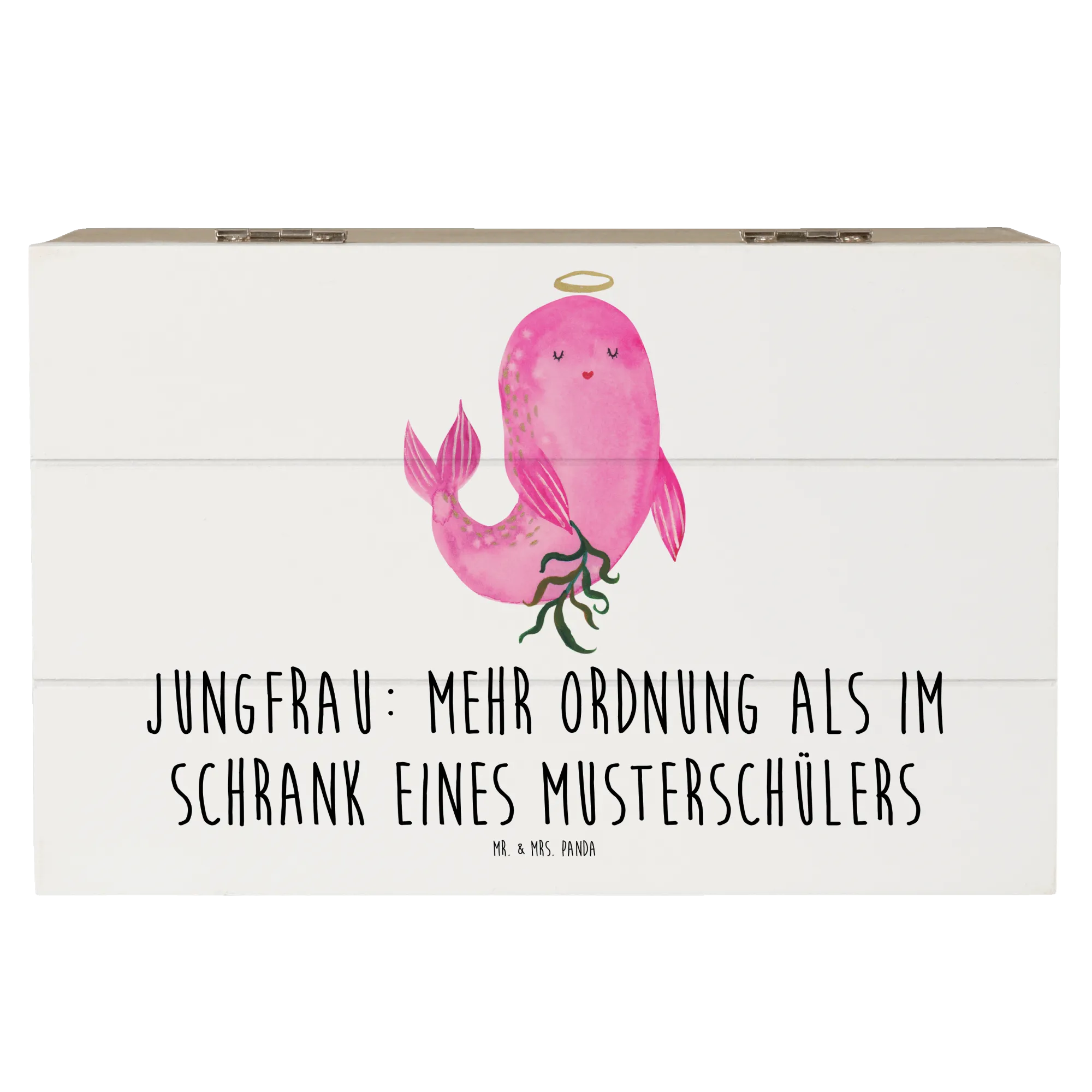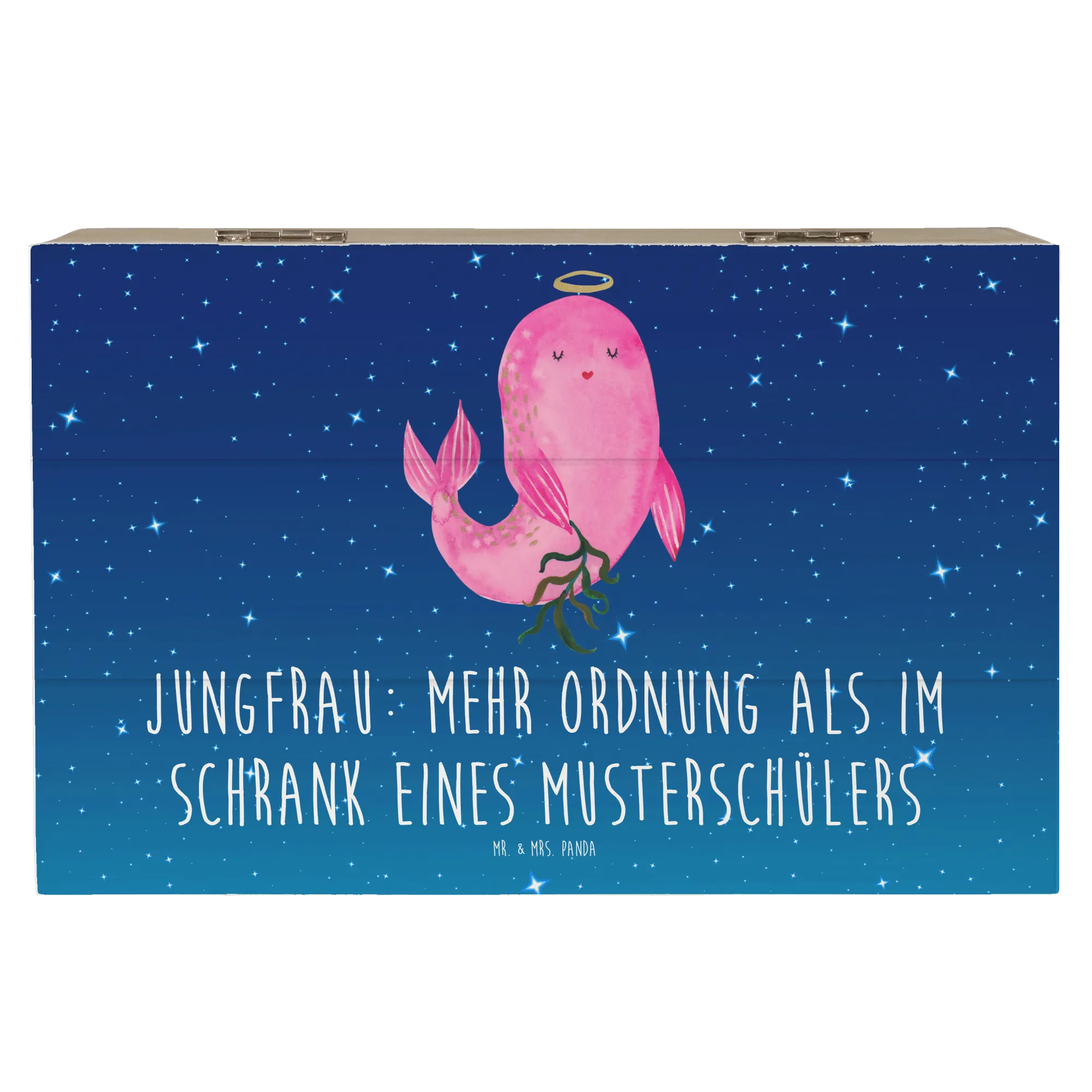 Die wunderschöne Holzkiste Jungfrau von Mr. & Mrs. Panda ist das perfekte Geschenk für Astrologie-Begeisterte und ist ideal geeignet für viele Anlässe. Diese zauberhafte Kiste, bedruckt mit dem niedlichen Motiv "Jungfrau: Mehr Ordnung als im Schrank eines Musterschülers", bietet einen stilvollen Aufbewahrungsort für wertvolle Erinnerungen.
