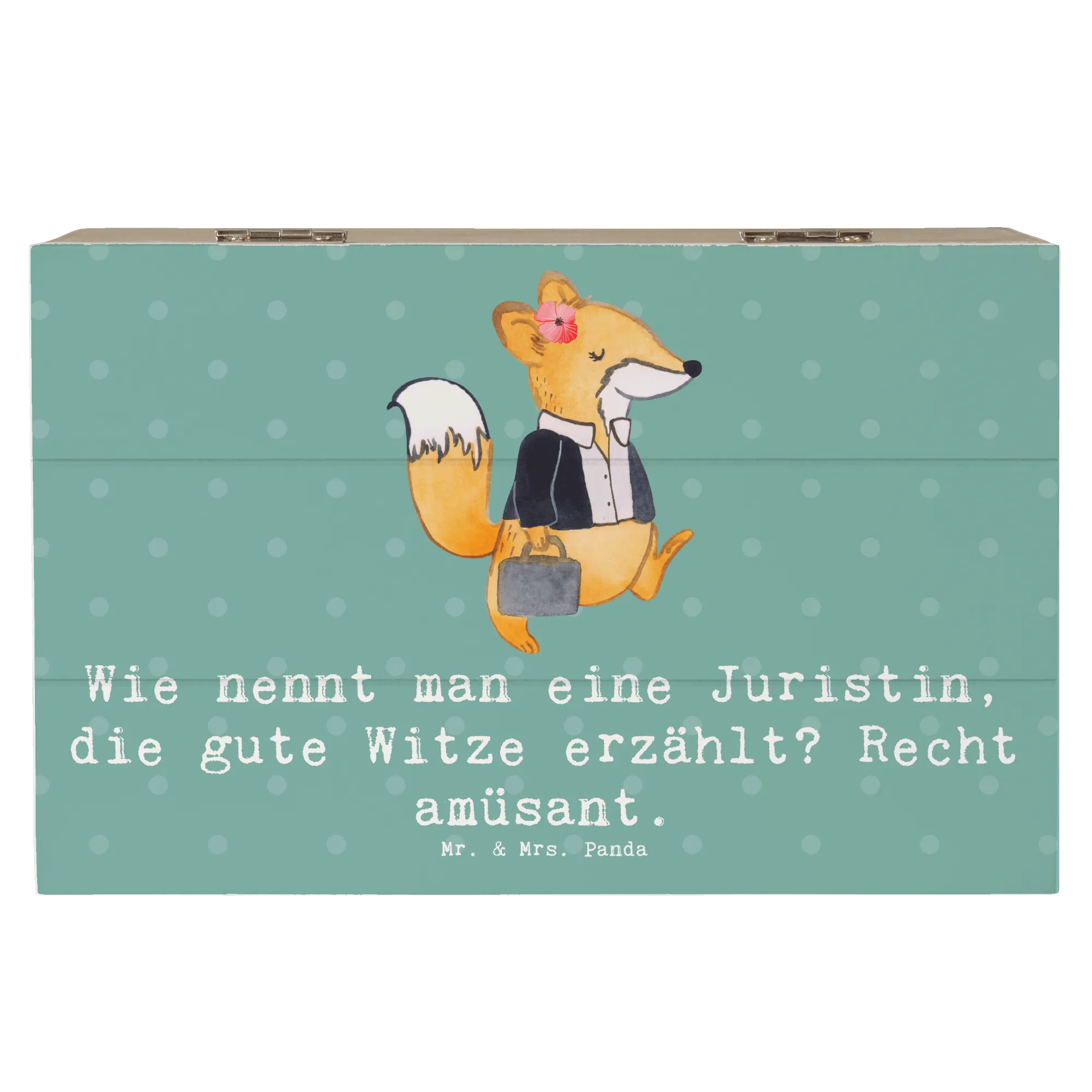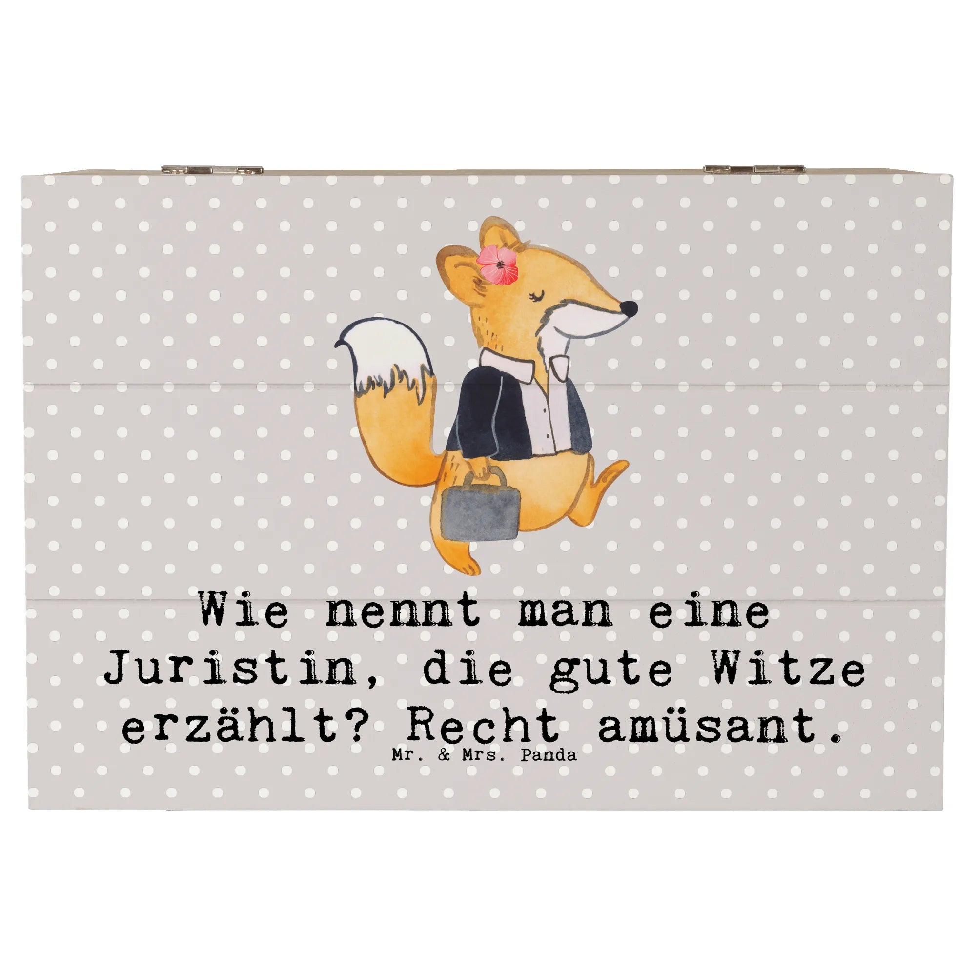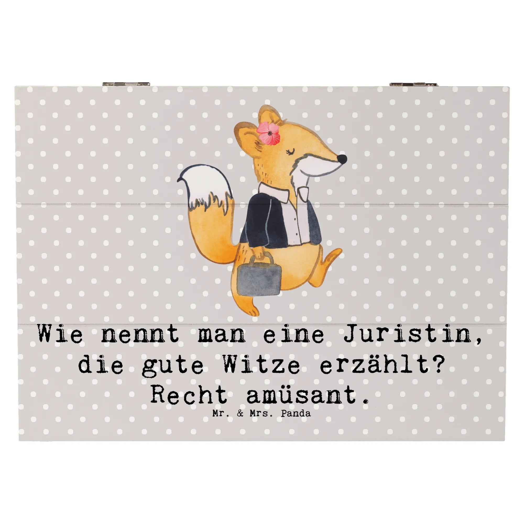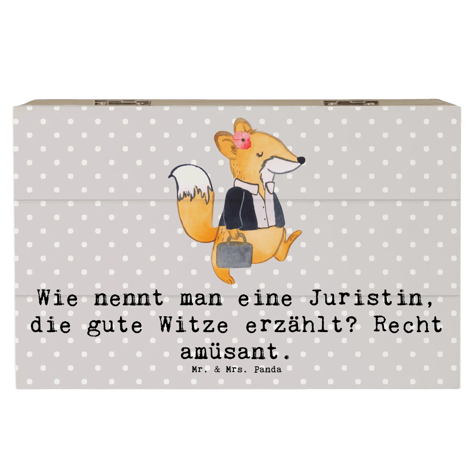 Entdecke die bezaubernde Holzkiste von Mr. & Mrs. Panda mit dem liebevoll gestalteten Motiv einer Juristin und dem witzigen Slogan: "Wie nennt man eine Juristin, die gute Witze erzählt? Recht amüsant." Diese besondere Schatzkiste bietet nicht nur einen sicheren Ort für all deine wertvollen Erinnerungen, sondern bringt auch eine Prise Humor in dein Zuhause.
