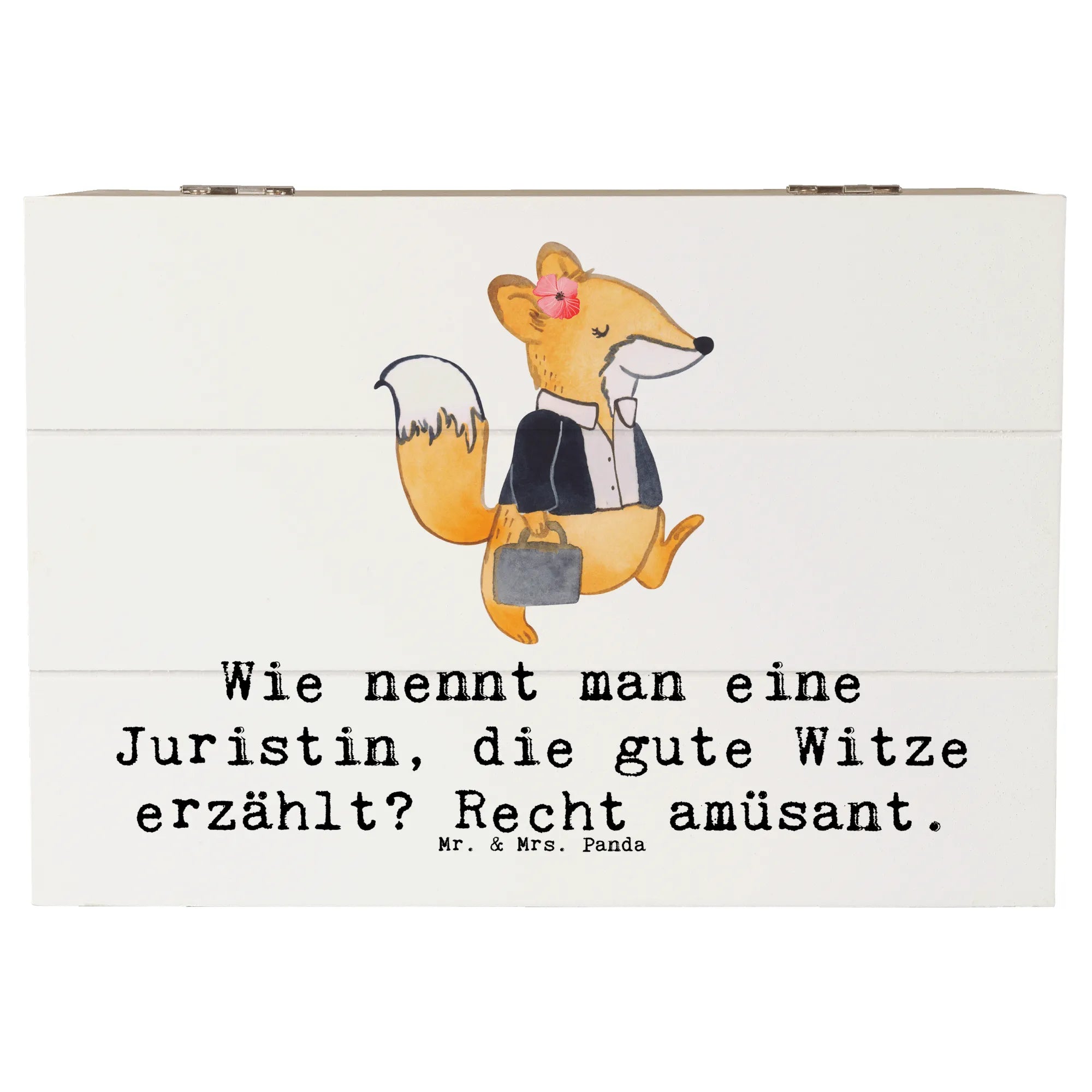 Die wunderschöne Holzkiste von Mr. & Mrs. Panda ist das perfekte Geschenk für jede Juristin, die ihr Herz am rechten Fleck hat. Mit dem liebevollen Slogan "Wie nennt man eine Juristin, die gute Witze erzählt? Recht amüsant." wird diese Kiste zum absoluten Hingucker in jedem Büro oder Zuhause.