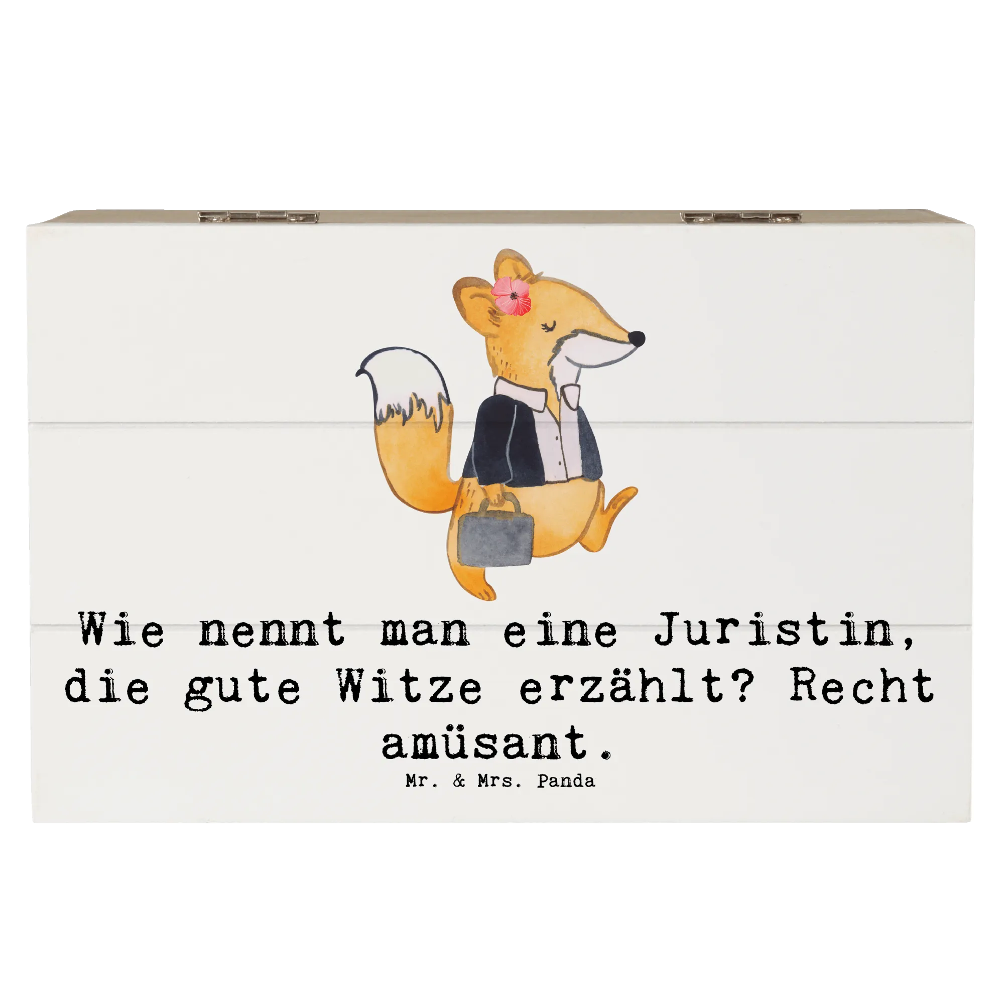 Entdecke die wunderschöne Holzkiste von Mr. & Mrs. Panda, die speziell für Juristen gestaltet wurde. Mit dem witzigen Spruch 'Wie nennt man eine Juristin, die gute Witze erzählt? Recht amüsant.' ist diese Kiste nicht nur ein praktischer Aufbewahrungsort, sondern auch ein echter Hingucker.