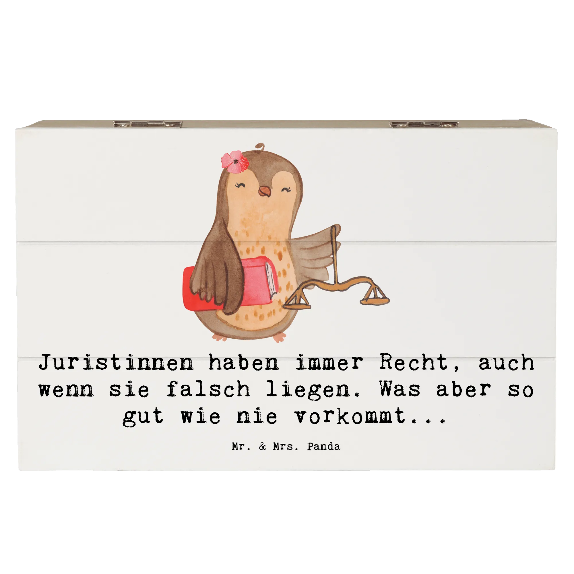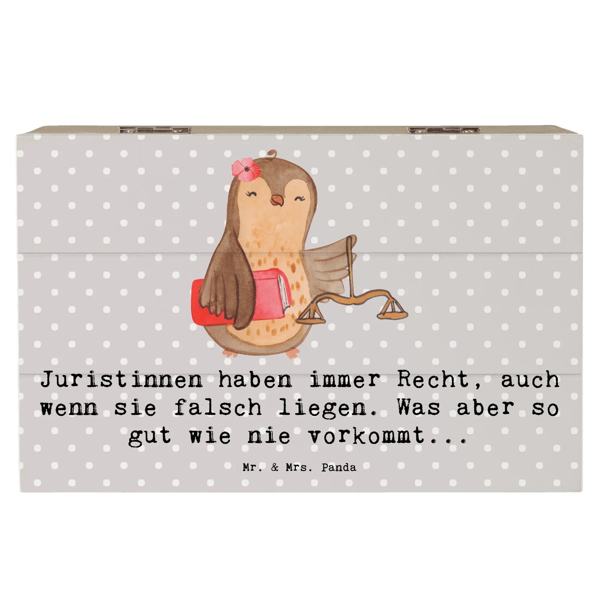 Die wundervolle Holzkiste Juristin aus der Berufe Kollektion von Mr. & Mrs. Panda ist das perfekte Geschenk für alle Juristinnen und Rechtsexpertinnen!