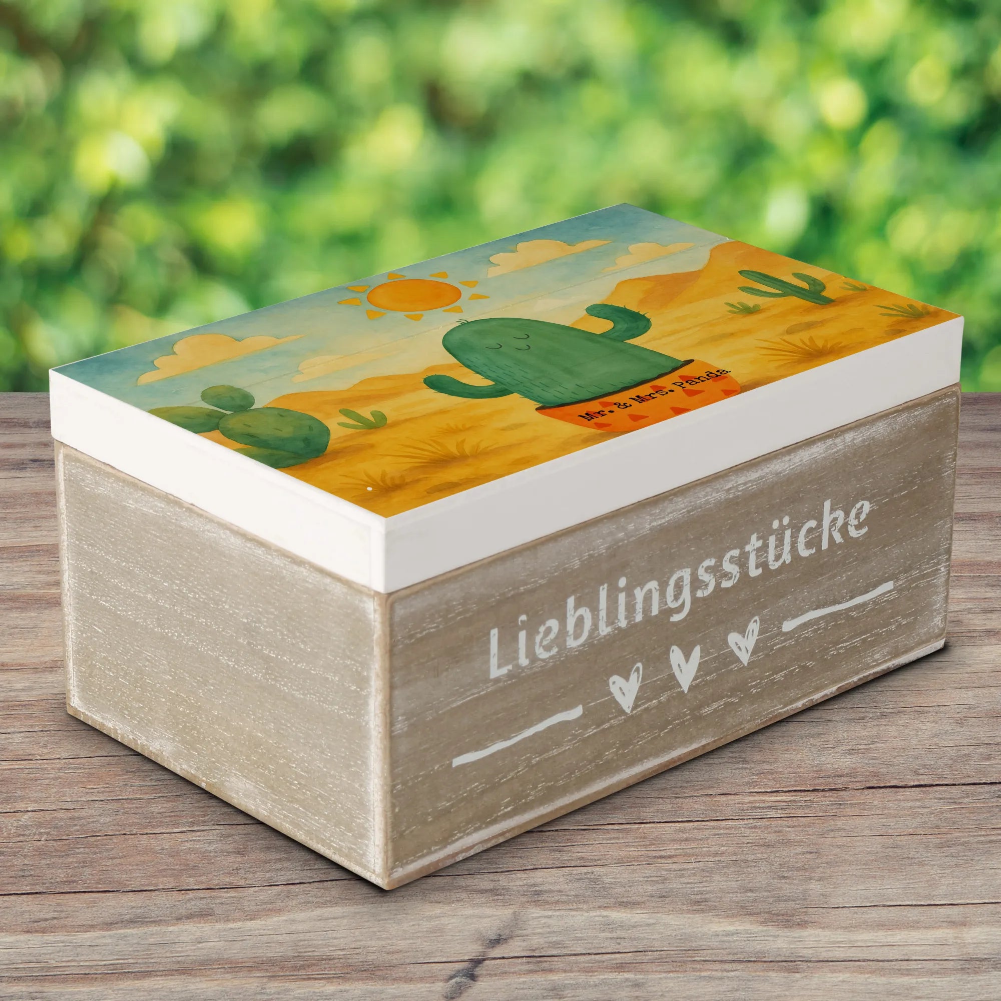 Holztruhe Kaktus Sonne Design - 22 x 15 cm - mit Spruch