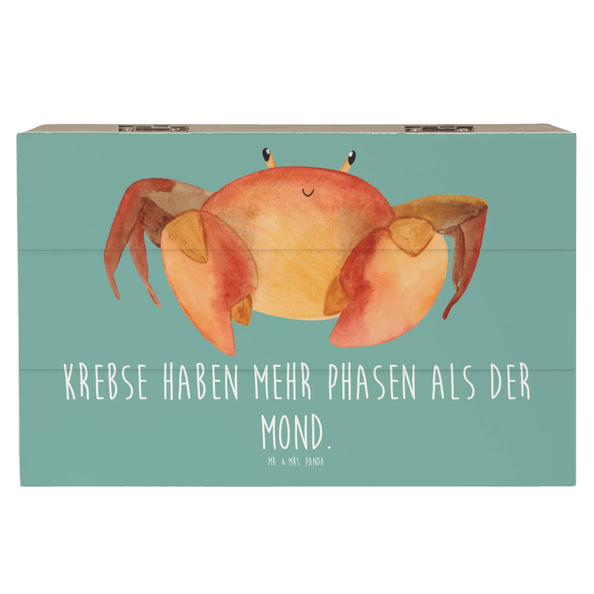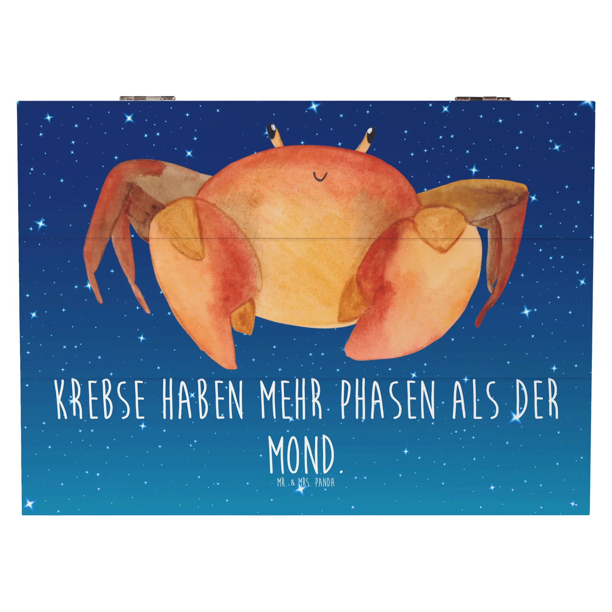 Die wunderschöne Holzkiste von Mr. & Mrs. Panda ist das perfekte Geschenk für alle Krebs-Geborenen und Sternzeichen-Liebhaber. Mit dem liebevollen Motiv des Krebses, das den Spruch 'Krebse haben mehr Phasen als der Mond' in einem verspielten Design vereint, ist diese Kiste nicht nur optisch ein Hingucker, sondern auch funktional.