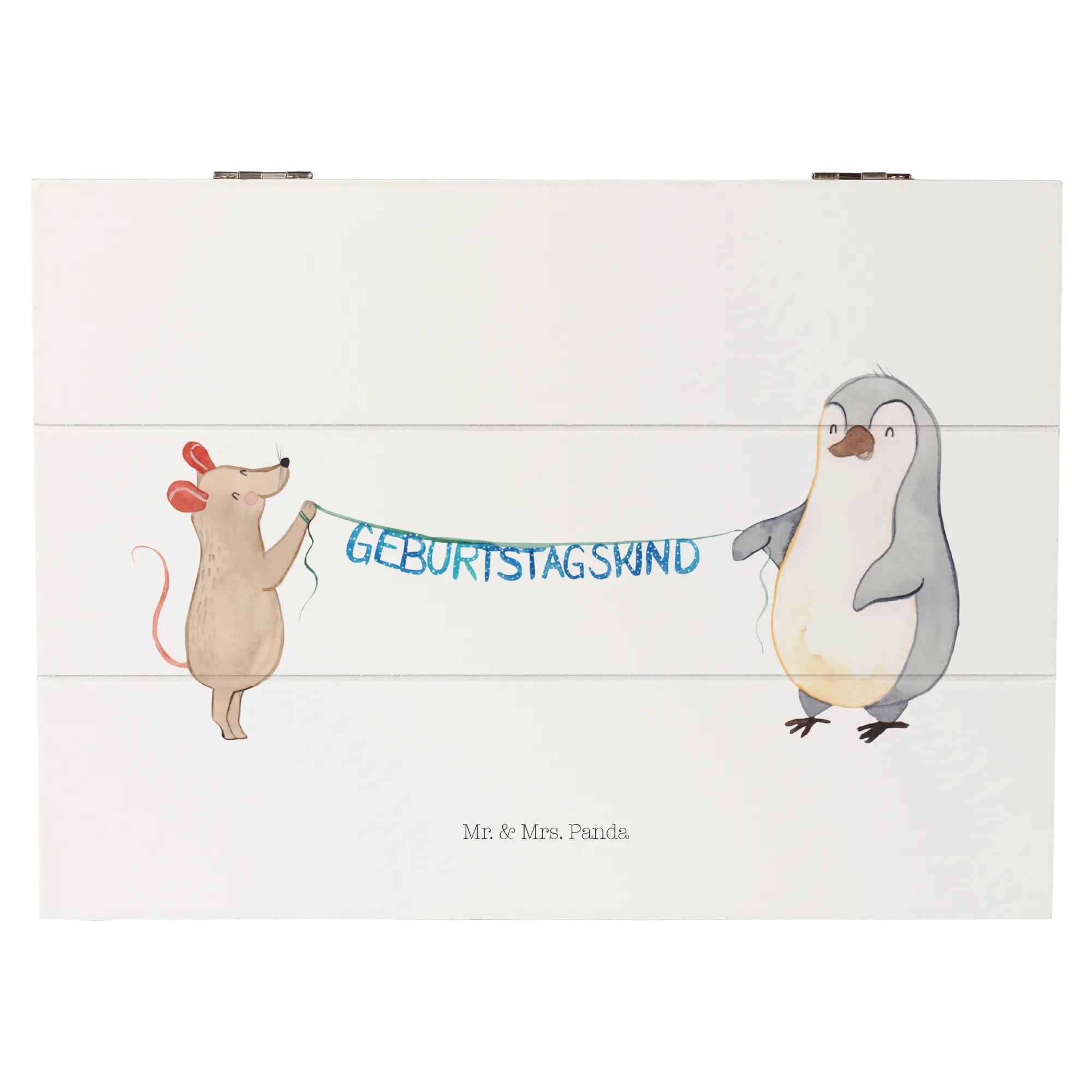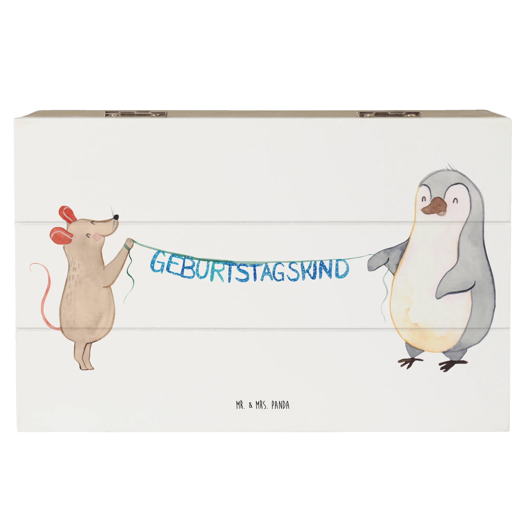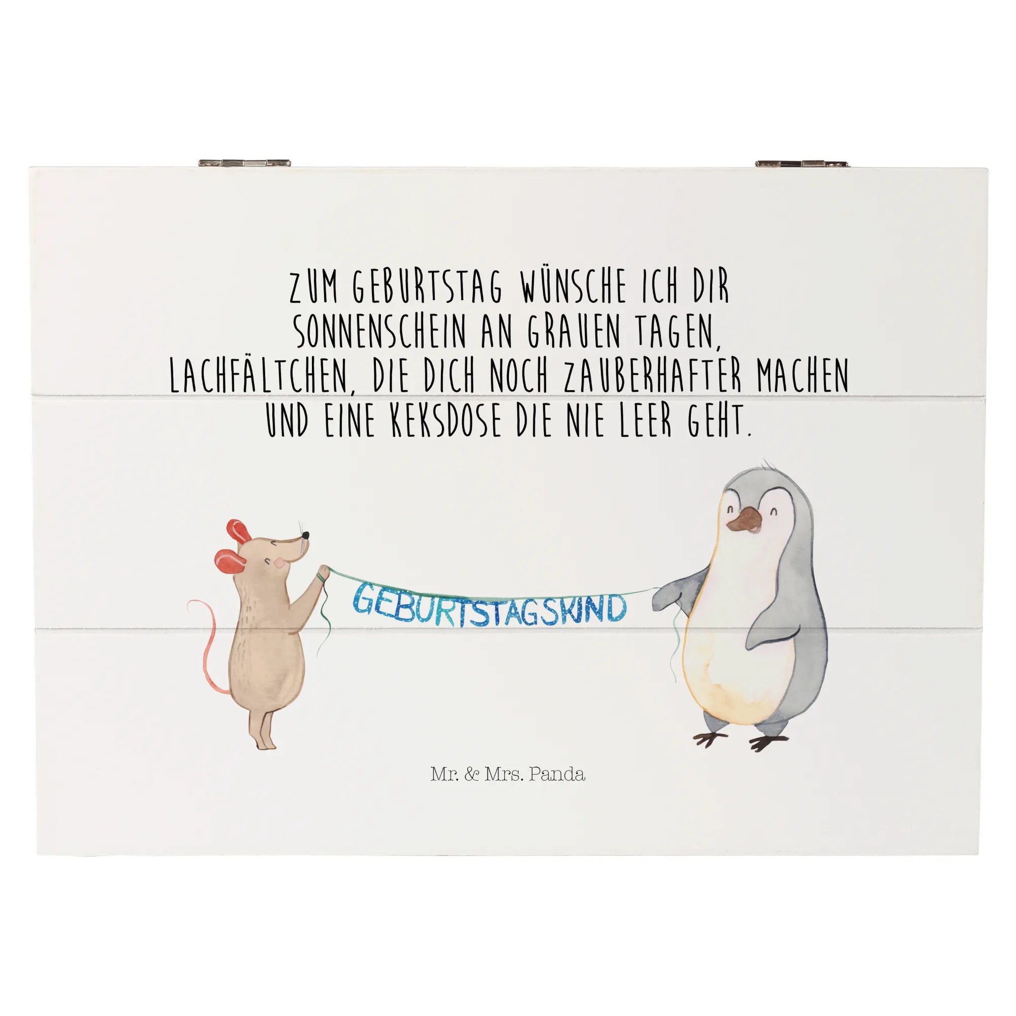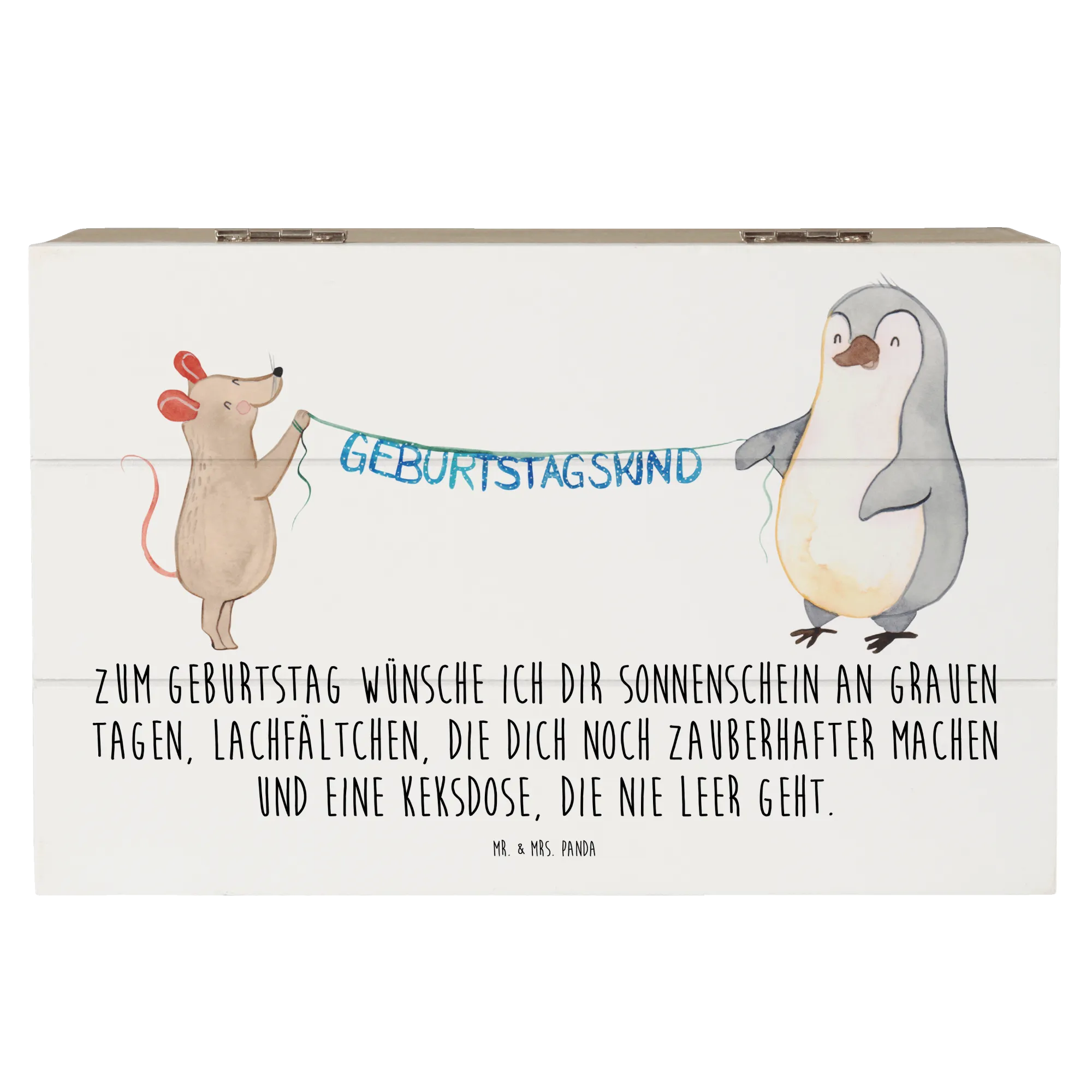 Die wunderschöne Holzkiste mit dem süßen Motiv von Mr. & Mrs. Panda, featuring eine niedliche Maus und einen Pinguin, ist das perfekte Geschenk für jeden Geburtstag. Ob für Freunde, Familie oder Kinder - diese Schatzkiste wird zum Highlight jeder Geburtstagsfeier!