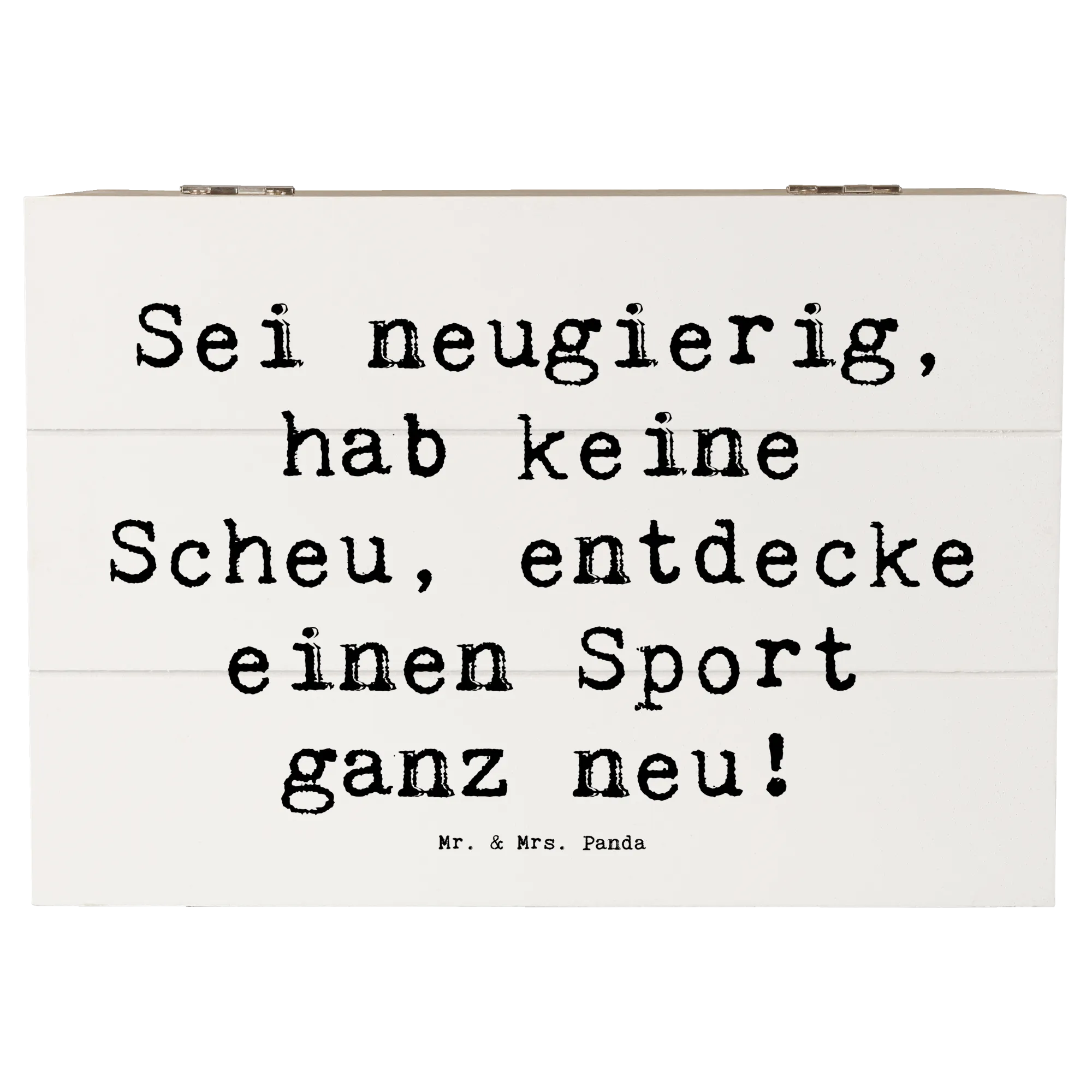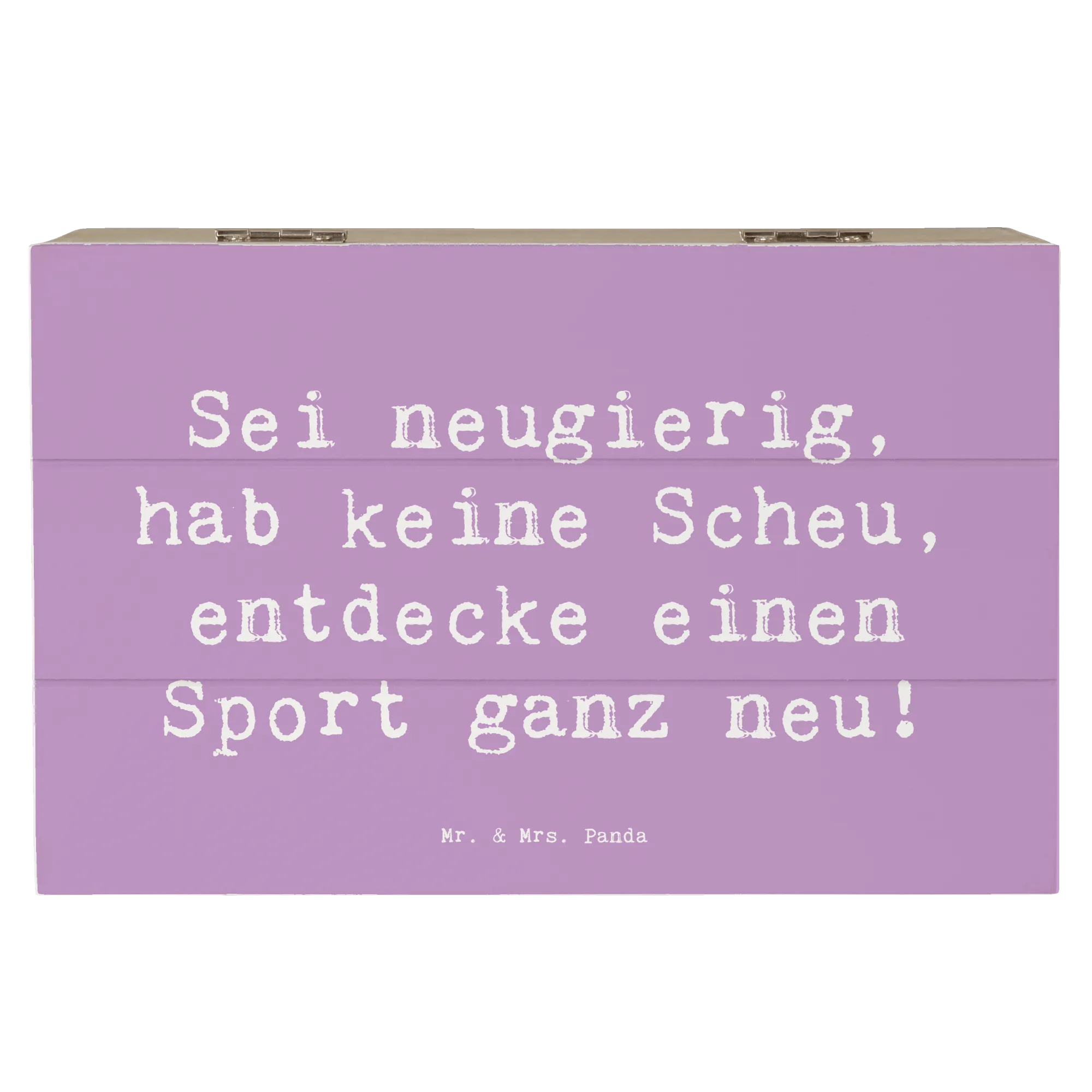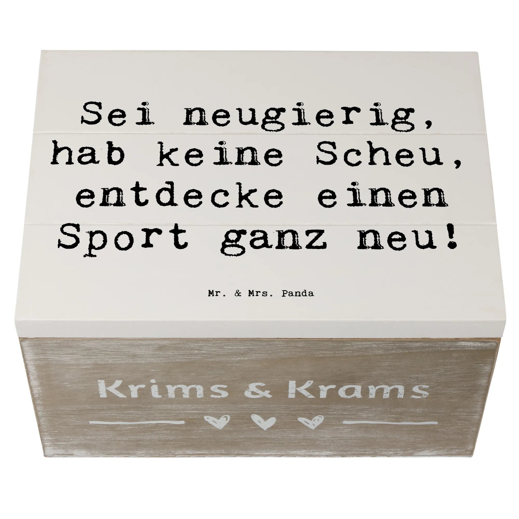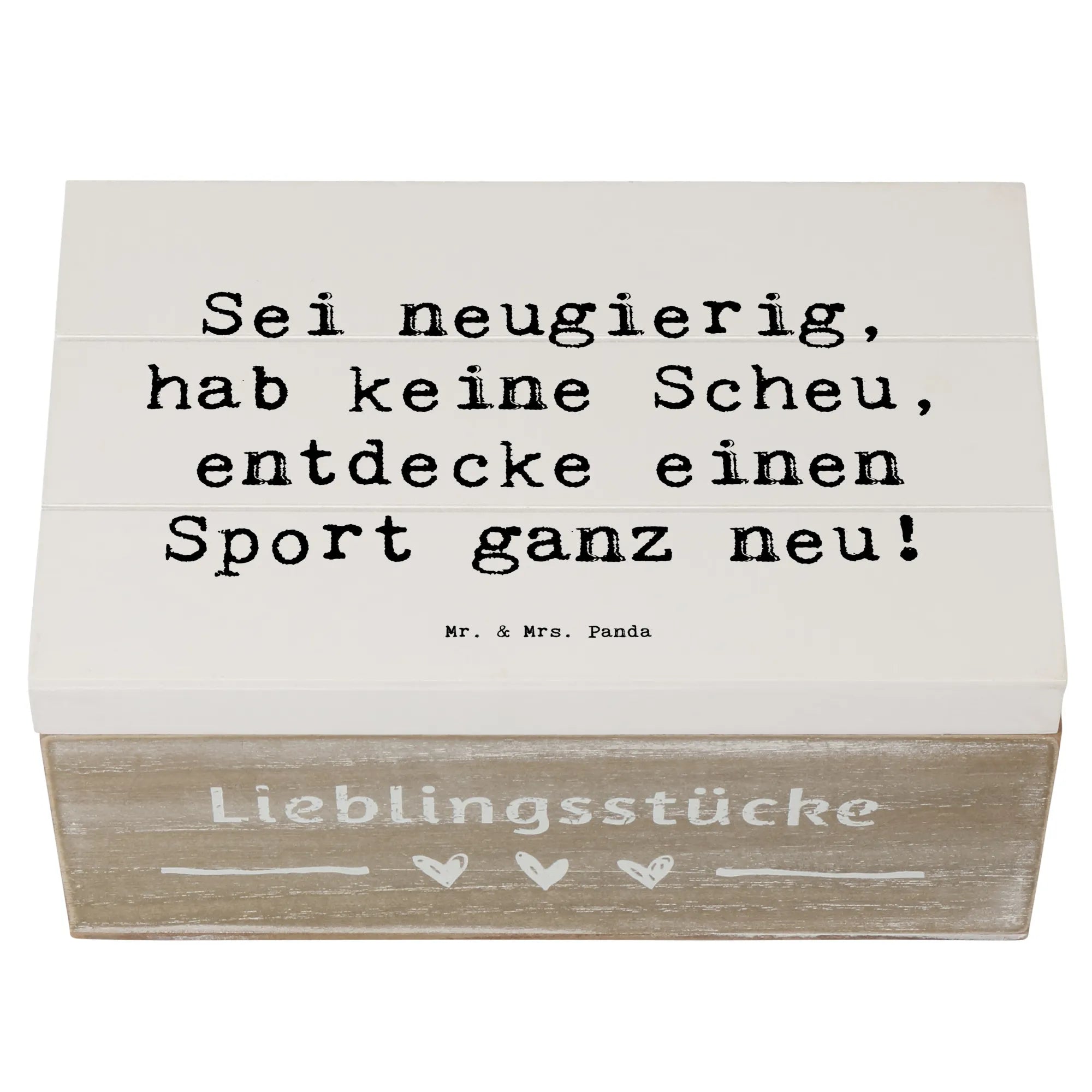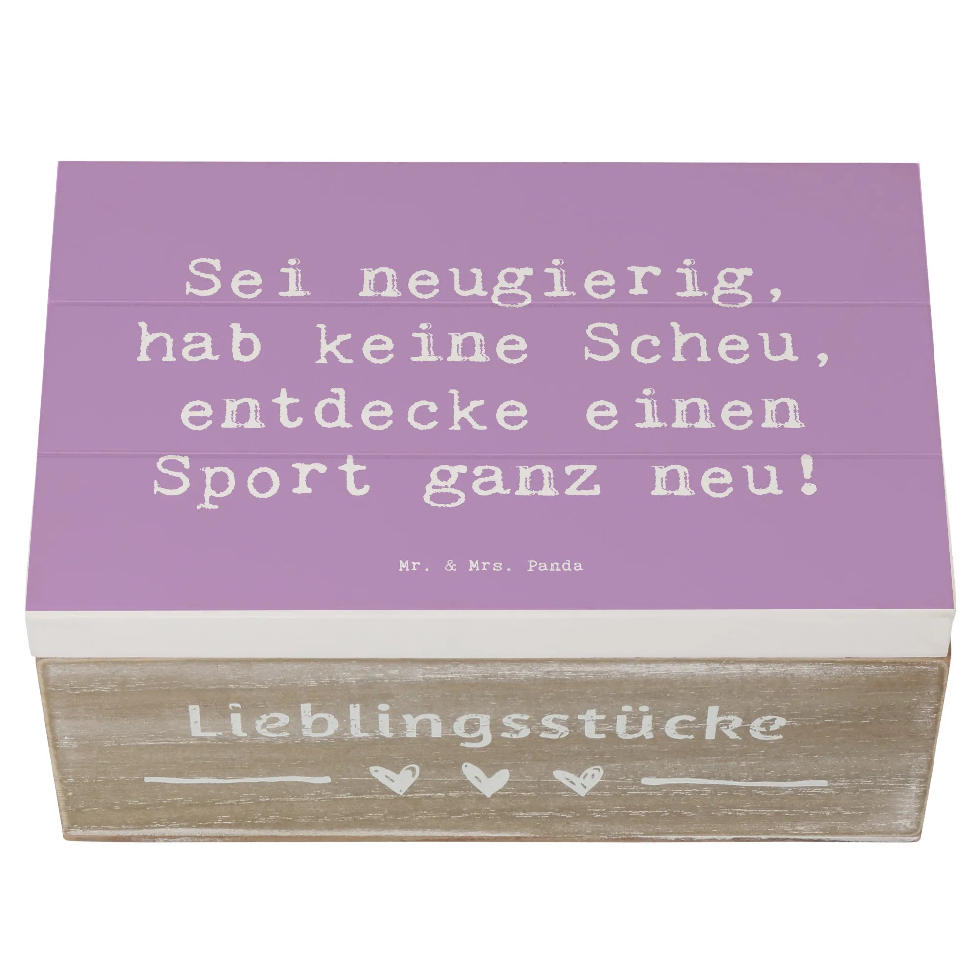 Verschenke Freude und Inspiration mit dieser liebevoll gestalteten Kiste, die sofort zum Entdecken neuer Sportarten einlädt. Der Spruch 'Sei neugierig, hab keine Scheu, entdecke einen Sport ganz neu!' sorgt dafür, dass jeder, der die Kiste öffnet, ermutigt wird, neue Wege zu gehen und Abenteuer zu erleben.