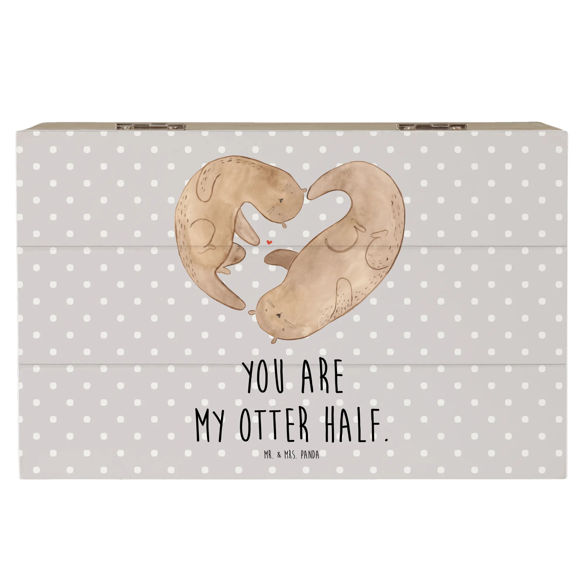 Dank der Einschlagscharniere lässt sich die Kiste ganz einfach öffnen und schließen. Ein besonderes Highlight ist der liebevolle Slogan "You are my otter half", der der Kiste eine persönliche Note verleiht.
