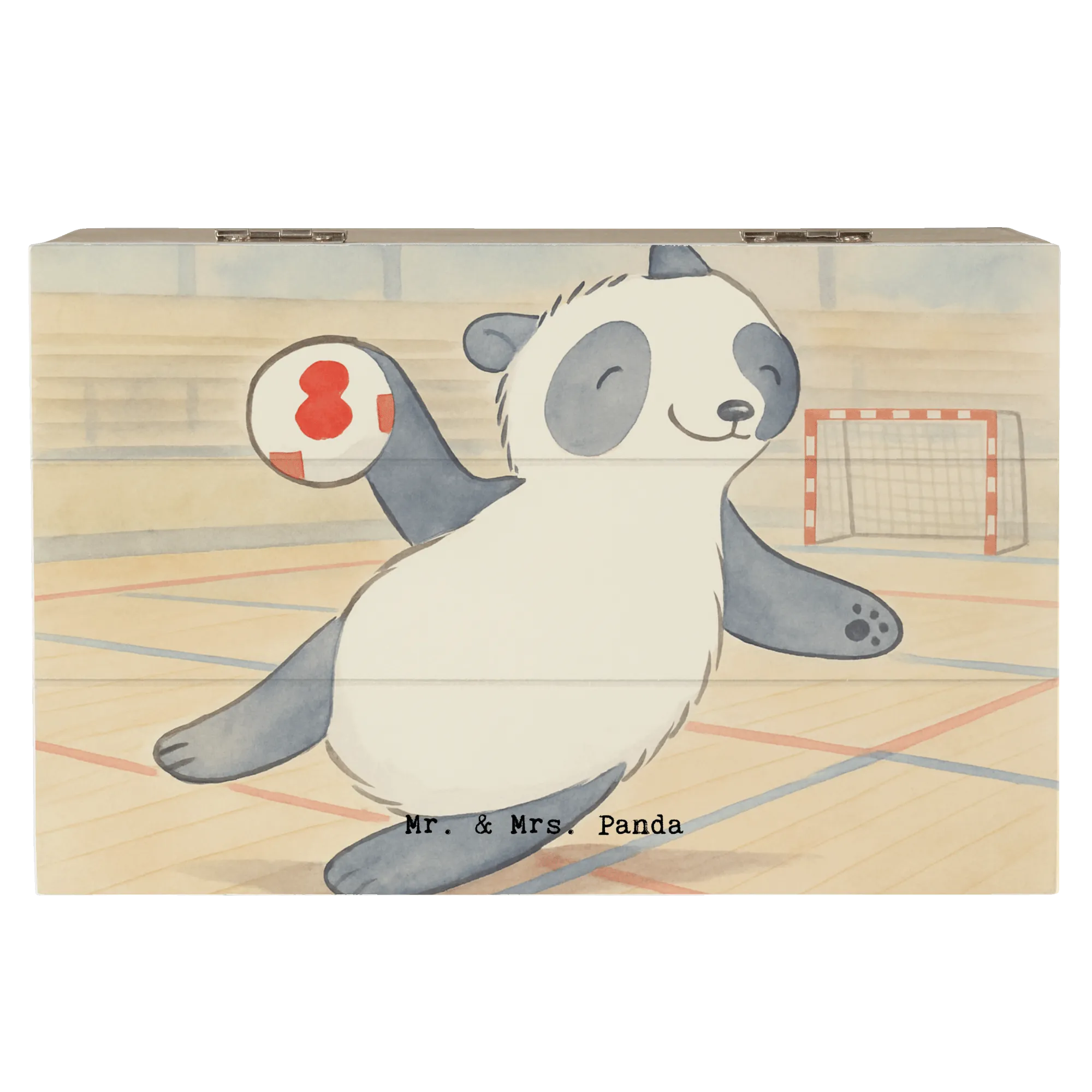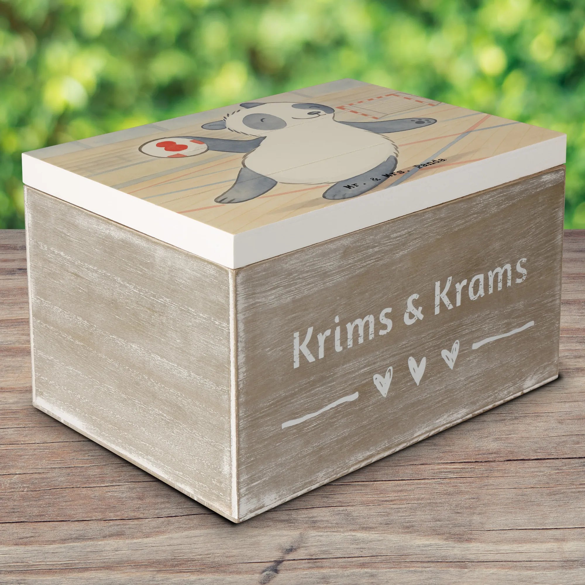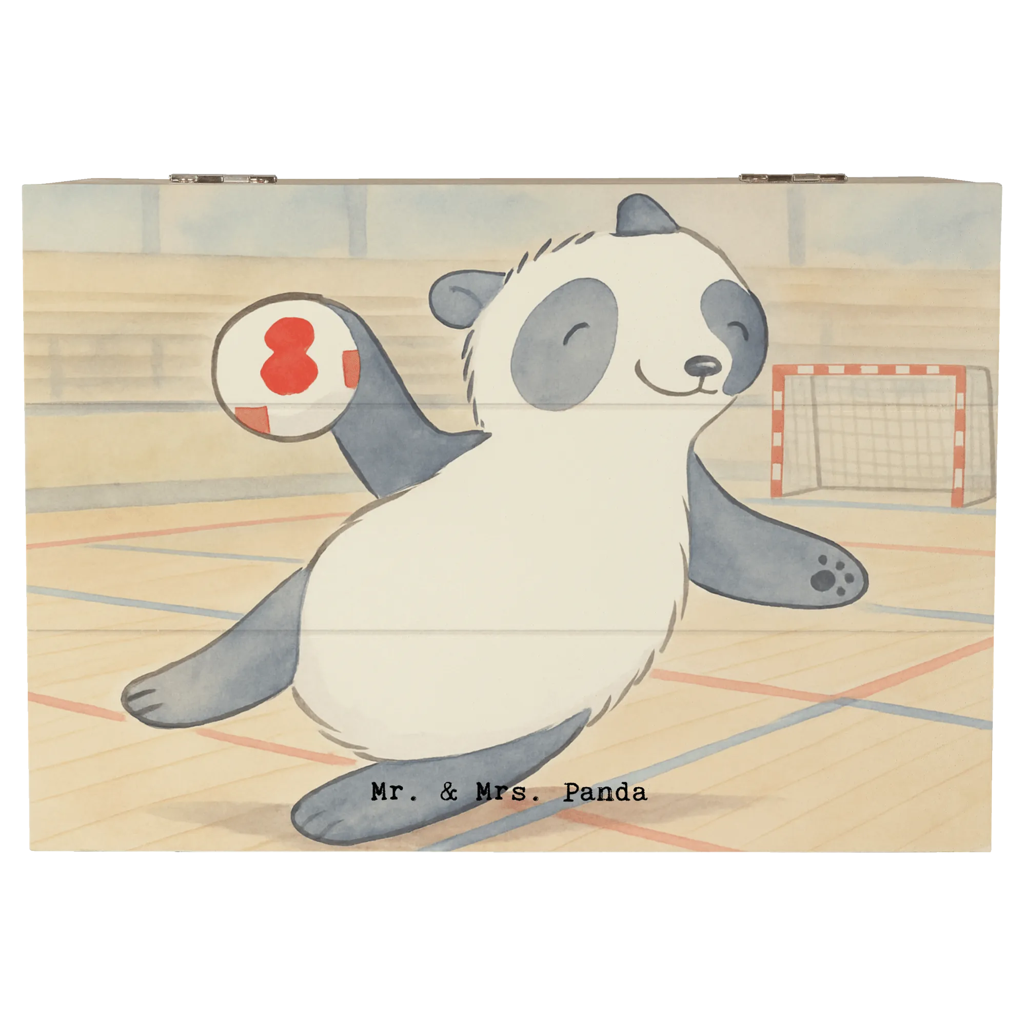Holzkiste Panda Handball spielen Design - 22 x 15 cm - mit Spruch