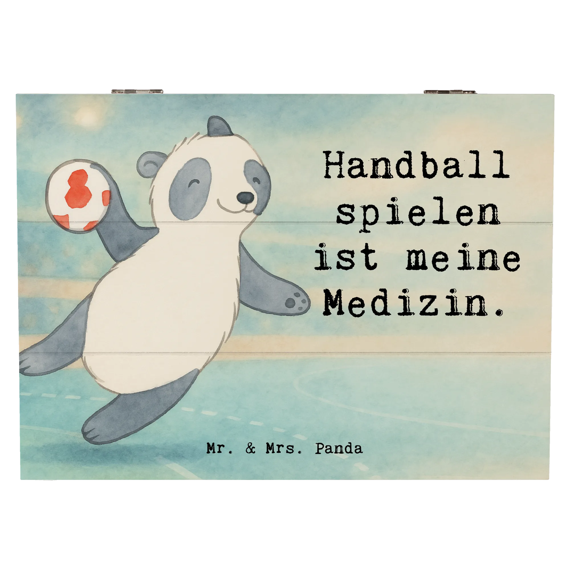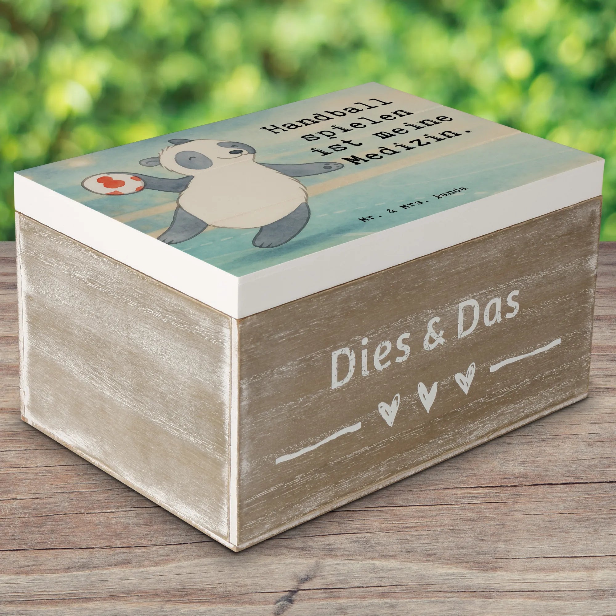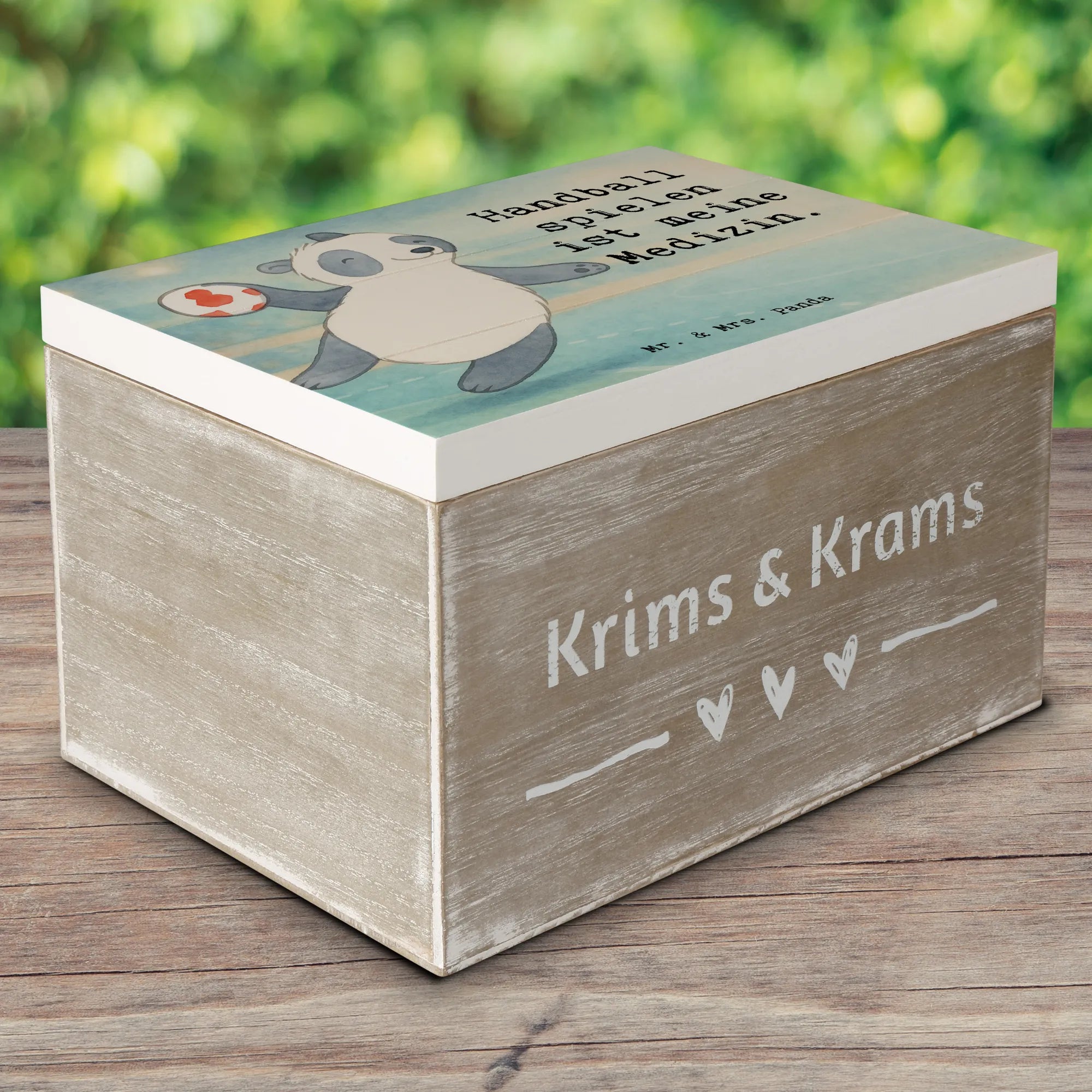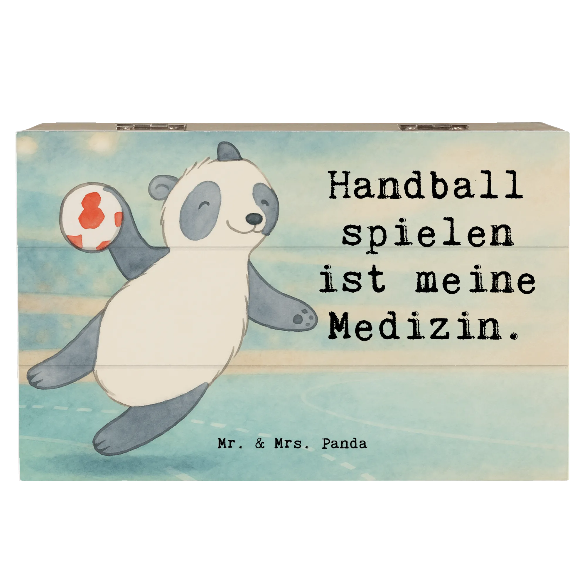 Holzkiste Panda Handball spielen Design - 22 x 15 cm - mit Spruch