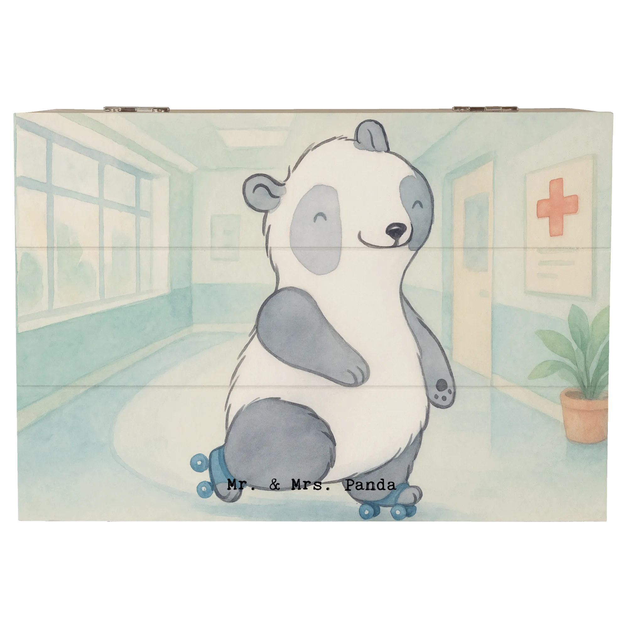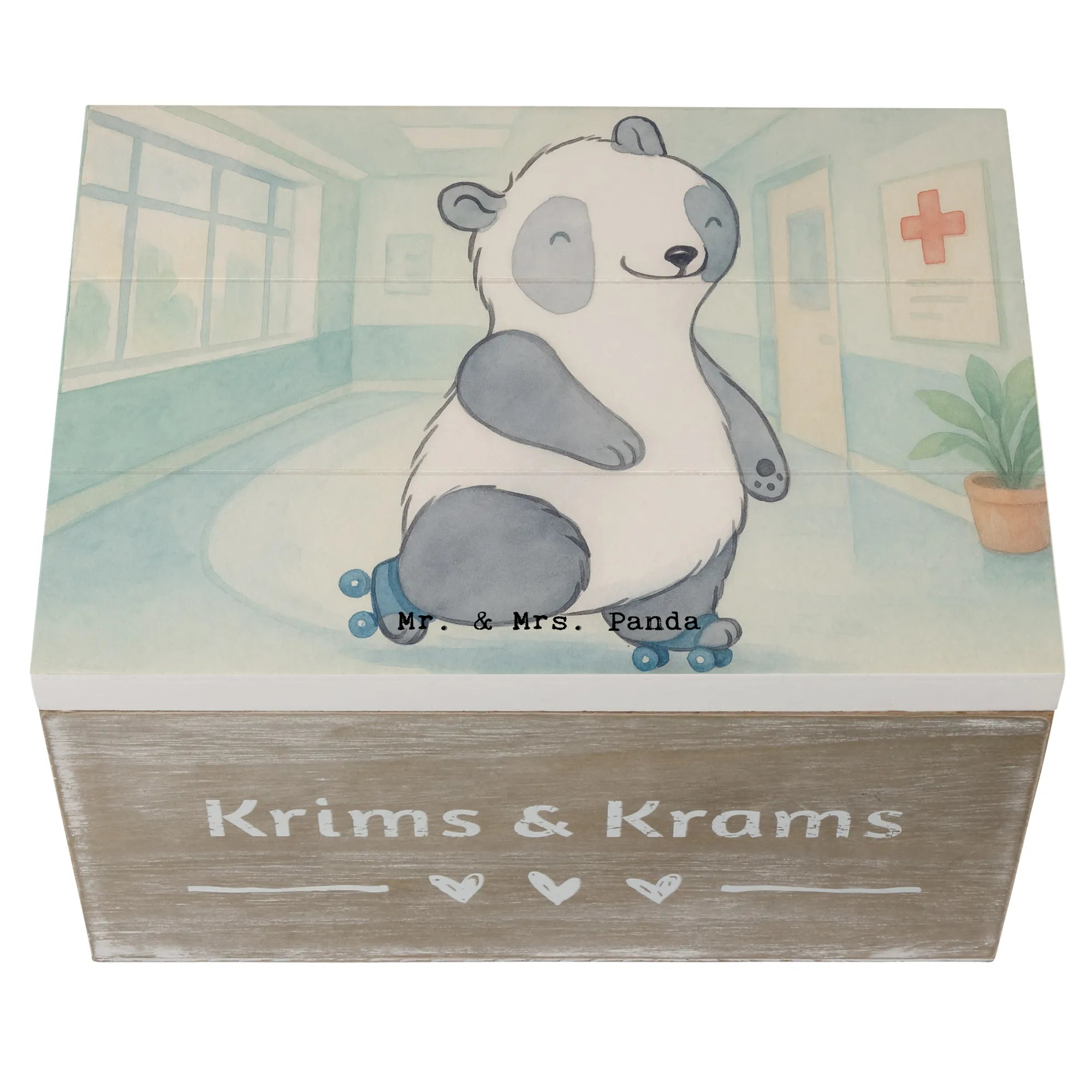 Holzkiste Panda Inliner fahren Design - 22 x 15 cm
