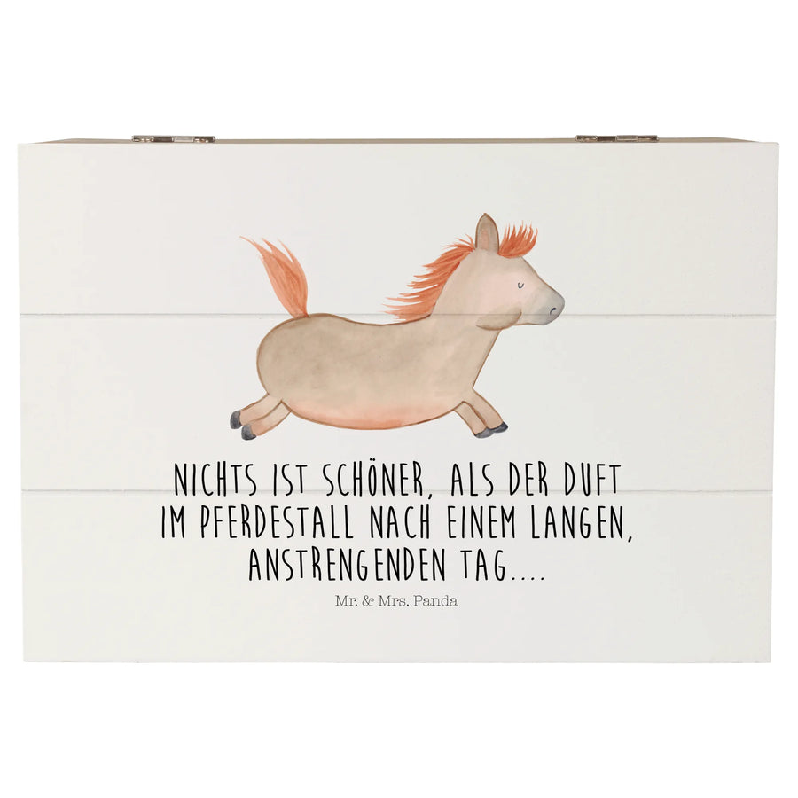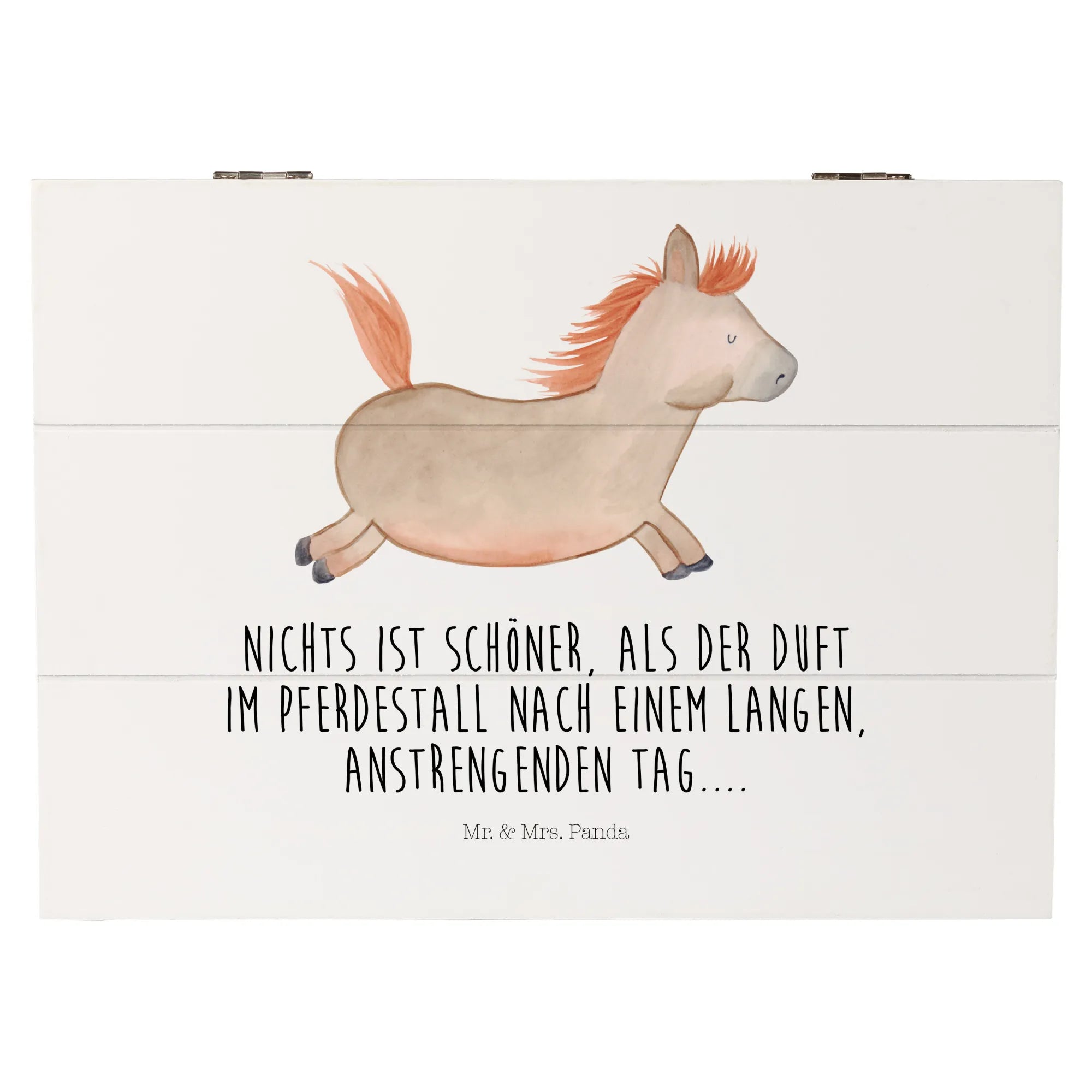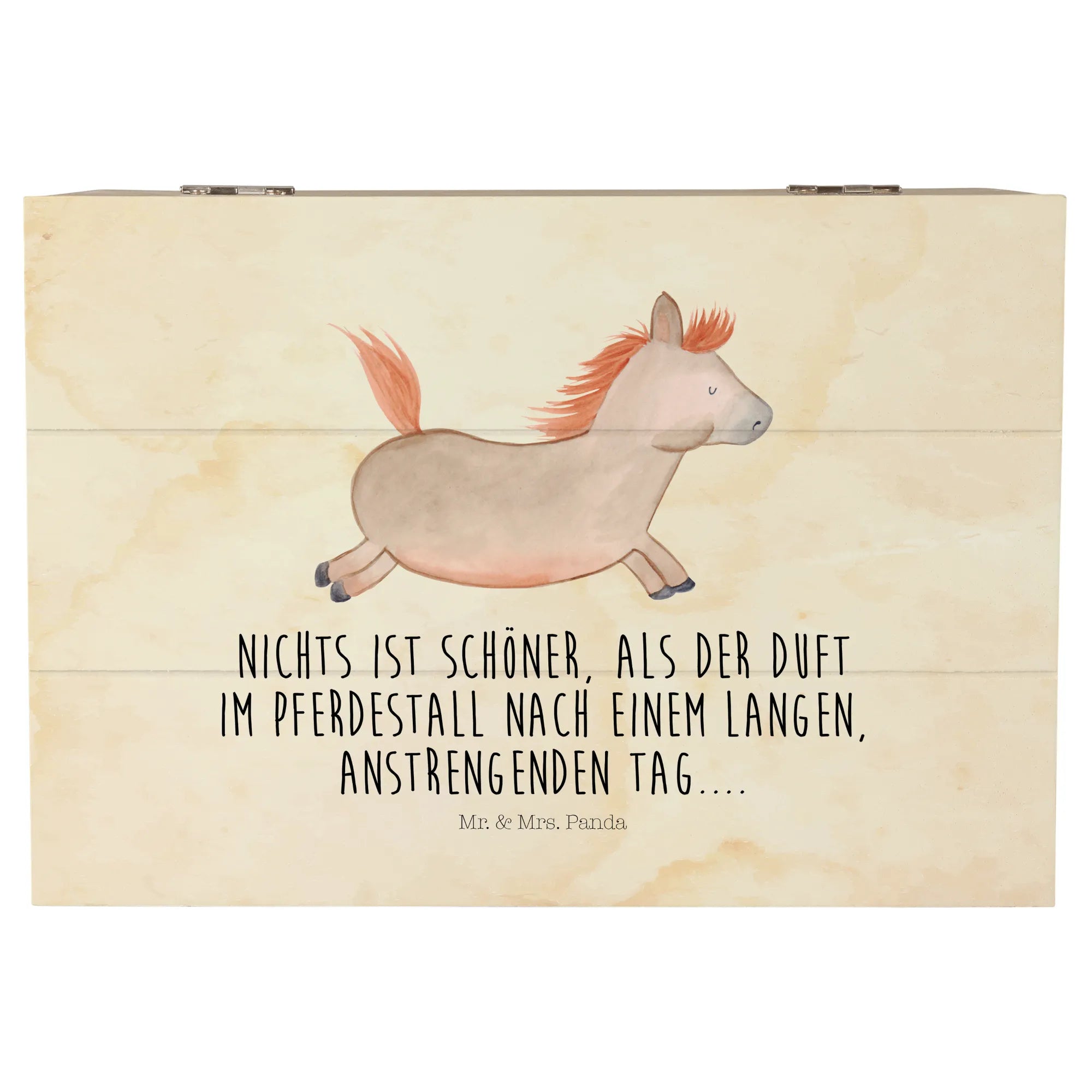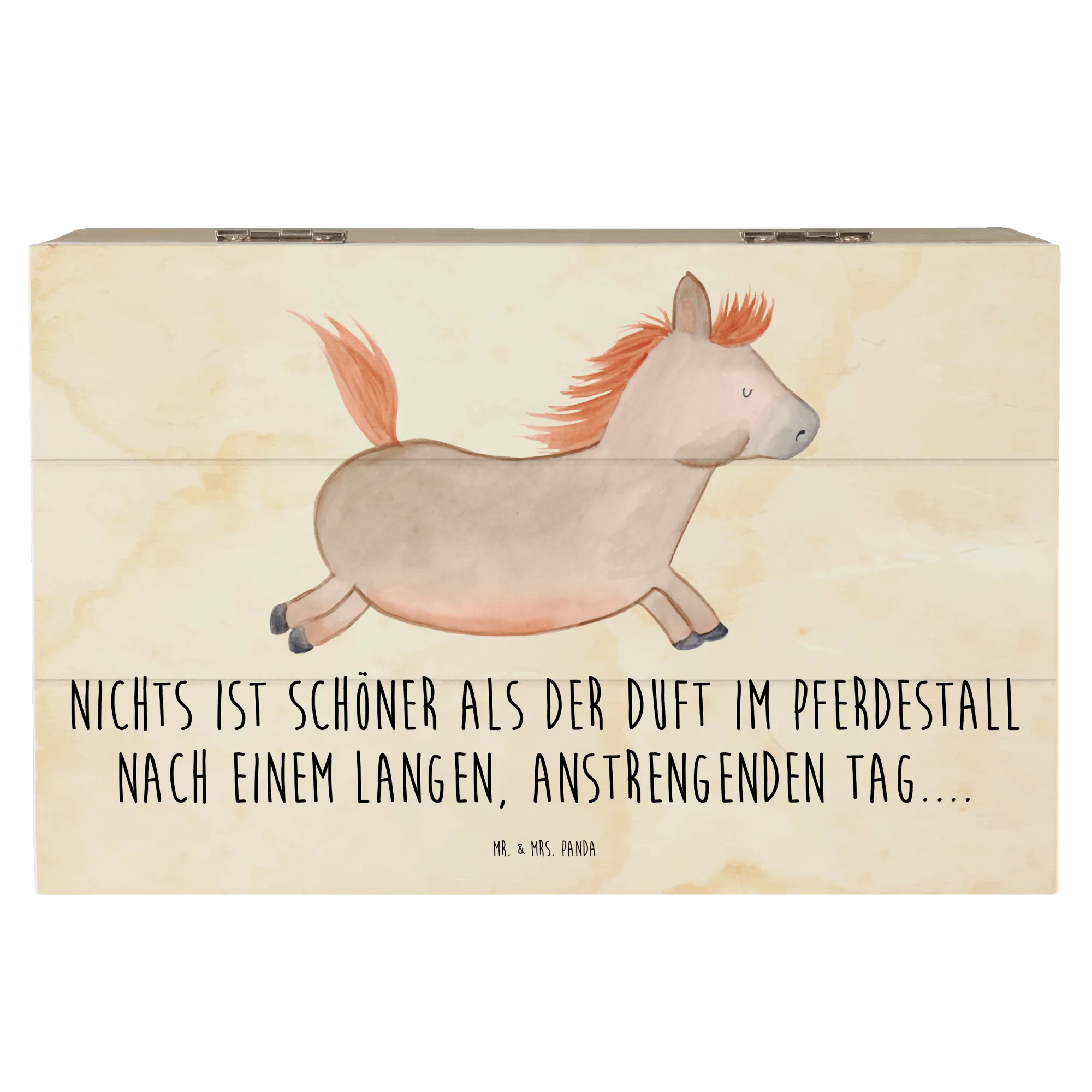 Die wunderschöne Holzkiste von Mr. & Mrs. Panda ist das perfekte Geschenk für alle Pferdeliebhaber. Diese zauberhafte Kiste, bedruckt mit einem niedlichen Motiv eines springenden Pferdes und dem liebevollen Slogan "Nichts ist schöner als der Duft im Pferdestall nach einem langen, anstrengenden Tag...", bringt das Gefühl von Freiheit und Abenteuer in dein Zuhause.