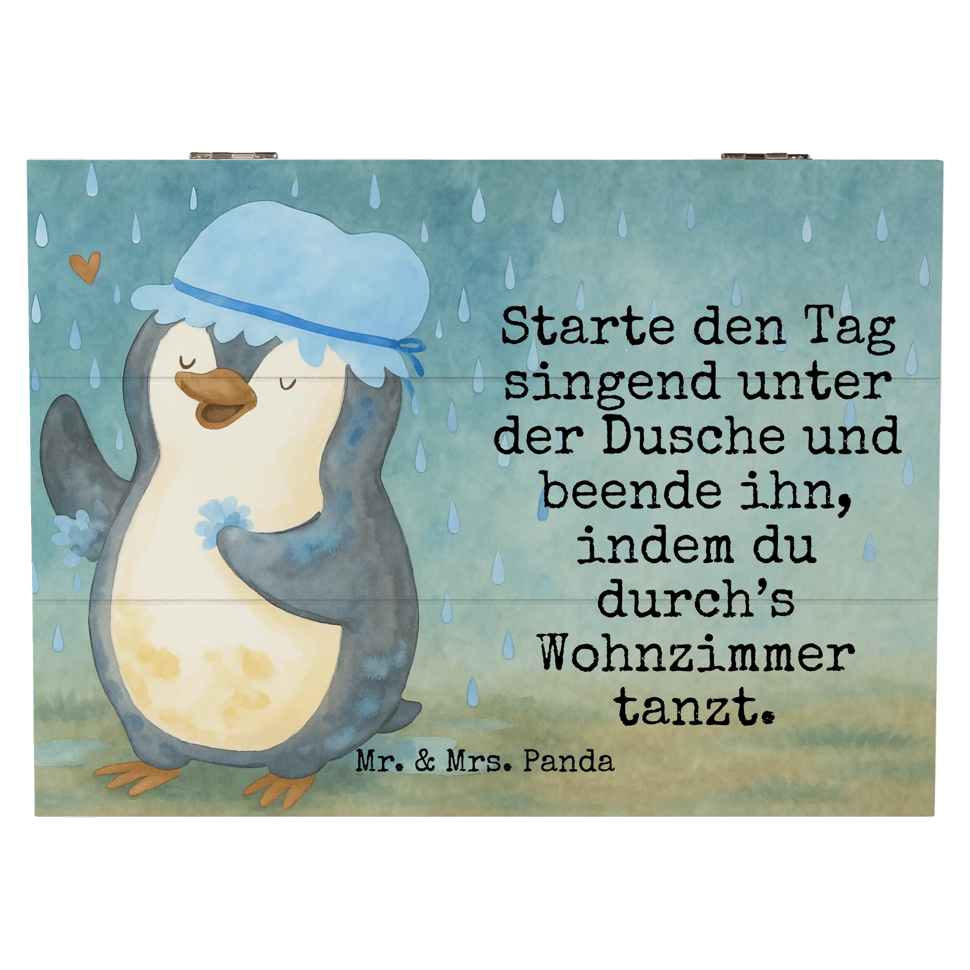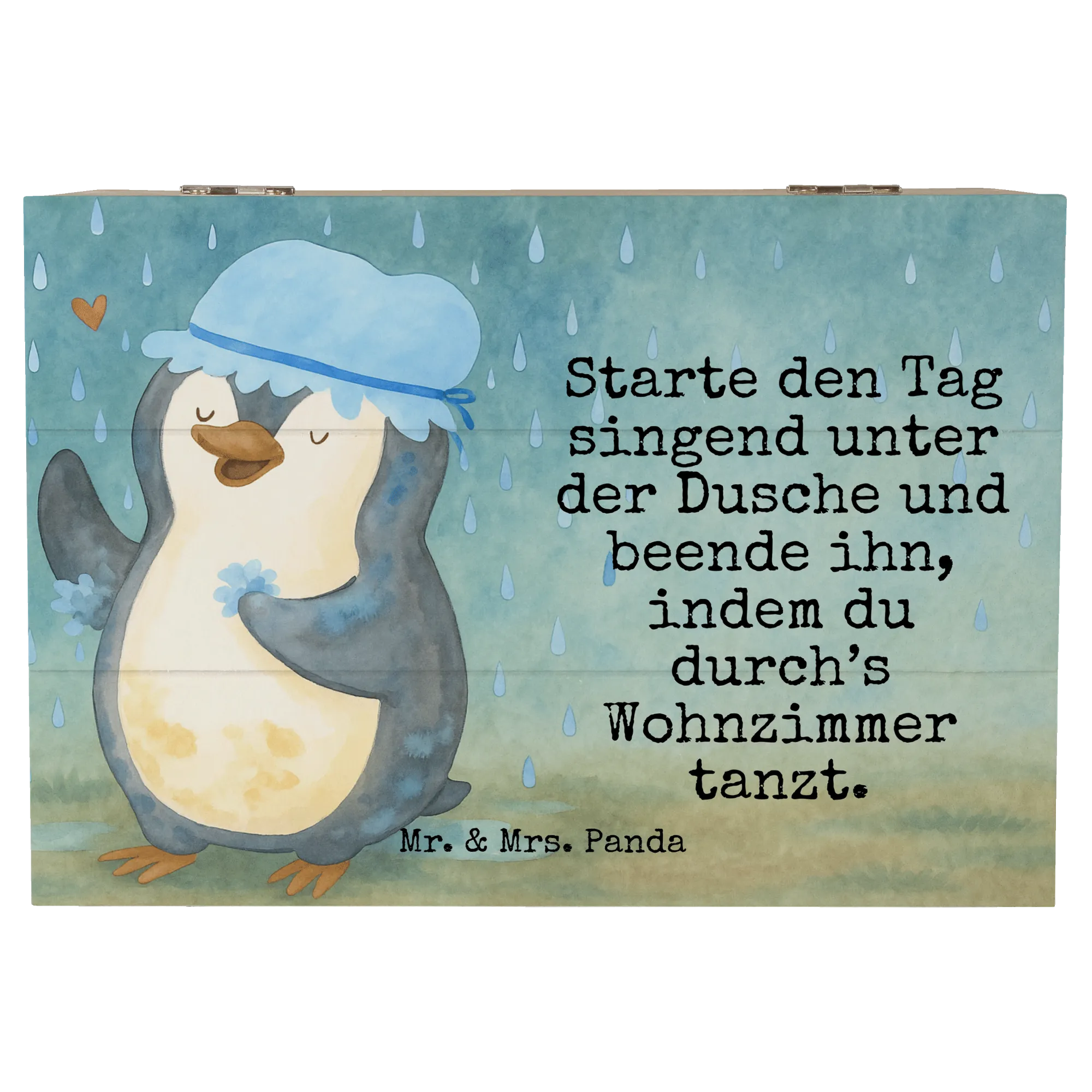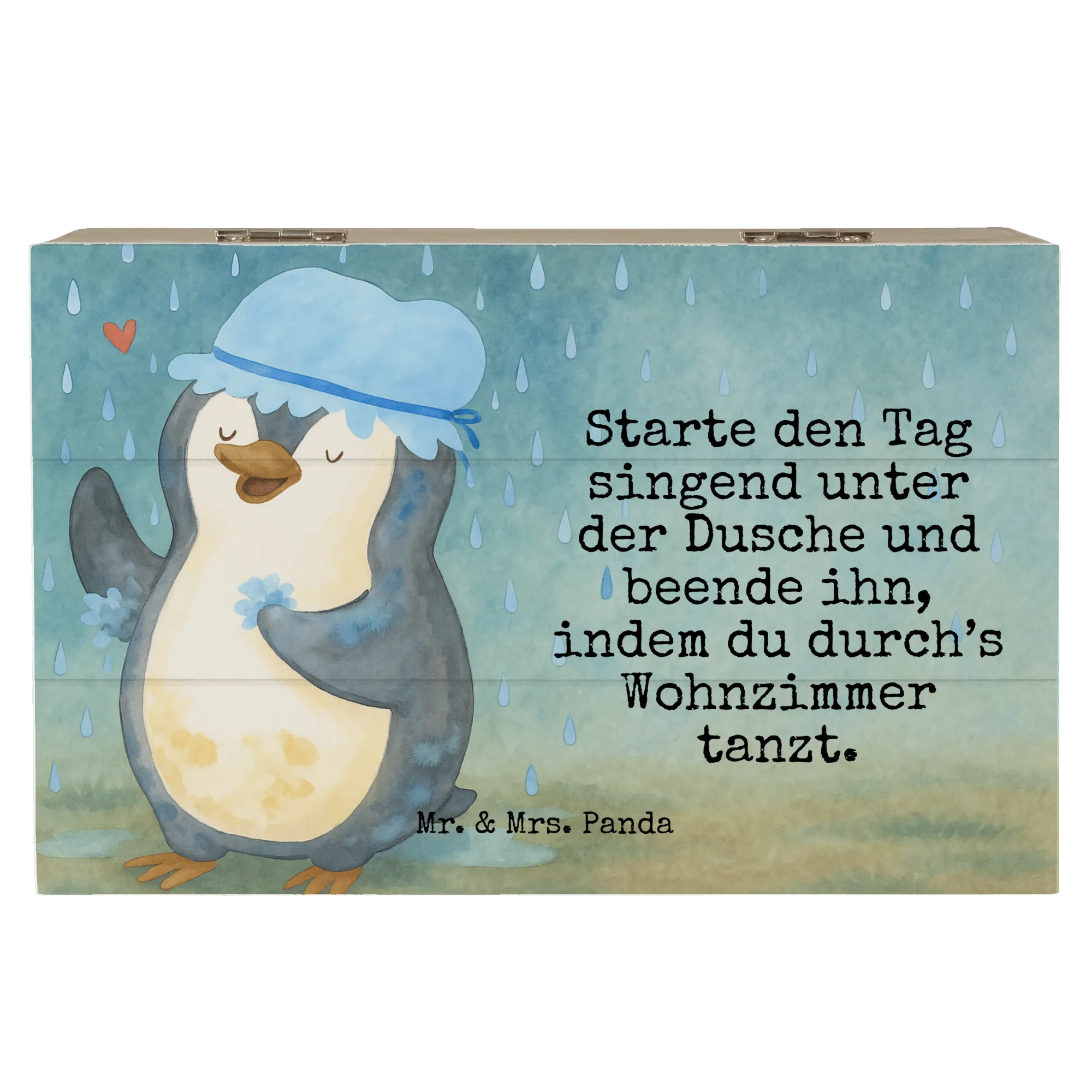 Holzkiste Pinguin Duschen Design Schatzkiste, Aufbewahrungsbox, Geschenkdose, Dekokiste, Erinnerungsbox, Erinnerungskiste, Holzkiste, Schatulle, XXL, Truhe, Geschenkbox, Kiste, Pinguin, Motivation, Neustart, Neuanfang, duschen, Lebensmotto, Dusche, glücklich sein, Pinguine